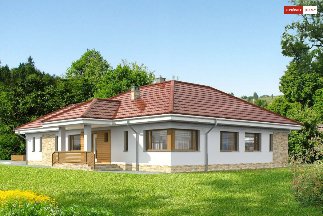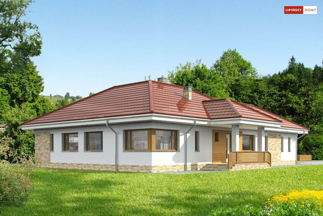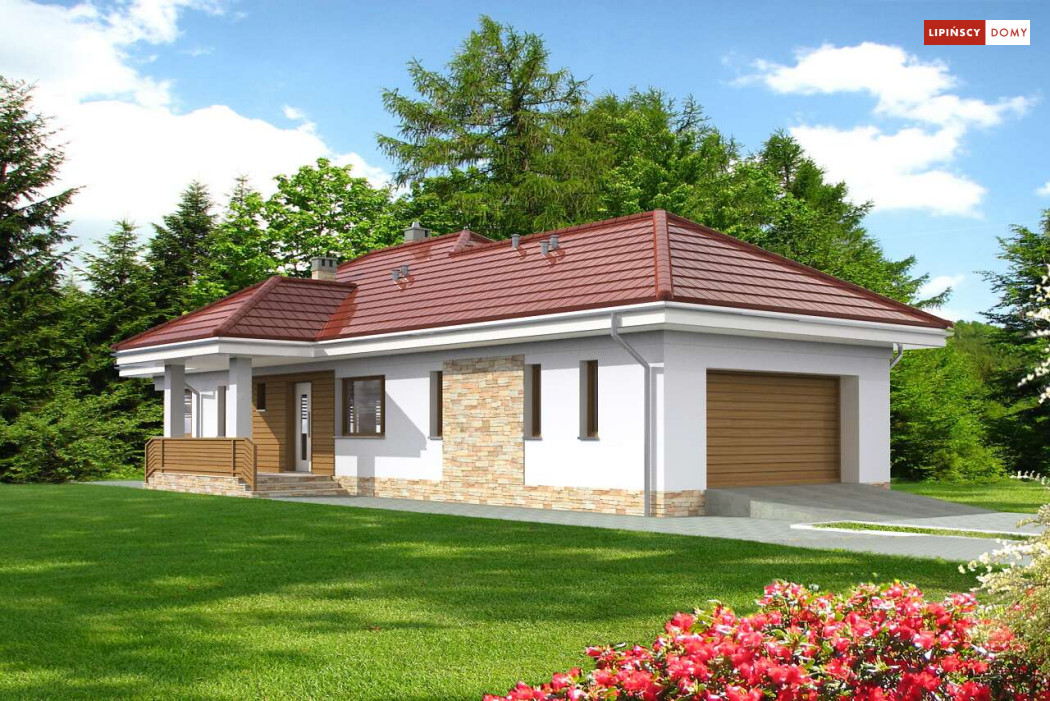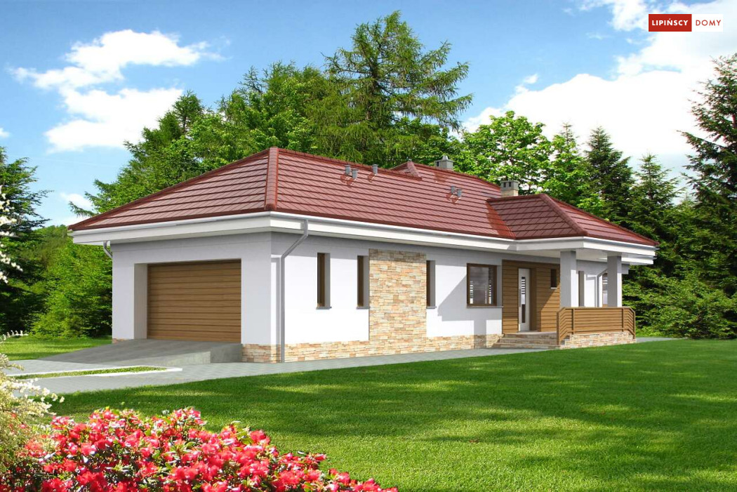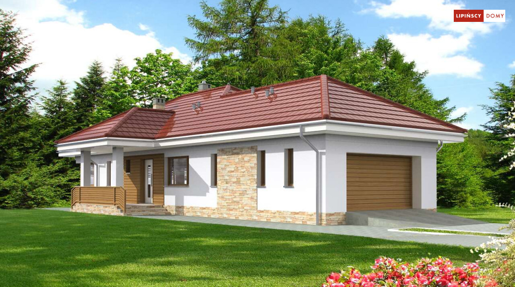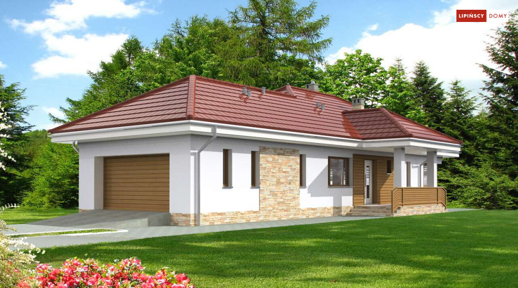 Parterowy, wygodny dom, w którym wygodnie zamieszka 4-5 osobowa rodzina. Wydzielony, zaciszny gabinet ucieszy inwestorów, którzy pracują w domu. Do dyspozycji mieszkańców jest duży salon z jadalnią i dużą, otwartą kuchnią z przejściem do spiżarni. Z wnętrza domu można przejść przez pomieszczenie gospodarcze do garażu na dwa auta. Część nocna to trzy sypialnie i duża, komfortowa łazienka. Usytuowanie tej części domu nieco z boku jest celowe - ma zapewnić mieszkańcom możliwość odpoczynku i relaksu z dala od codziennego zgiełku.