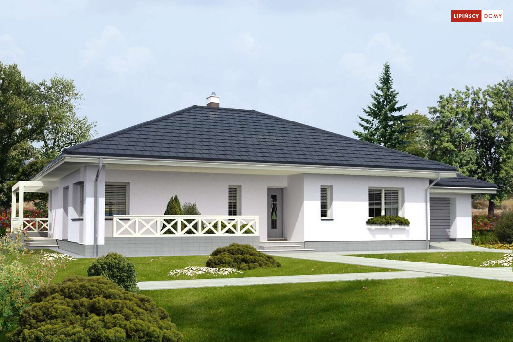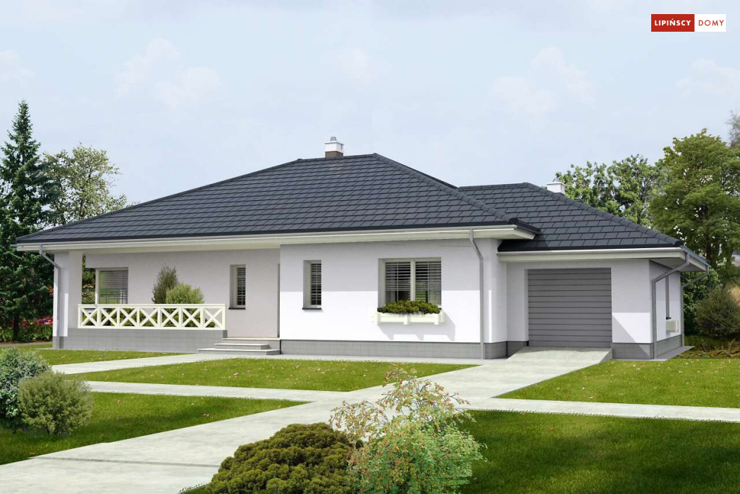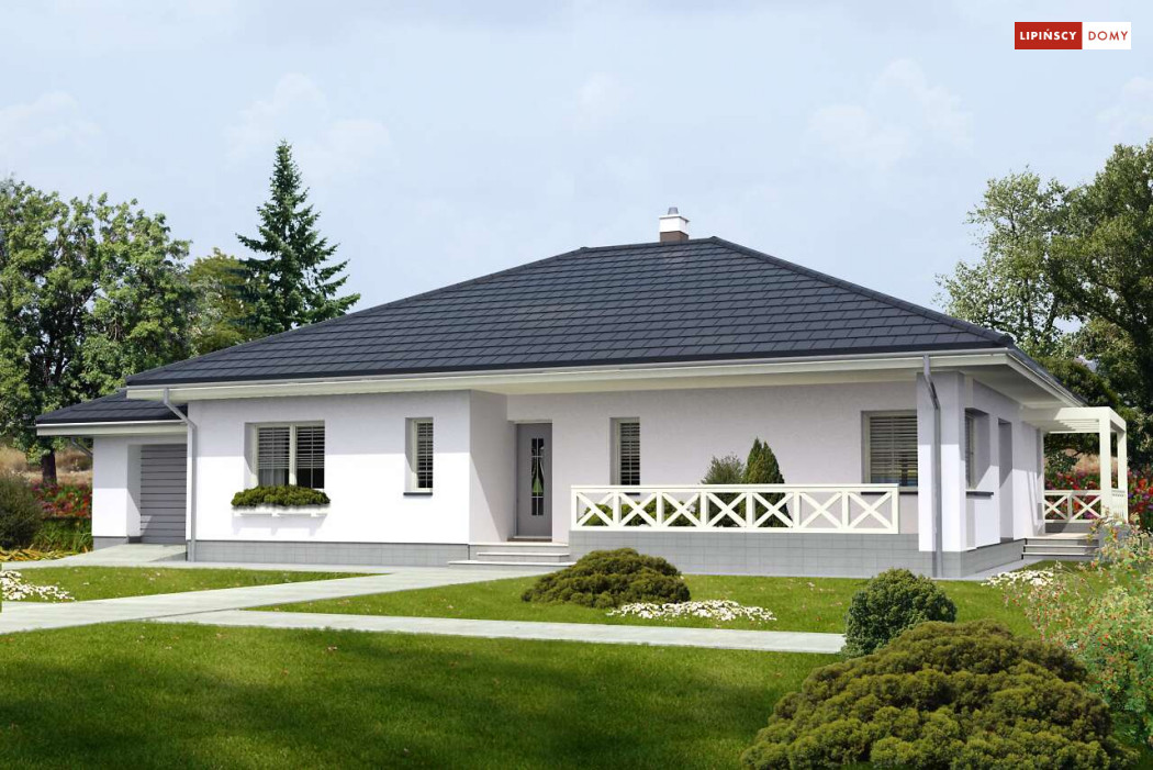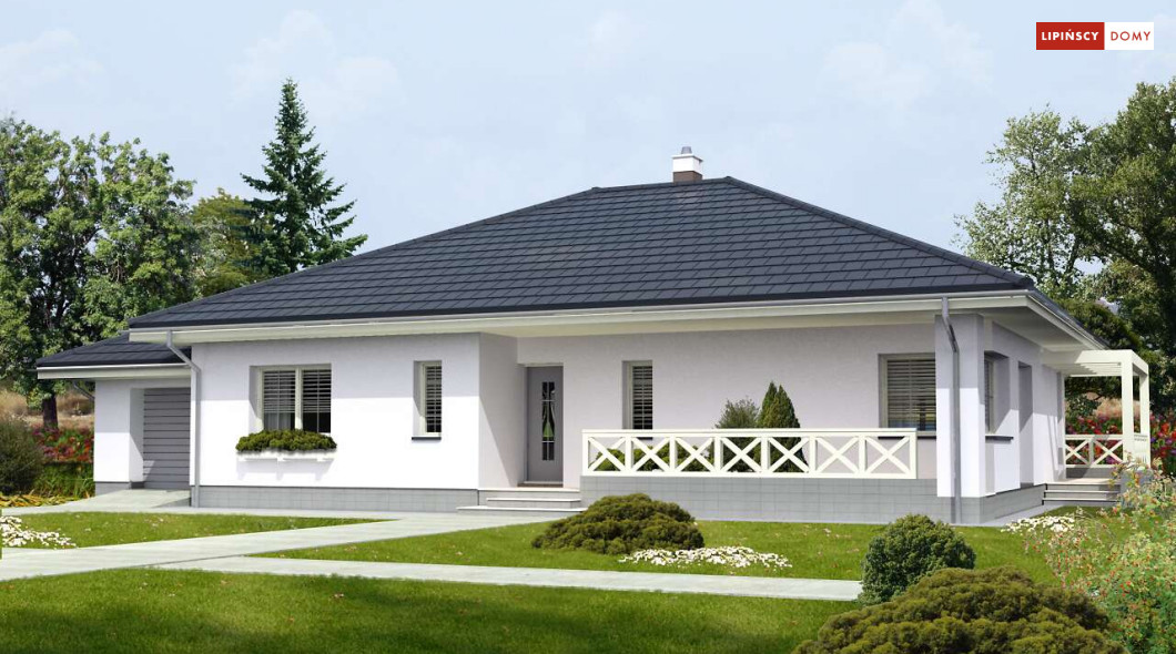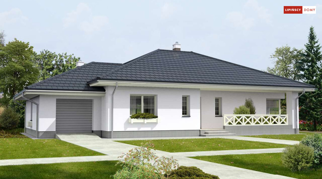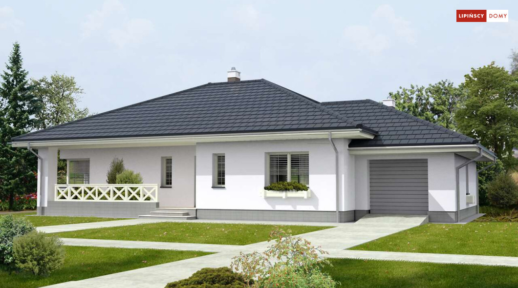 Energooszczędny dom parterowy, który zwraca uwagę głównie pięknym, jasnym i przestronnym salonem, z jadalnią i otwartą na niego kuchnią. Obok kuchni zlokalizowano podręczną spiżarnię. Obok korytarza zaplanowano niewielką łazienkę, co jest dobrym rozwiązaniem dla mieszkańców, którym zależy na wyraźnym oddzieleniu strefy ogólnodostępnej od prywatnej. W tej drugiej mieszczą się trzy pokoje – dwie sypialnie i gabinet oraz wygodna, przeznaczona dla domowników łazienka. Za garażem na jedno auto zaplanowano pomieszczenie gospodarcze z kotłownią i niezależnym wyjściem na zewnątrz, co jest bardzo wygodnym i praktycznym rozwiązaniem. Elewację domu – w zależności od gustu, można zrobić w stylu tradycyjnym, bądź nadać jej nowoczesnego charakteru. W projekcie przewidziano ogrzewanie kotłem na gaz. Możliwa jest zmiana ogrzewania na pompę ciepła.