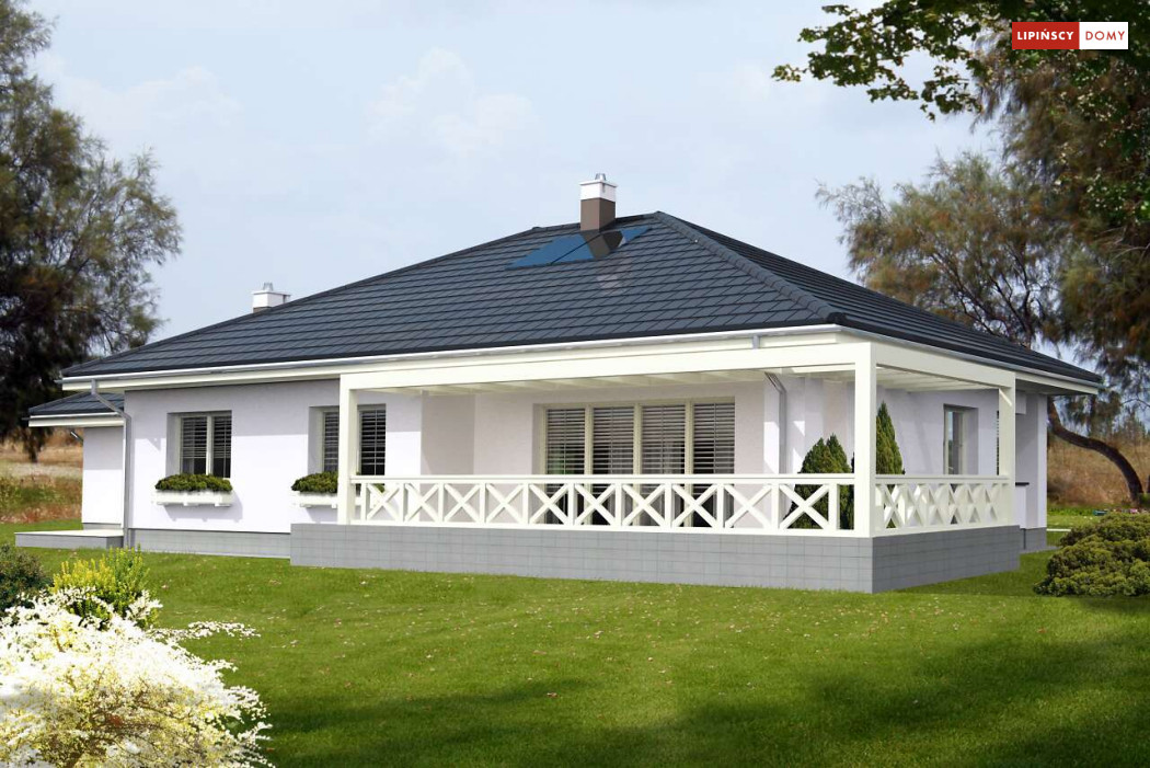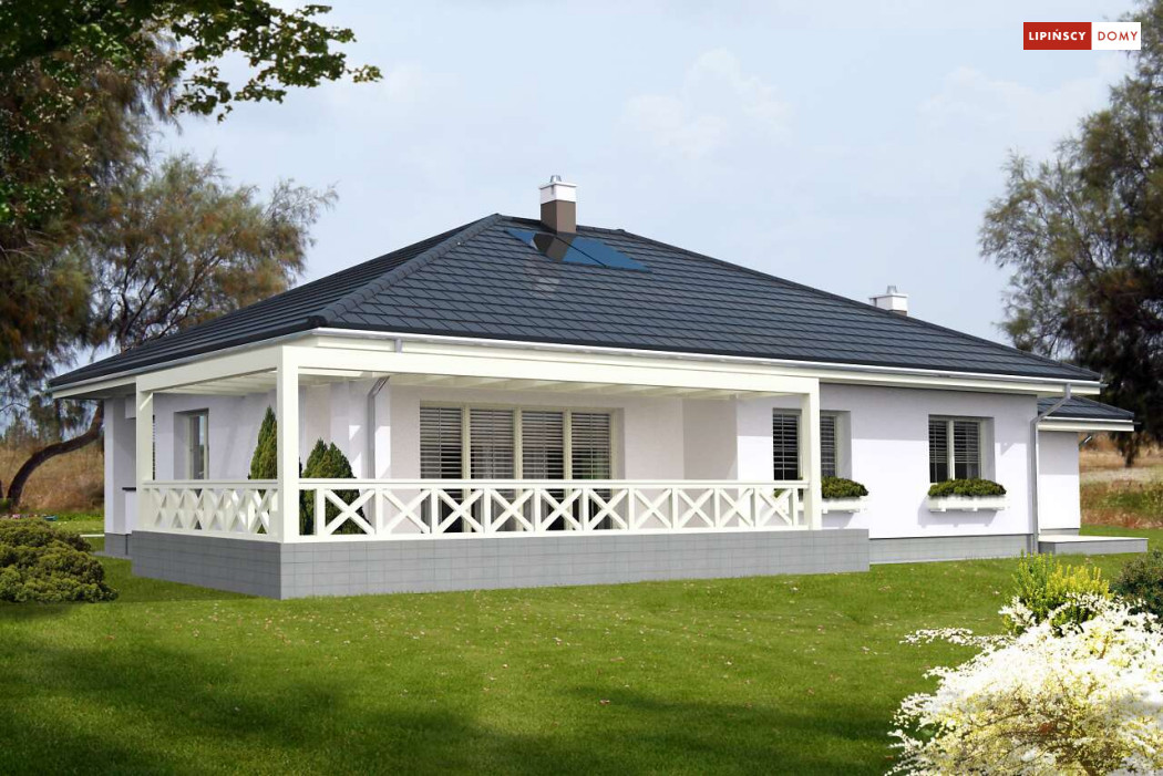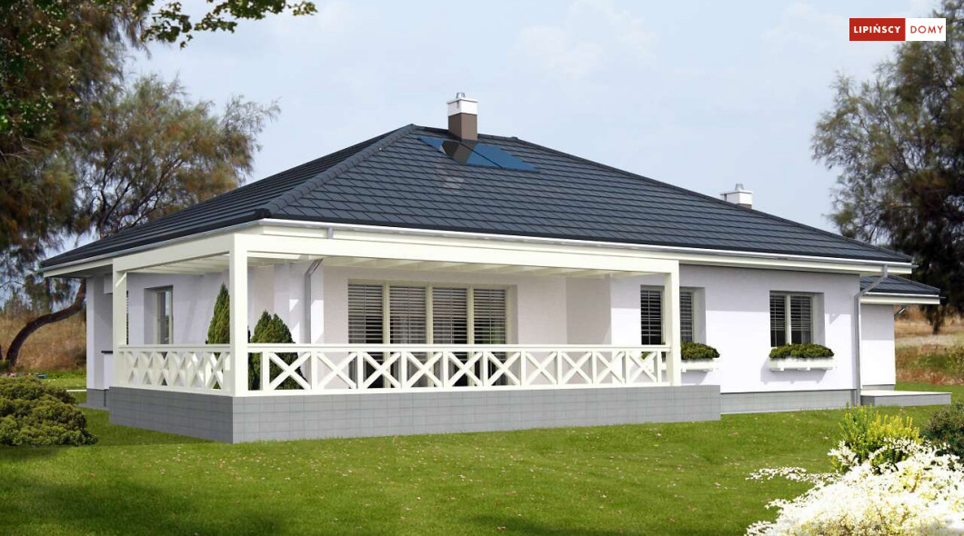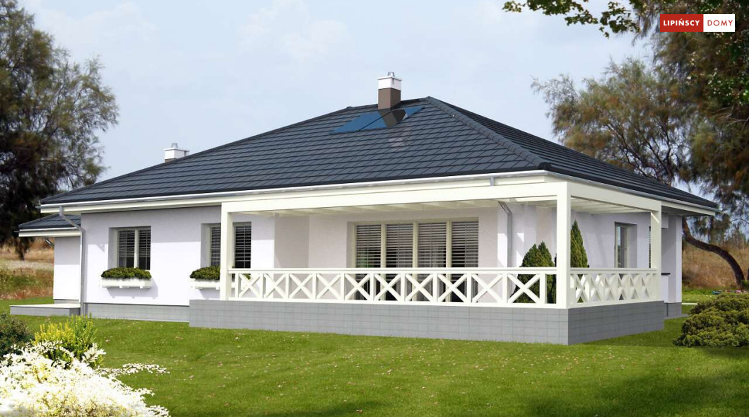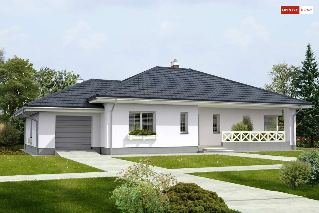 Energooszczędny dom parterowy, który zwraca uwagę głównie pięknym, jasnym i przestronnym salonem, z jadalnią i otwartą na niego kuchnią. Obok kuchni zlokalizowano podręczną spiżarnię. Obok korytarza zaplanowano niewielką łazienkę, co jest dobrym rozwiązaniem dla mieszkańców, którym zależy na wyraźnym oddzieleniu strefy ogólnodostępnej od prywatnej. W tej drugiej mieszczą się trzy pokoje – dwie sypialnie i gabinet oraz wygodna, przeznaczona dla domowników łazienka. Za garażem na jedno auto zaplanowano pomieszczenie gospodarcze z kotłownią i niezależnym wyjściem na zewnątrz, co jest bardzo wygodnym i praktycznym rozwiązaniem. Elewację domu – w zależności od gustu, można zrobić w stylu tradycyjnym, bądź nadać jej nowoczesnego charakteru. W projekcie przewidziano ogrzewanie kotłem na gaz. Możliwa jest zmiana ogrzewania na pompę ciepła.