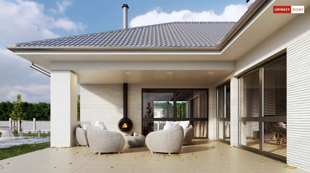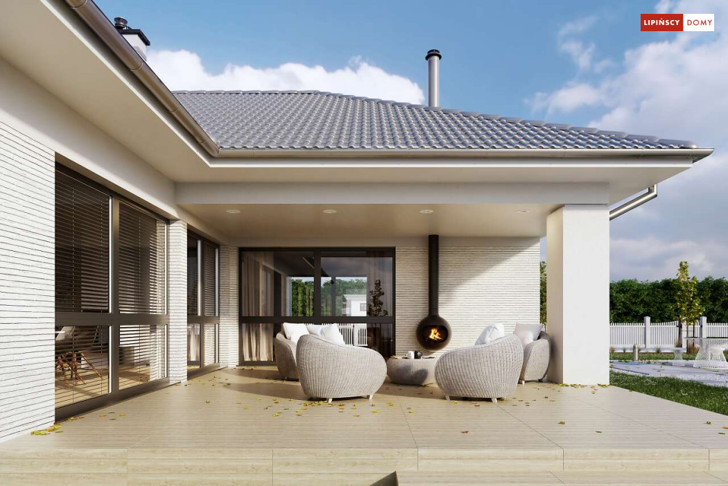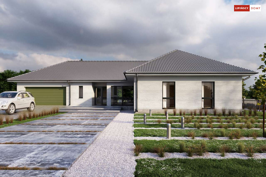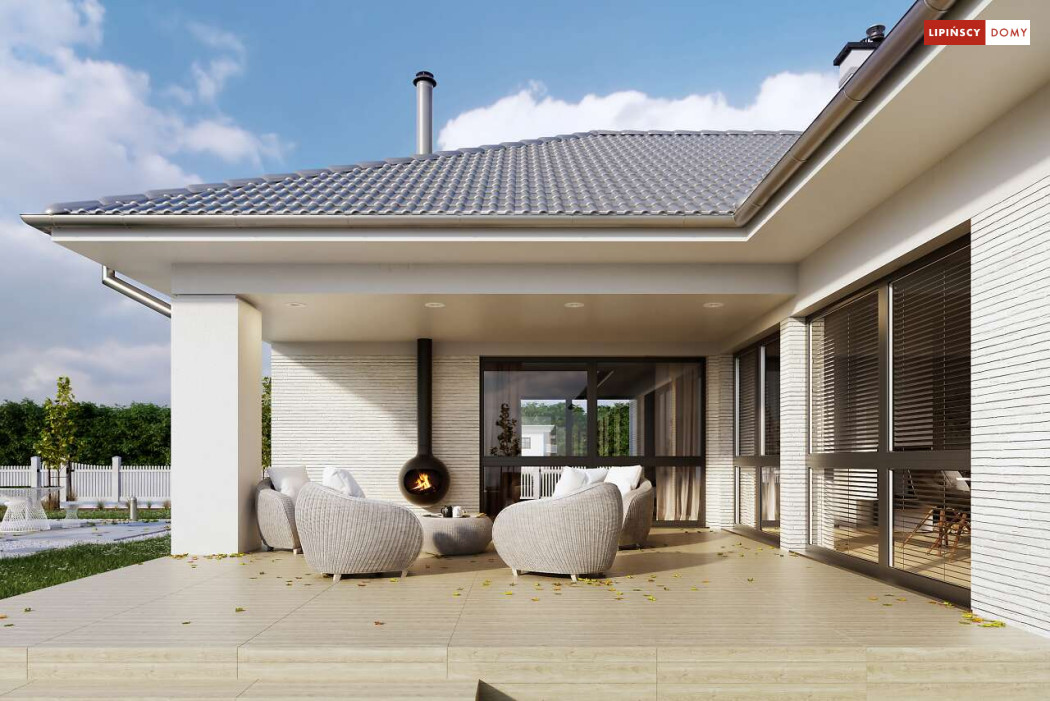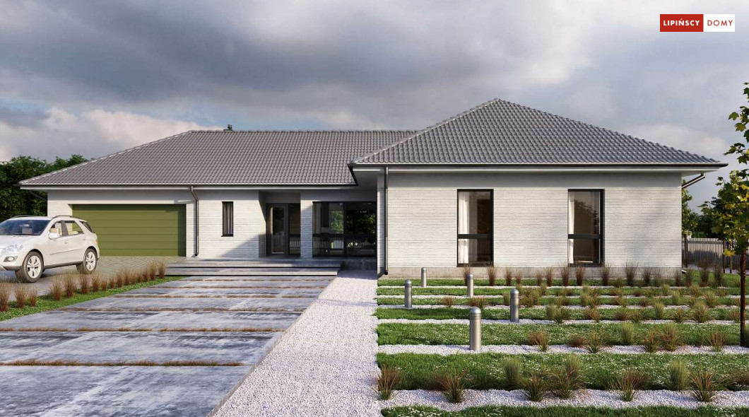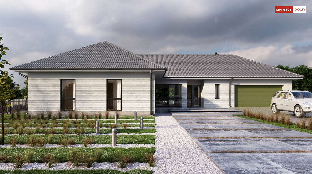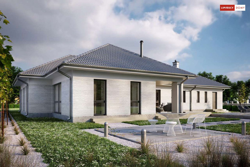 Andora to przestronny, komfortowy dom parterowy, zaprojektowany w standardzie energooszczędnym. Jest to doskonała propozycja dla większej rodziny – dzięki wyodrębnieniu aż sześciu sypialni, każdy z domowników może cieszyć się niezależnością. Wśród sypialni jedna posiada własną łazienkę i garderobę. Sercem domu jest duży, wygodny salon z jadalnią, obok którego znajduje się ustawna kuchnia. W nowoczesną bryłę budynku wkomponowano duży garaż, za którym znajduje się kotłownia oraz pomieszczenie gospodarcze. W projekcie przewidziano ogrzewanie kotłem na gaz. Możliwa jest zmiana ogrzewania na pompę ciepła.