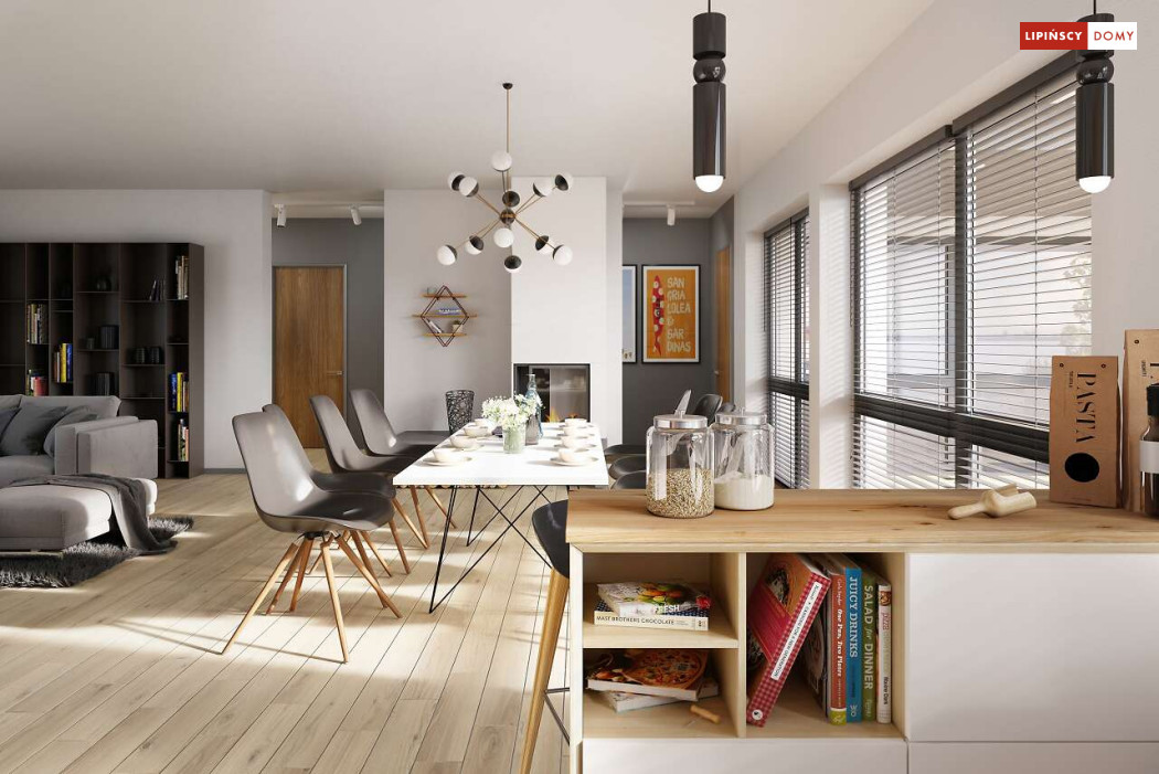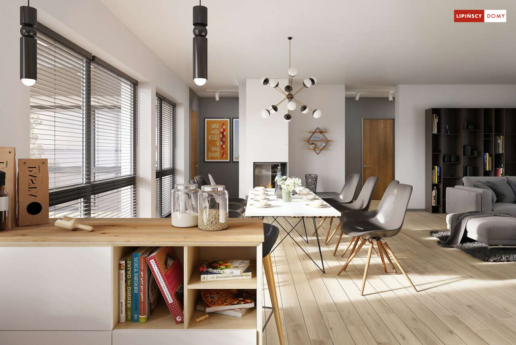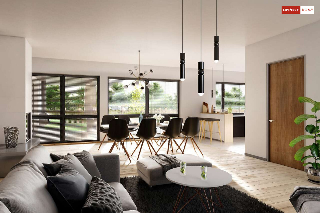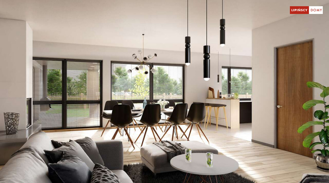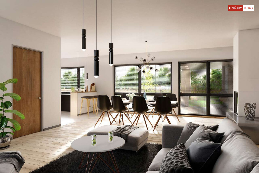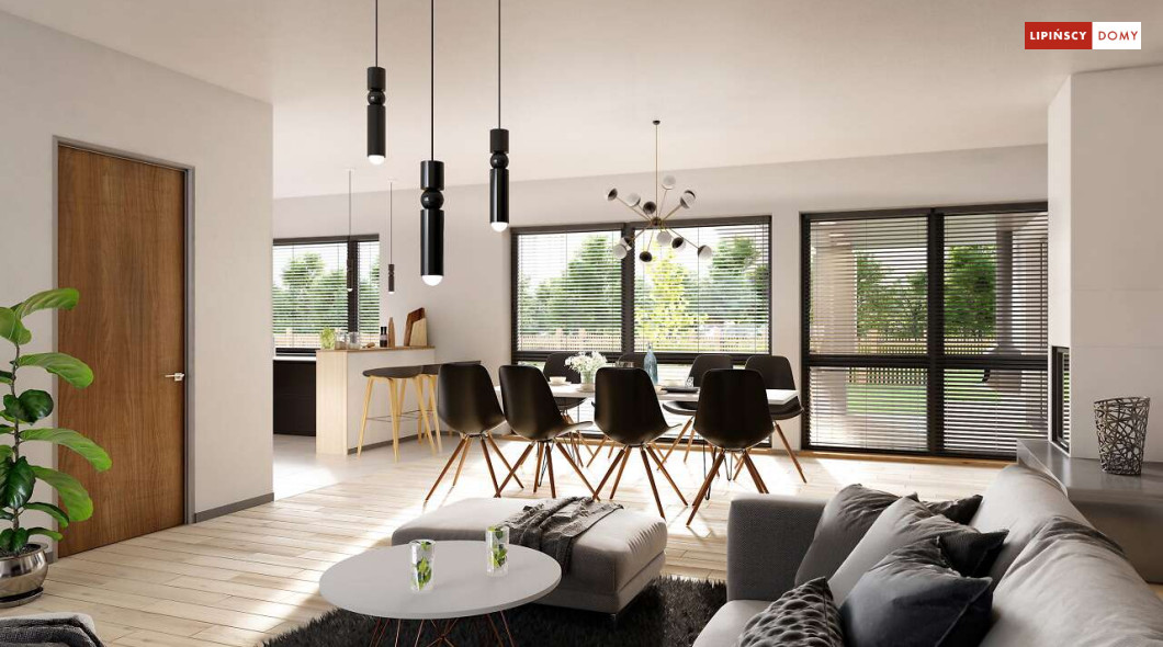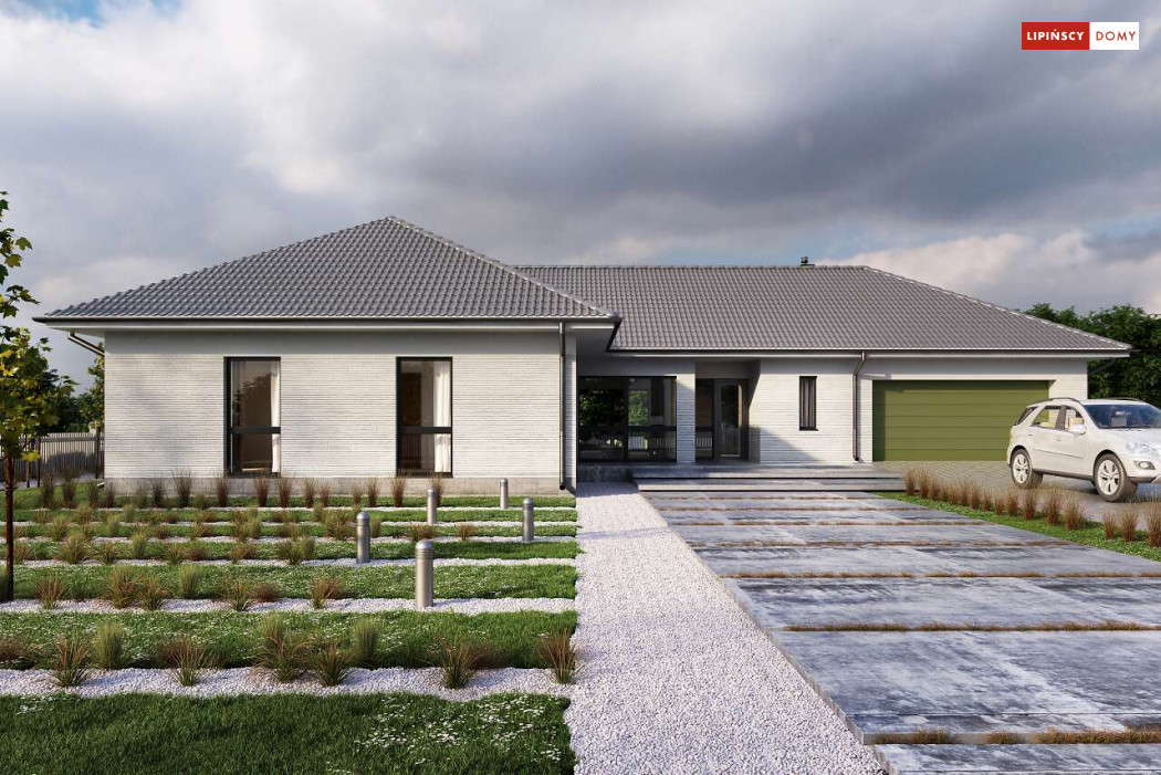 Andora to przestronny, komfortowy dom parterowy, zaprojektowany w standardzie energooszczędnym. Jest to doskonała propozycja dla większej rodziny – dzięki wyodrębnieniu aż sześciu sypialni, każdy z domowników może cieszyć się niezależnością. Wśród sypialni jedna posiada własną łazienkę i garderobę. Sercem domu jest duży, wygodny salon z jadalnią, obok którego znajduje się ustawna kuchnia. W nowoczesną bryłę budynku wkomponowano duży garaż, za którym znajduje się kotłownia oraz pomieszczenie gospodarcze. W projekcie przewidziano ogrzewanie kotłem na gaz. Możliwa jest zmiana ogrzewania na pompę ciepła.