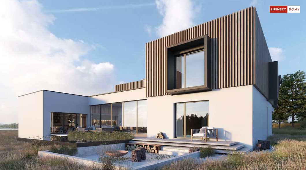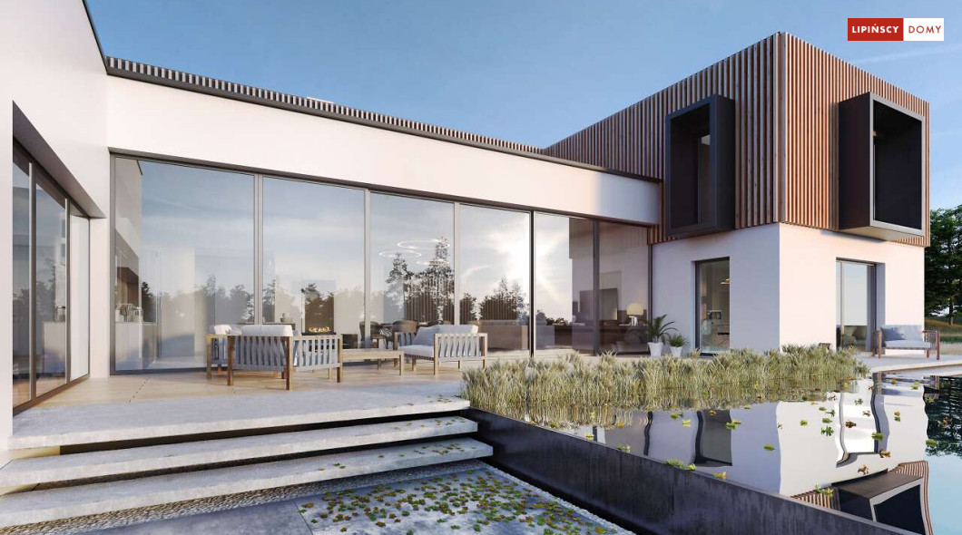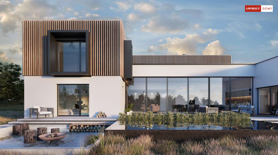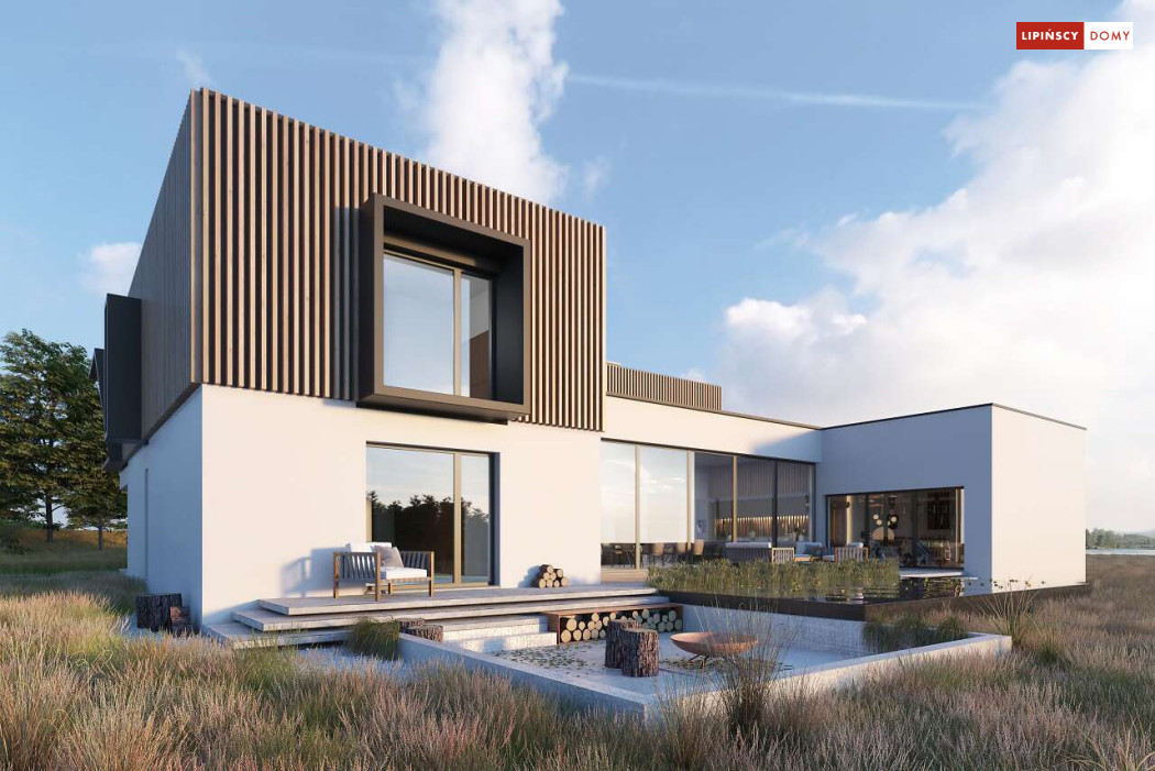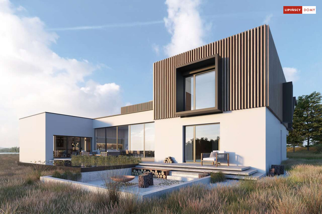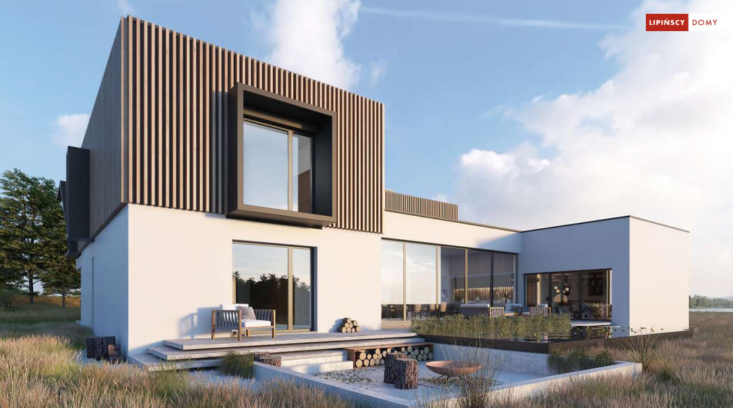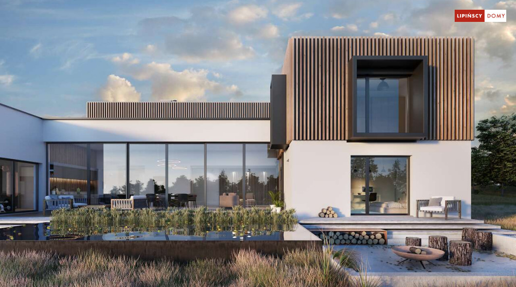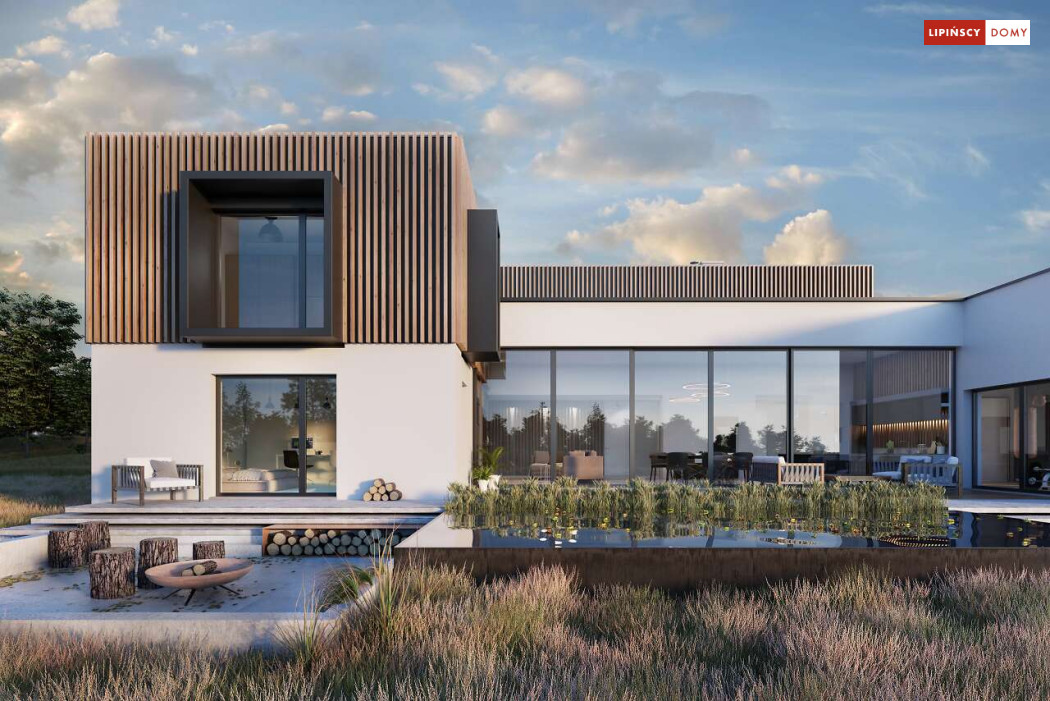 Przepiękny rozłożysty dom z częściowym pietrem wg projektu Annecy to komfortowa propozycja dla wymagających inwestorów. Nietypowa bryła domu z ciekawymi przeszkleniami, mieści bogaty program funkcjonalny. Parter podzielono na 3 części, w tym środkowa to podwyższona otwarta strefa dzienna, a boczne mieszczą z jednej strony dwustanowiskowy garaż, a za nim sporą część rekreacyjną z siłownią, sauną i zapleczem sanitarnym, natomiast po przeciwnej stronie - gabinet i dużą sypialnię małżeńską z łazienką. Piętro to strefa prywatna z czterema sypialniami i dwiema łazienkami.