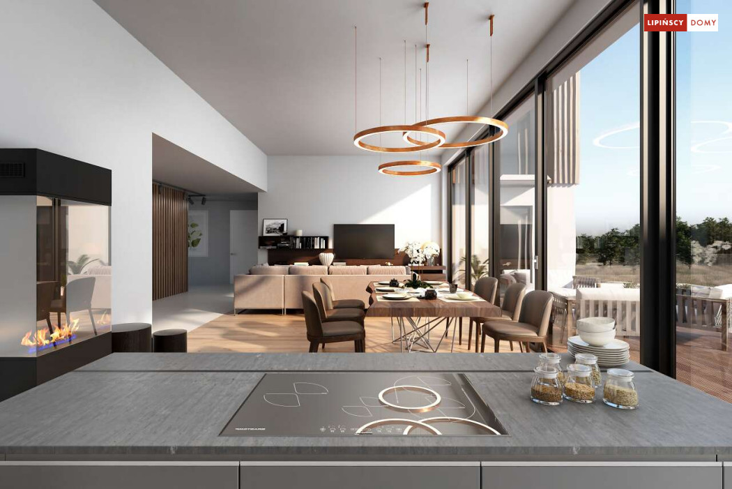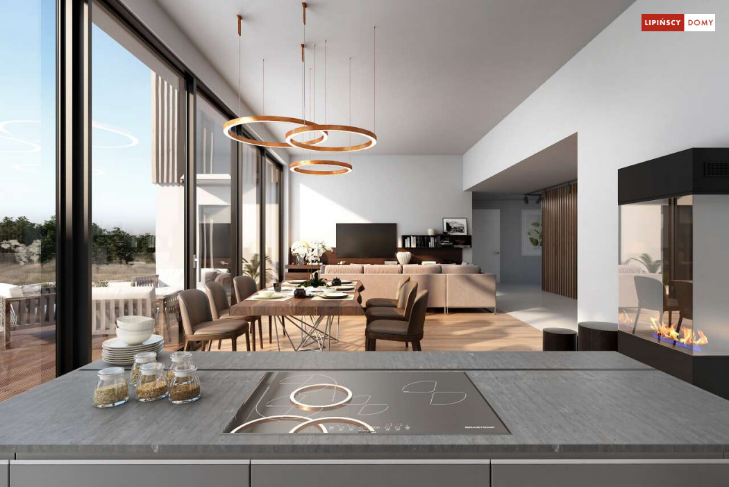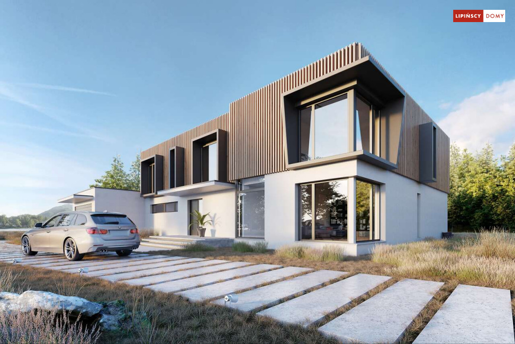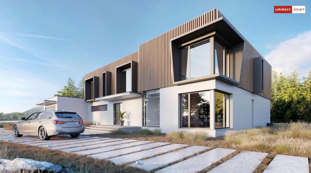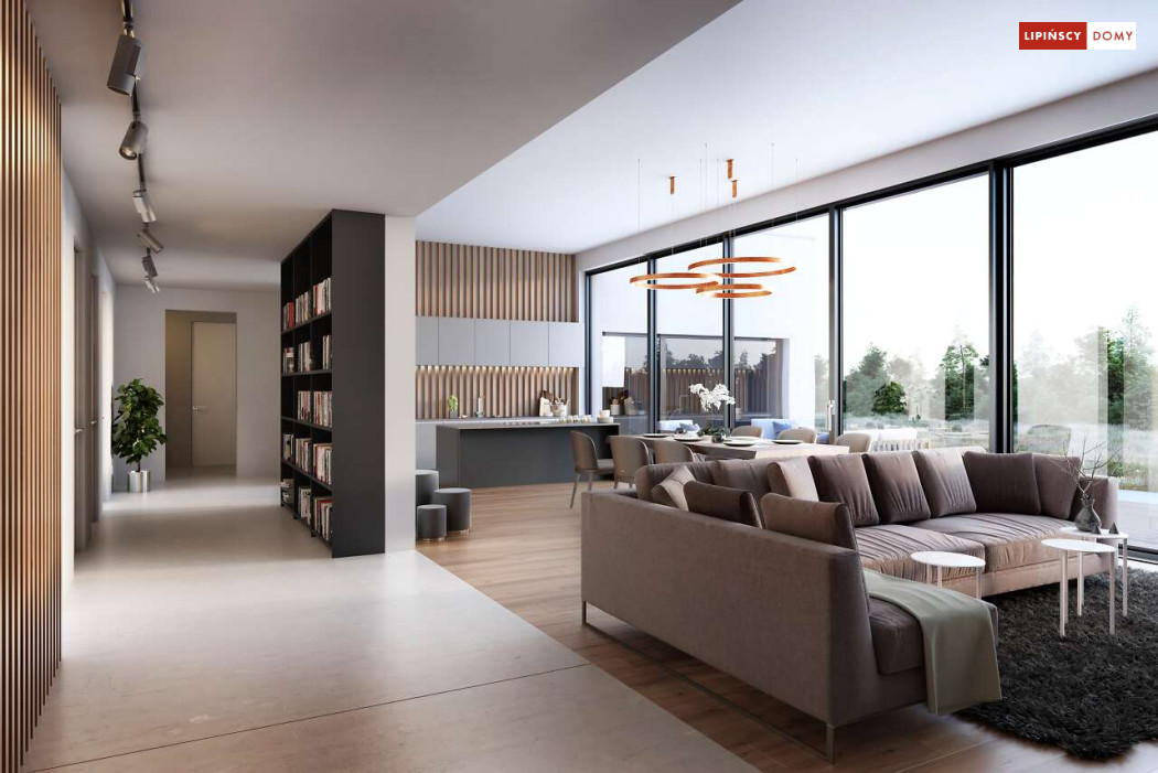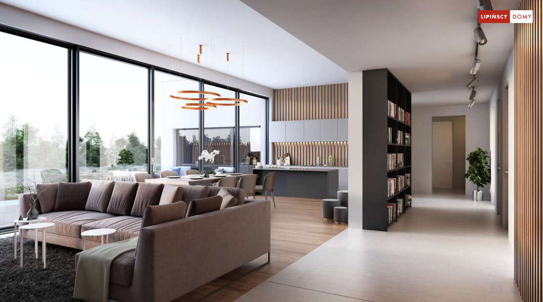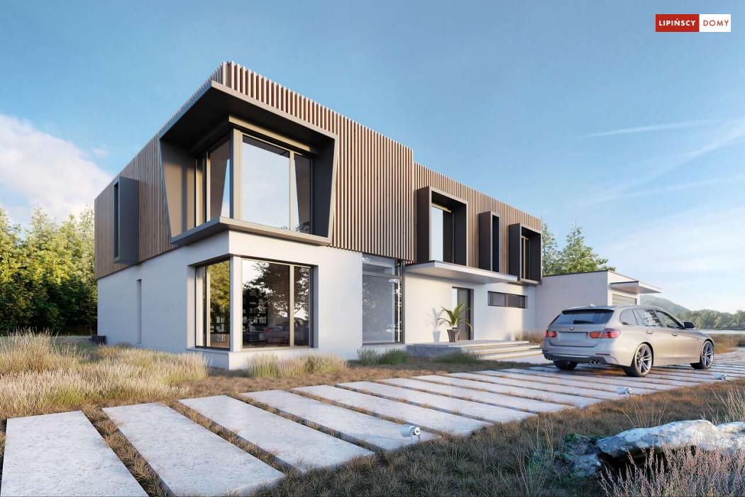 Przepiękny rozłożysty dom z częściowym pietrem wg projektu Annecy to komfortowa propozycja dla wymagających inwestorów. Nietypowa bryła domu z ciekawymi przeszkleniami, mieści bogaty program funkcjonalny. Parter podzielono na 3 części, w tym środkowa to podwyższona otwarta strefa dzienna, a boczne mieszczą z jednej strony dwustanowiskowy garaż, a za nim sporą część rekreacyjną z siłownią, sauną i zapleczem sanitarnym, natomiast po przeciwnej stronie - gabinet i dużą sypialnię małżeńską z łazienką. Piętro to strefa prywatna z czterema sypialniami i dwiema łazienkami.