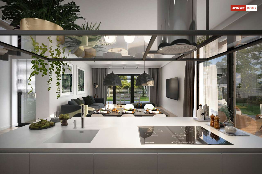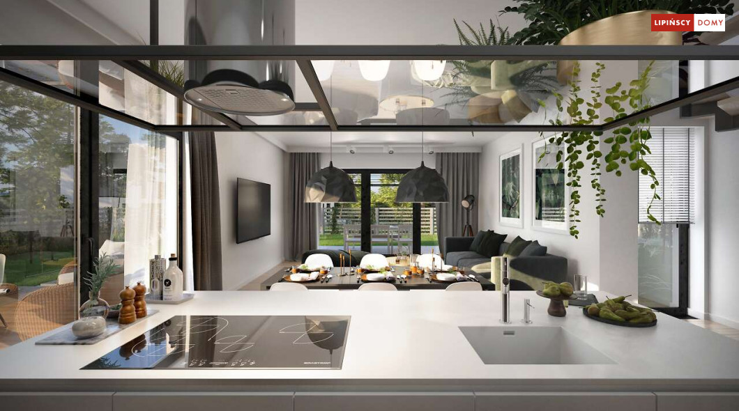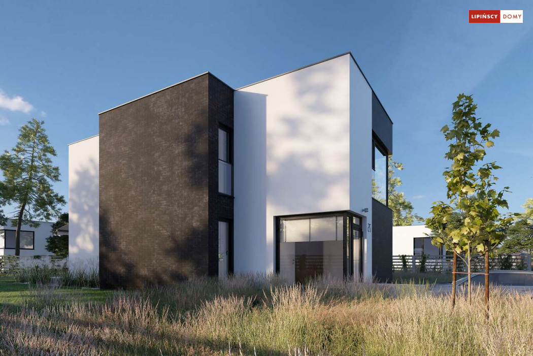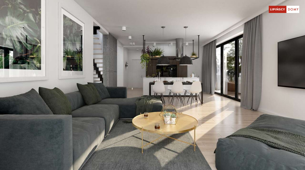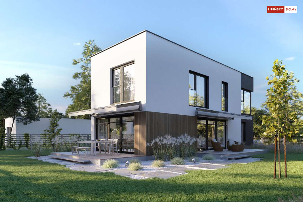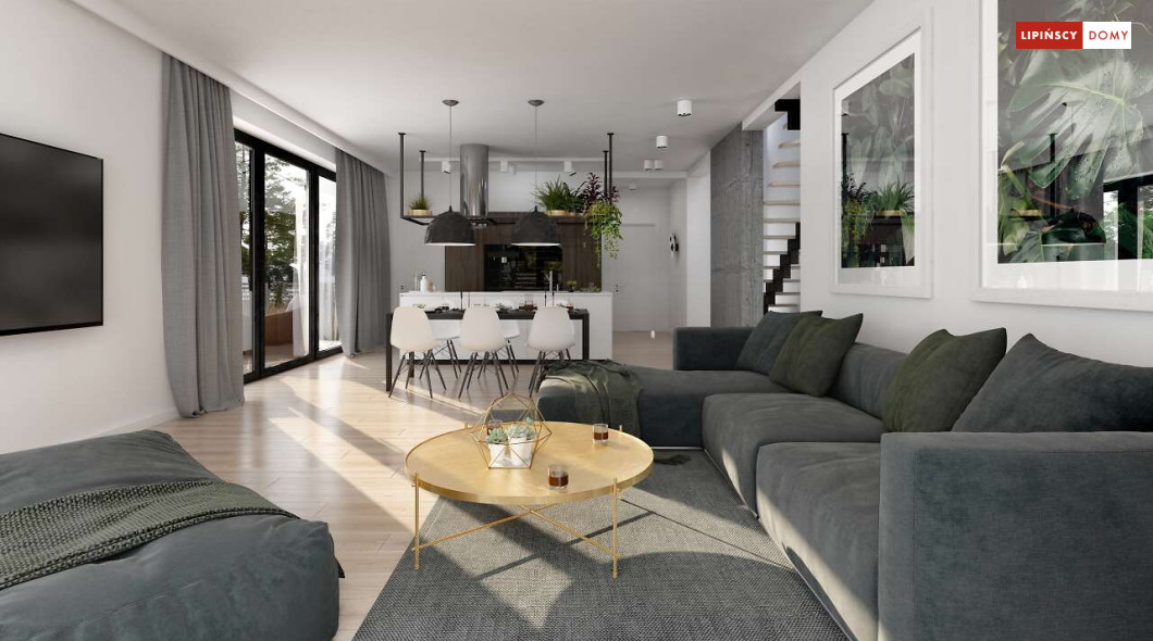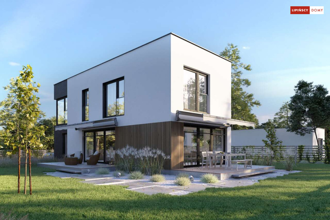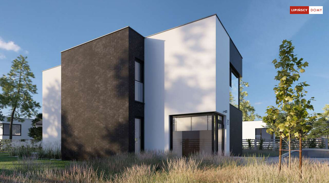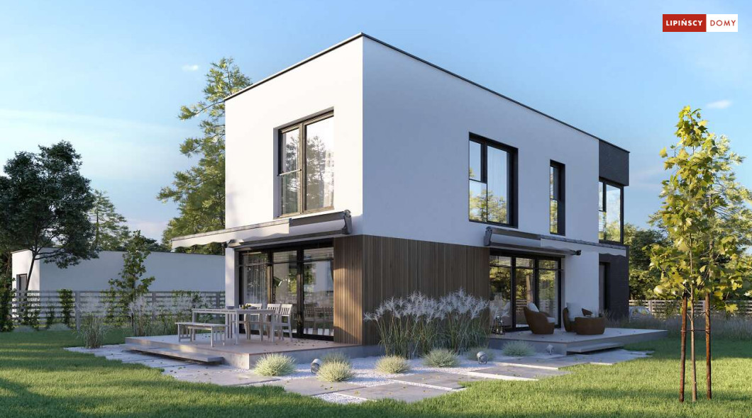 Nowoczesny, energooszczędny dom z płaskim dachem, idealny do zamieszkania przez 3-4 osobową rodzinę. Uwagę zwraca usytuowanie schodów, które – zlokalizowane w świetliku doświetlającym wnętrze, mogą stanowić ciekawy element aranżacyjny. Centrum domu stanowi przestronny salon z dużymi przeszkleniami oraz strefą kuchenną z funkcjonalną wyspą. Jest tu także wc oraz pomieszczenie techniczne z pompą ciepła i rekuperatorem. Ozdobą domu są dwa tarasy, doskonałe do spędzania czasu na świeżym powietrzu. Druga kondygnacja to trzy sypialnie i wygodna, doświetlona oknem łazienka. Dzięki zwartej bryle i niedużej szerokości, dom doskonale nadaje się do budowy na wąskiej działce.