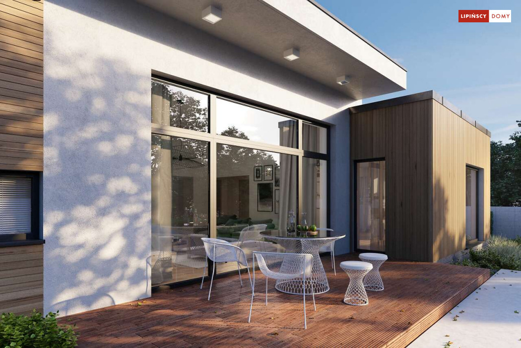 Dużo przestrzeni, dużo światła, niebanalny wygląd i wygoda – to krótkie podsumowanie tego, co oferuje Ci projekt Vitrac II. Poczuj radość z korzystania z wysokiego, przeszklonego salonu, dużej, wygodnej kuchni z jadalnią i komfortowej sypialni. W domu znajdują się także dwa niezależne pokoje, co czyni go doskonałą propozycją dla nowoczesnej, lubiącej niestandardowe rozwiązania rodziny 2+2.