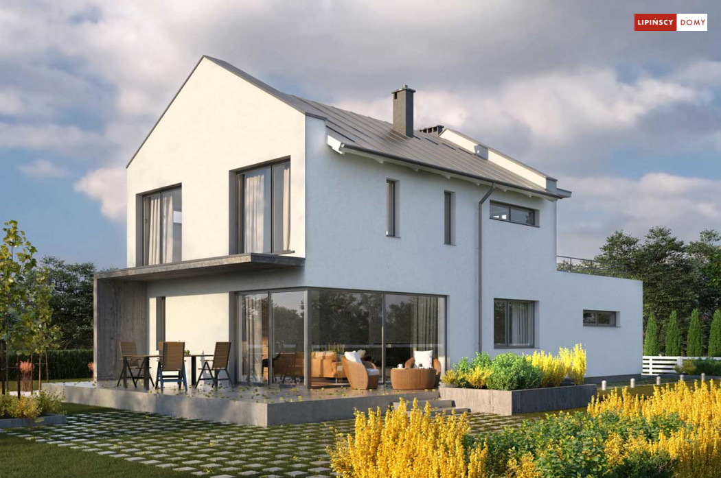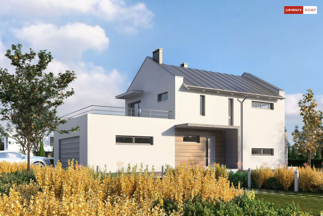 Szukasz funkcjonalnego domu piętrowego o nowoczesnej bryle, ale z dachem dwuspadowym? Zwróć uwagę na kolejnego Belfasta w naszej kolekcji, który dzięki usytuowanemu od frontu garażowi można wybudować nawet na wąskiej działce. Obszerny, doświetlony dużymi przeszkleniami salon z kominkiem otwiera się na ogród, a zlokalizowana obok kuchnia sprzyja wspólnemu gotowaniu. Dzięki osobnemu pokojowi na parterze zapewnisz swoim gościom wygodny nocleg, a trzy sypialnie na piętrze oraz wygodna duża łazienka pozwalają odizolować część wspólną od prywatnej.