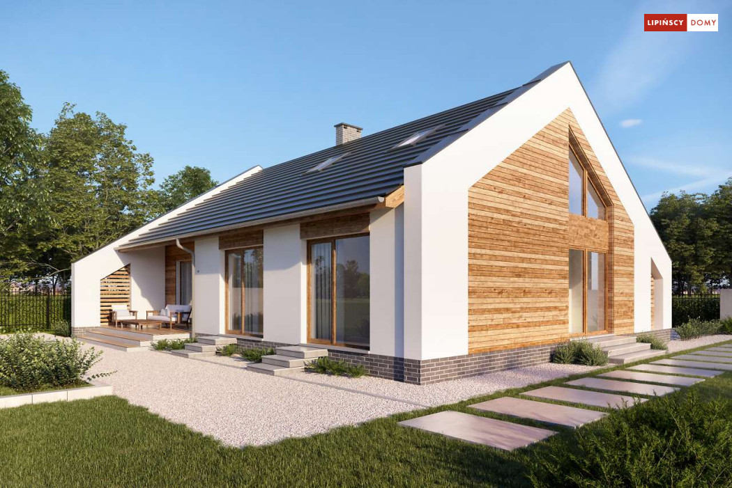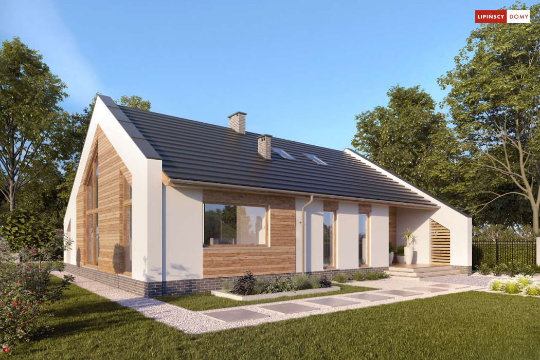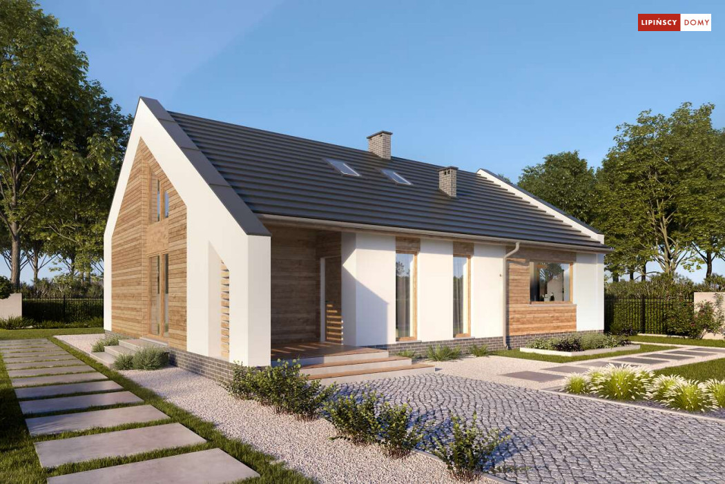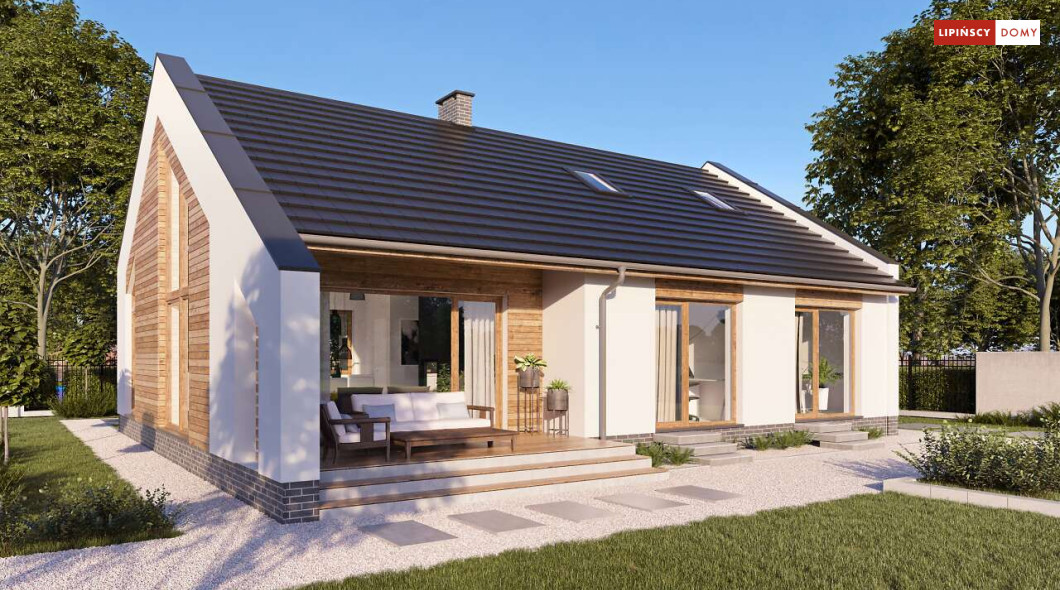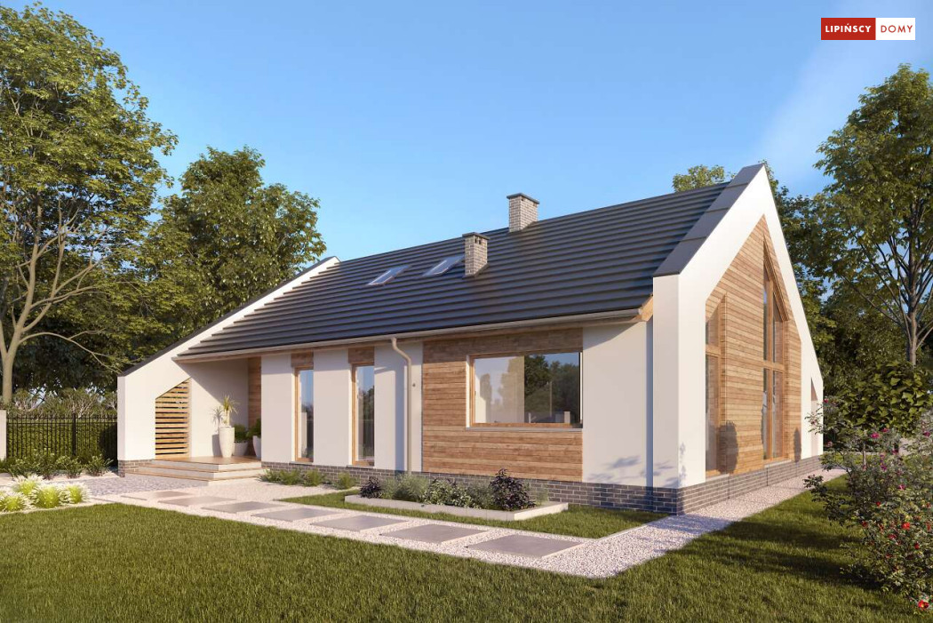 Szukasz niebanalnego domu parterowego, wygodnego do zamieszkania dla 4 osobowej rodziny? Franklin IV zwróci Twoją uwagę swoim wyjątkowym wyglądem, któremu charakteru nadają wyciągnięte ściany szczytowe oraz funkcjonalnym rozkładem wnętrza. Sercem domu jest duży, jasny salon z wysokim sufitem, co nadaje mu przestronności. Do dyspozycji mieszkańców jest także ustawna kuchnia, zlokalizowana obok niej spiżarnia, wygodna, duża łazienka i trzy sypialnie. Przestrzeń na poddaszu o metrażu 25 m2 zaaranżować możesz w zależności od potrzeb gabinet, studio, bawialnię dla dzieci, sypialnię, bibliotekę lub kącik wypoczynkowy. Projekt Franklin IV jest doskonałą propozycją dla osób szukających domu wyróżniającego się wyglądem, a jednocześnie spełniającego większość warunków zabudowy. W projekcie przewidziano ogrzewanie kotłem na gaz. Możliwa jest zmiana ogrzewania na pompę ciepła.