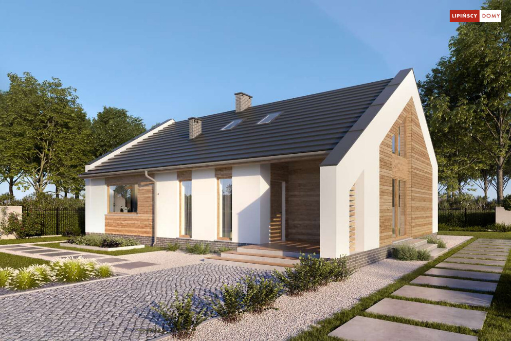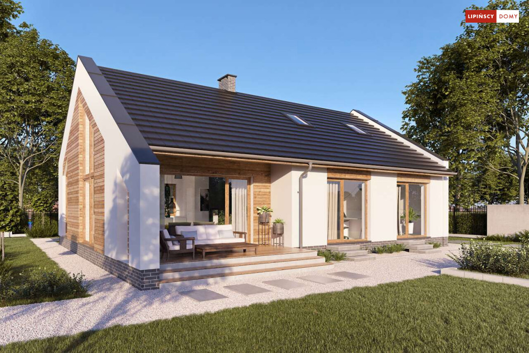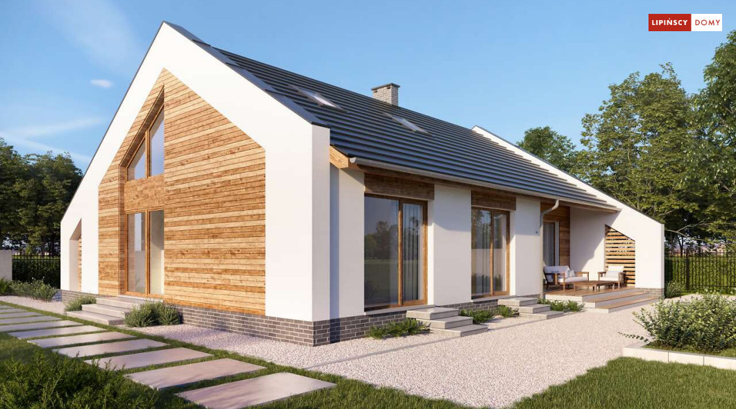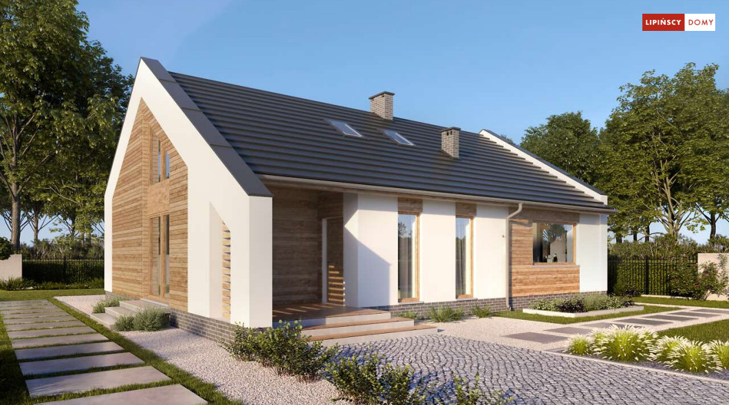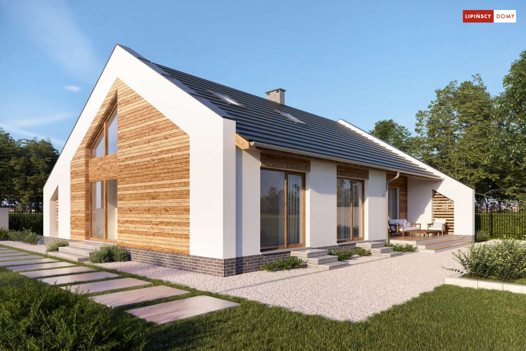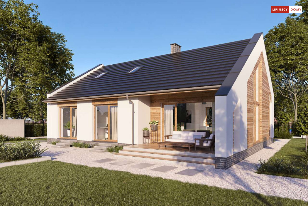 Szukasz niebanalnego domu parterowego, wygodnego do zamieszkania dla 4 osobowej rodziny? Franklin IV zwróci Twoją uwagę swoim wyjątkowym wyglądem, któremu charakteru nadają wyciągnięte ściany szczytowe oraz funkcjonalnym rozkładem wnętrza. Sercem domu jest duży, jasny salon z wysokim sufitem, co nadaje mu przestronności. Do dyspozycji mieszkańców jest także ustawna kuchnia, zlokalizowana obok niej spiżarnia, wygodna, duża łazienka i trzy sypialnie. Przestrzeń na poddaszu o metrażu 25 m2 zaaranżować możesz w zależności od potrzeb gabinet, studio, bawialnię dla dzieci, sypialnię, bibliotekę lub kącik wypoczynkowy. Projekt Franklin IV jest doskonałą propozycją dla osób szukających domu wyróżniającego się wyglądem, a jednocześnie spełniającego większość warunków zabudowy. W projekcie przewidziano ogrzewanie kotłem na gaz. Możliwa jest zmiana ogrzewania na pompę ciepła.