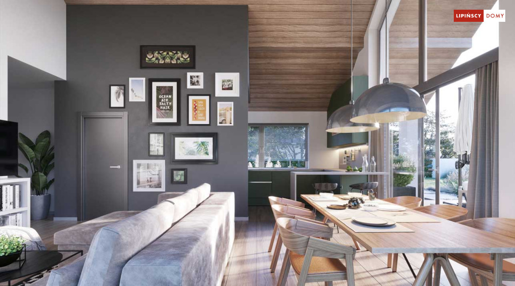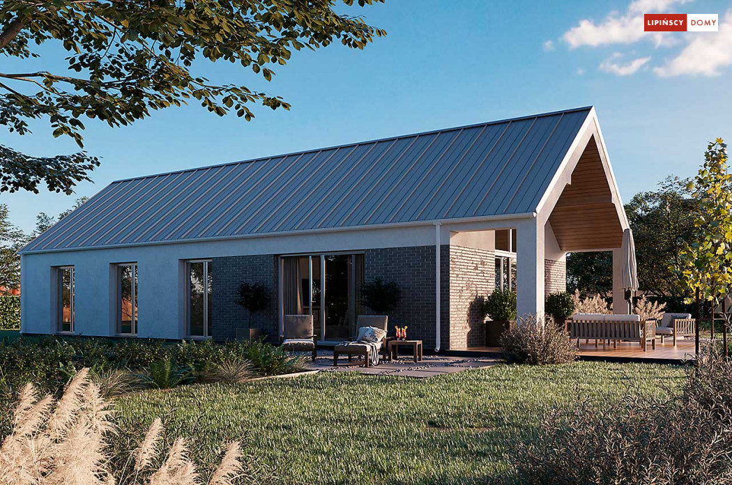 Projekt parterowego domu Alaska to prosta forma w eleganckim wydaniu. Cztery sypialnie, dwie wygodne łazienki i przestronny salon połączony z kuchnią i jadalnią, czynią z tego projektu idealny dom dla Twojej rodziny. Salon o wysokim wnętrzu i oryginalnych przeszkleniach, posiada zadaszony taras i wygodną przestrzeń dzienną. Kuchnia ze spiżarką wydzielona jest kontuarem. To wnętrze daje niepowtarzalną możliwość nowoczesnej aranżacji. Każda z czterech sypialnia jest ustawna tak, że w tym niewielkim domu wygodnie zamieszka pięć osób. W projekcie przewidziano ogrzewanie pompą ciepła. Alaska to doskonały projekt, nowoczesnego i kompaktowego domu na wąskie działki z wejściem od południa.