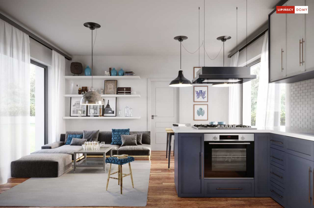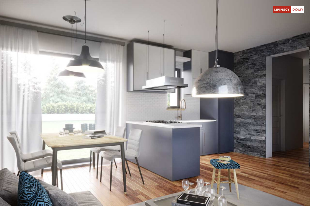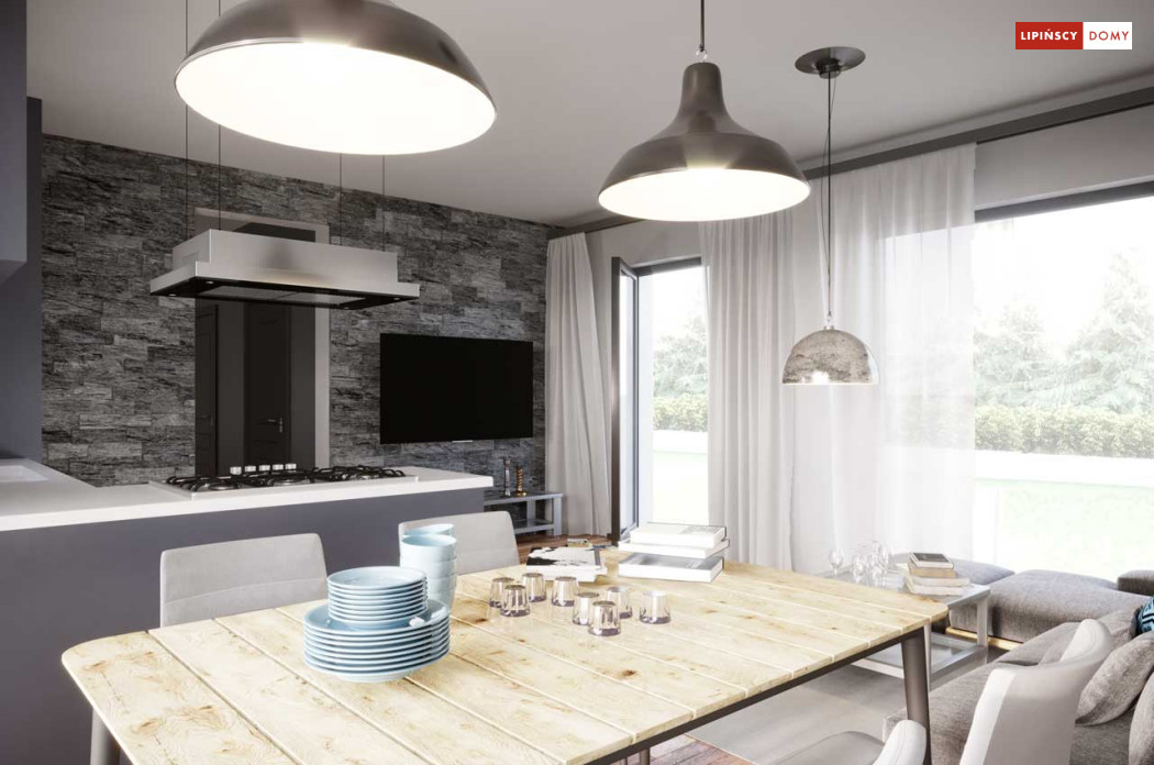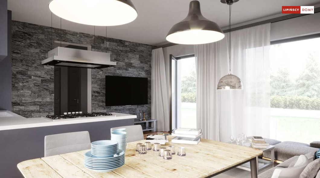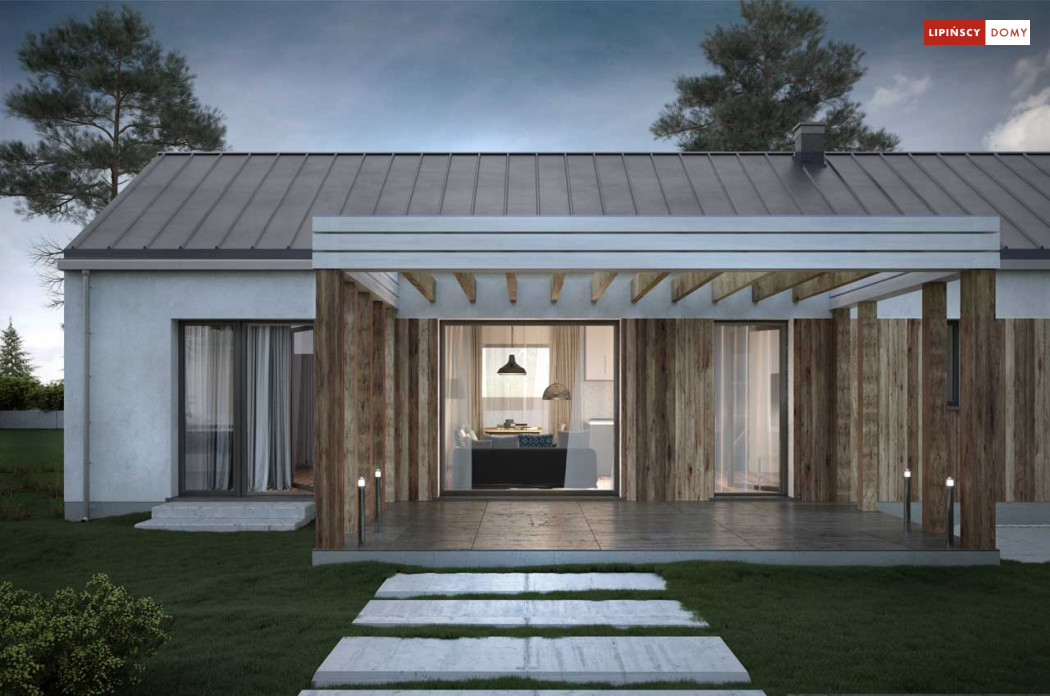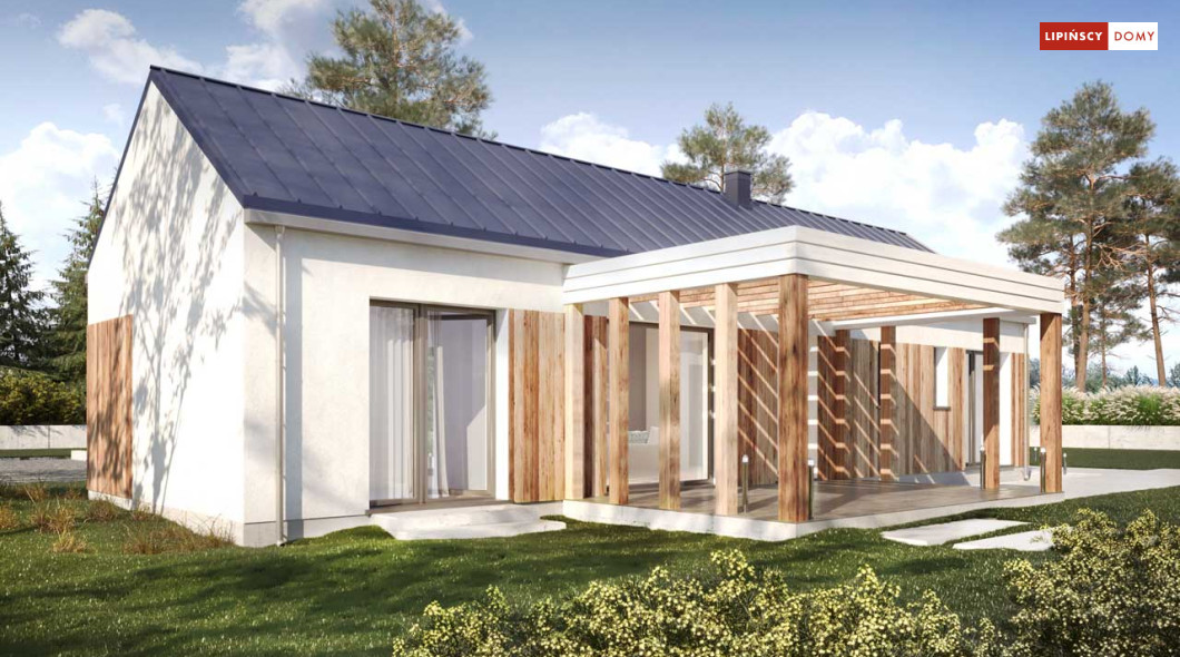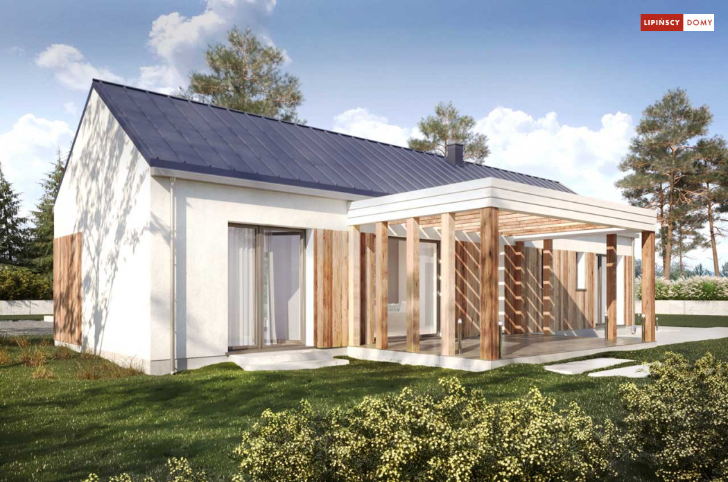 Ribeira II to propozycja dla Inwestorów, których zainteresował projekt Ribeira, jednak nie mogą na swojej działce wybudować domu z płaskim dachem. Nowoczesny, nieduży dom parterowy z dachem dwuspadowym. Jego sercem jest salon z kuchnią, w którym domownicy mogą wspólnie spędzać czas. Część nocna domu to dwie sypialnie i łazienka. Ribeira II to dom otwarty dla gości, gdyż obok salonu zlokalizowany jest dodatkowy pokój z własną łazienką. Może on też służyć jako sypialnia rodziców, którzy swoim pociechom zostawiają do dyspozycji drugą część domu. Pomieszczenie gospodarcze zlokalizowane niedaleko kuchni może posłużyć również jako spiżarka. Wnętrza są bardzo dobrze doświetlone dużymi przeszkleniami, co w połączeniu z dużym tarasem daje odczucie przestronności mimo niewielkiej powierzchni domu. W projekcie przewidziano ogrzewanie kotłem na gaz. Możliwa jest zmiana ogrzewania na pompę ciepła.