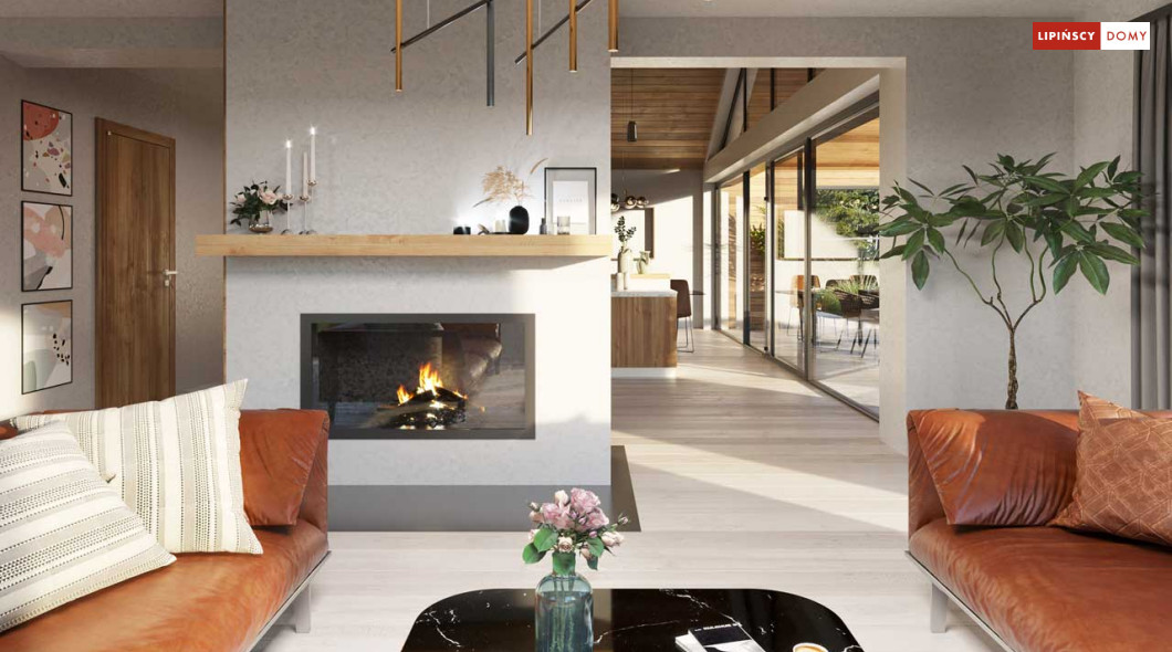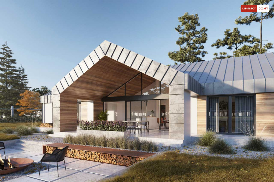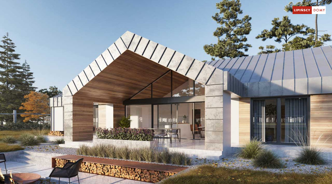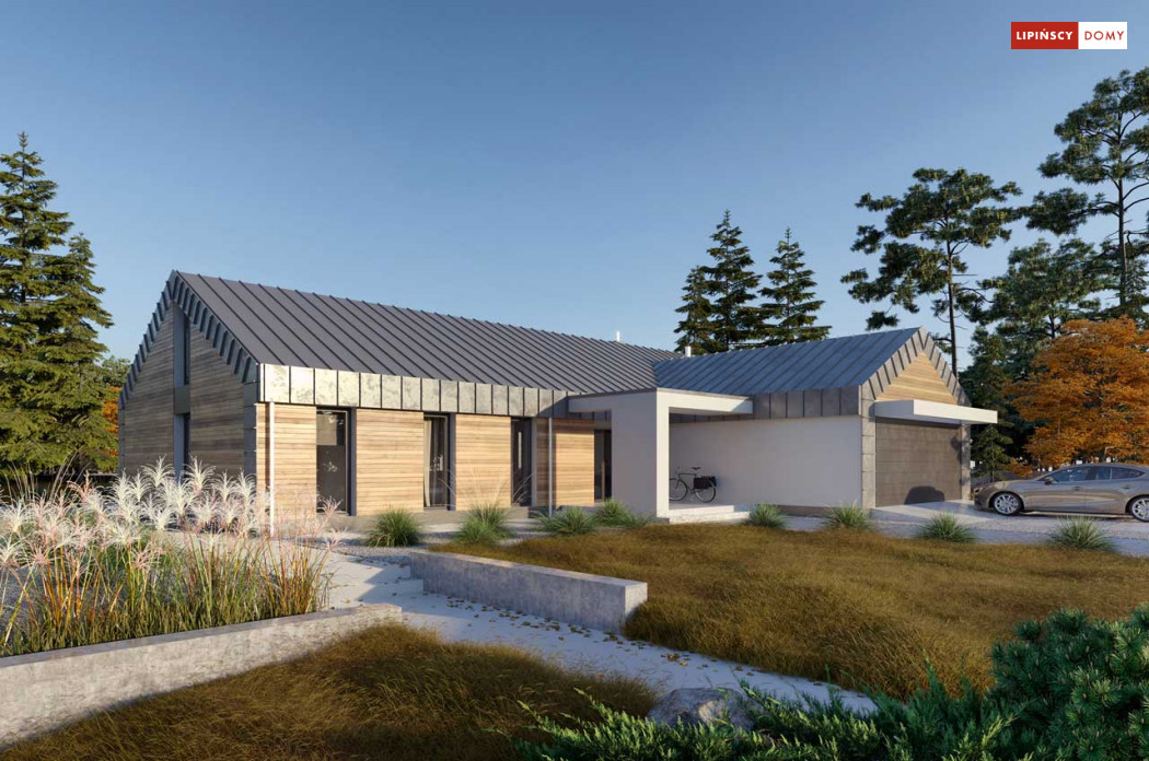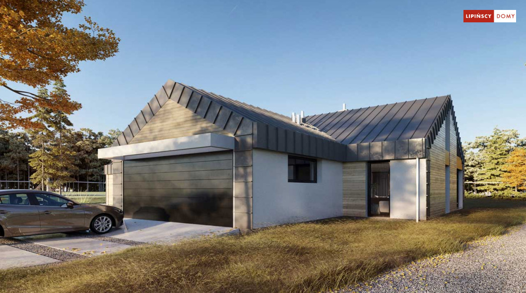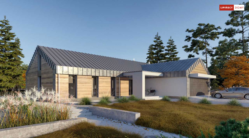Mindelo II to propozycja dla wszystkich mniej licznych rodzin, które zachwycił nasz projekt Mindelo, ale uważają, że jest nieco za duży jak na ich potrzeby. Zachowaliśmy w nim to, co w Mindelo najlepsze, czyli efektowną, przestronną i wygodną część dzienną z dużą przestrzenią wypoczynkową po jednej stronie z kominkiem, po drugiej - z telewizorem, a także kuchnią połączoną z jadalnią i uzupełnioną o spiżarnię oraz pomieszczenie wc. Miejsce to zaprasza do wspólnego spędzania czasu. W wydzielonej części nocnej znajduje się duża sypialnia rodziców z własną garderobą oraz mniejszy pokój dla dziecka. Od strony południowej przez całą długość domu ciągnie się wygodny taras, an który są wejścia z wszystkich przylegających do niego pomieszczeń mieszkalnych. Do dyspozycji mieszkańców jest tu też przestronna łazienka i przydatna pralnia. Całości projektu dopełnia garaż dwustanowiskowy i pomieszczenie gospodarcze dostępne z wiatrołapu.