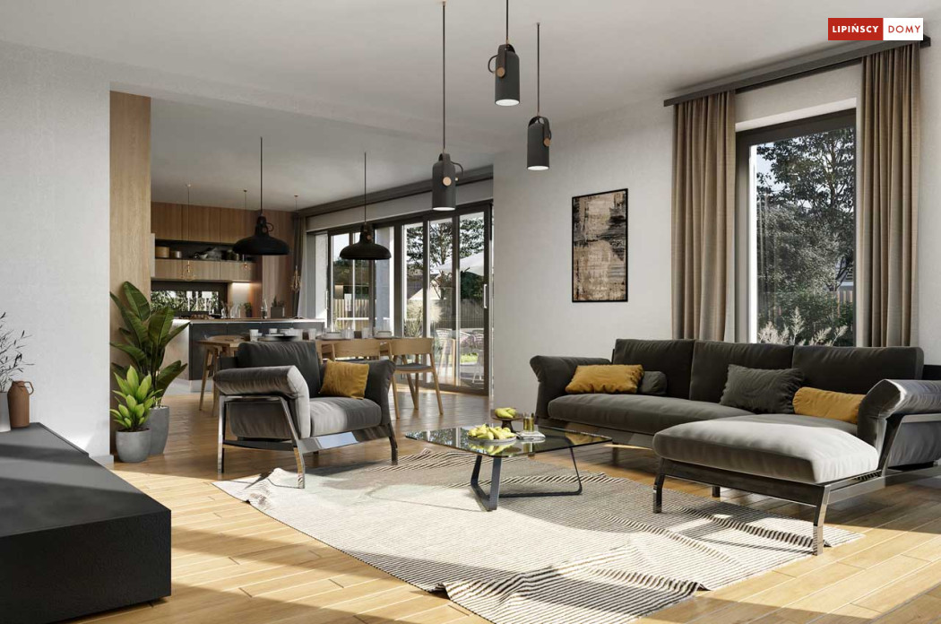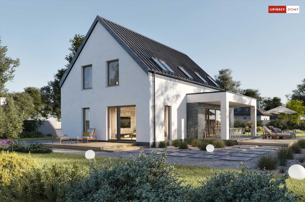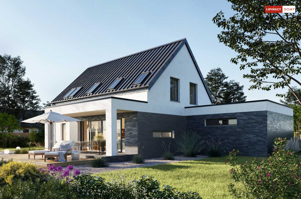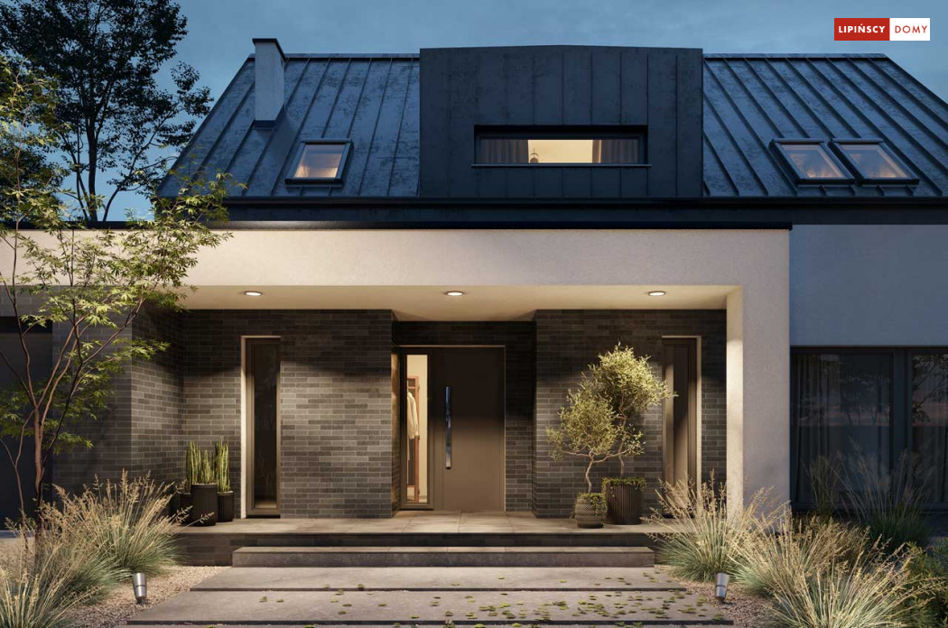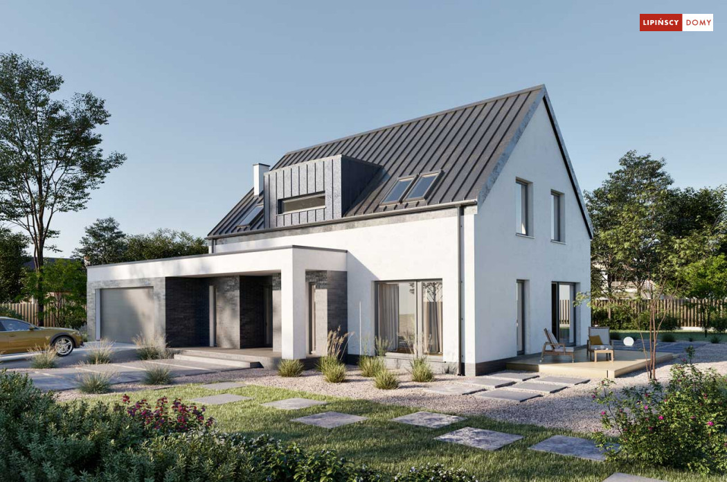 Nowoczesny, energooszczędny, słoneczny dom, większa wersja projektu Rejkiawik DCP403, na szerszą działkę. Strefę dzienną domu tworzy przestronny salon z jadalnią oraz częściowo otwarta kuchnia z praktyczną spiżarnią. Duże okna od południa i zachodu gwarantują bardzo dobre nasłonecznienie tej części domu. Dodatkowo na parterze znajduje się gabinet, który może również służyć jako pokój gościnny, a także łazienka. Z wiatrołapu jest bezpośredni dostęp do kotłowni, z której - bez konieczności wychodzenia na zewnątrz - możemy przejść do dwustanowiskowego garażu. W zlokalizowanej na poddaszu strefie nocnej znajdują się trzy ustawne sypialnie, duża łazienka z wanną i kabiną prysznicową, garderoba oraz praktyczne i potrzebne pomieszczenie pralni. W projekcie przewidziano ogrzewanie pompą ciepła oraz wentylację mechaniczną.