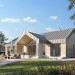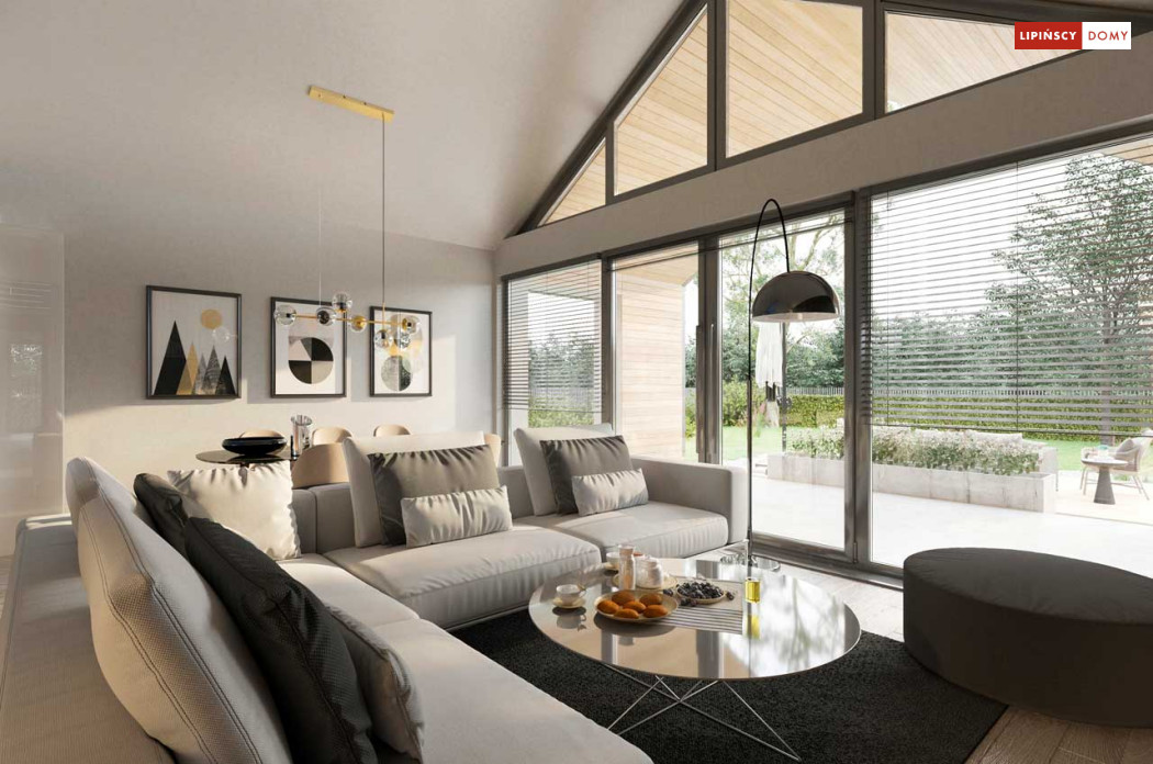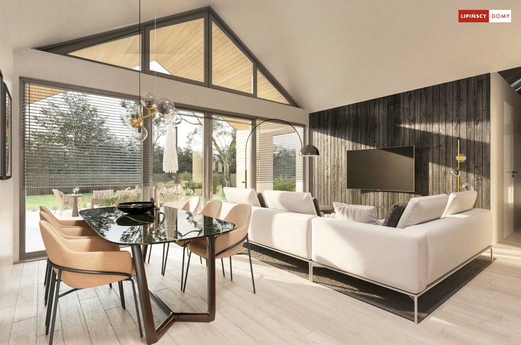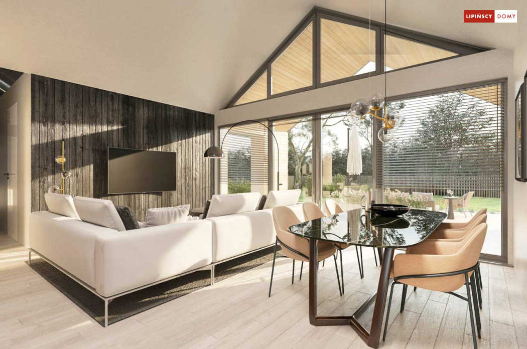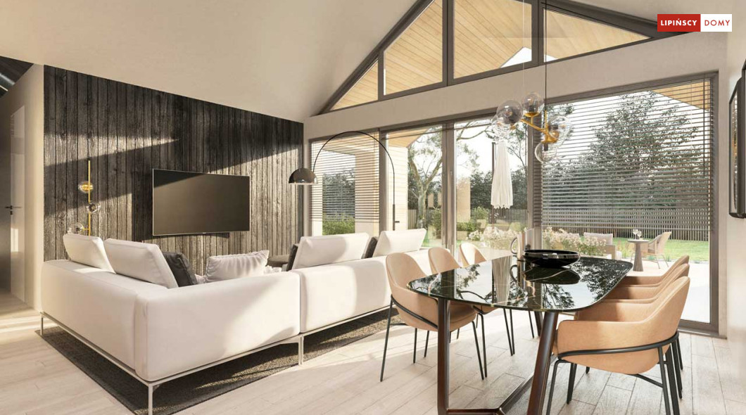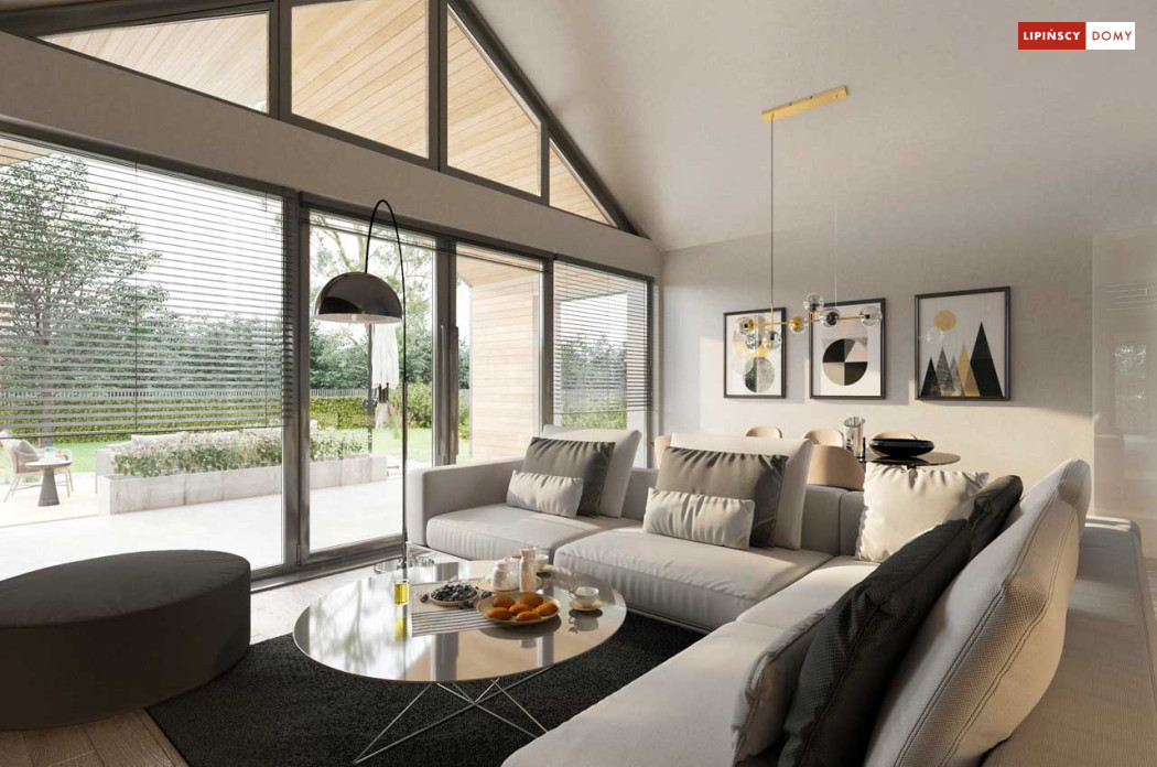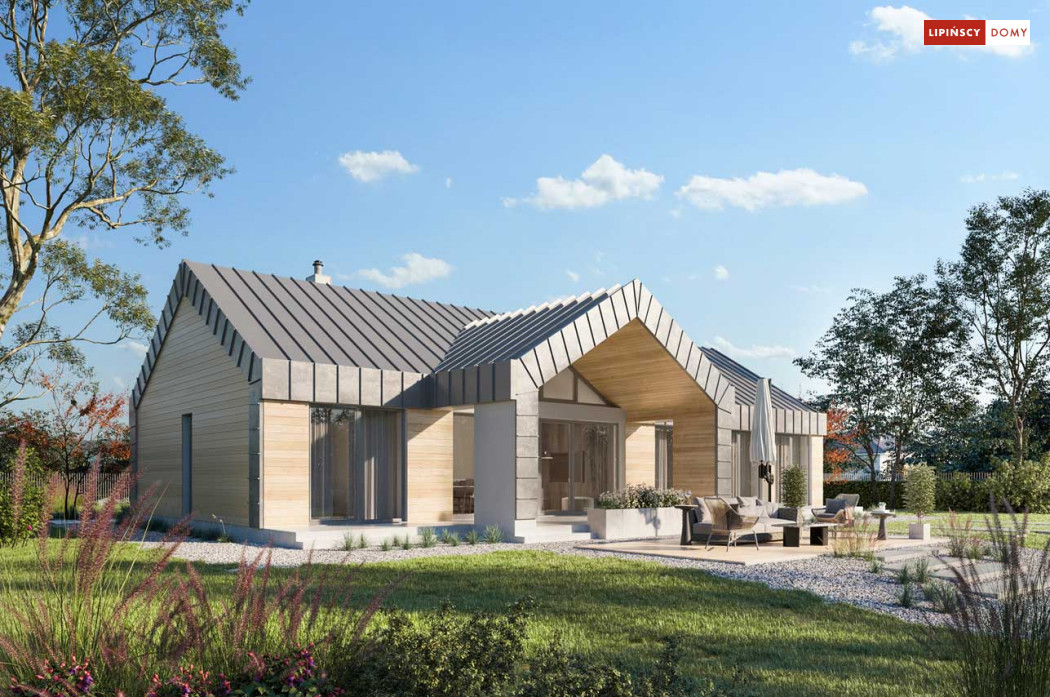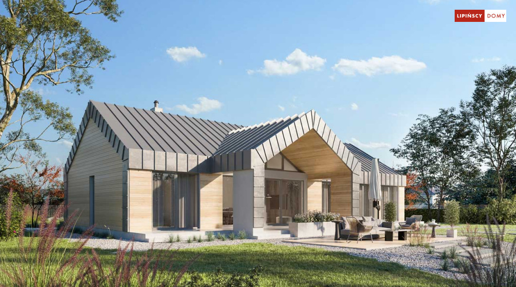 Nowoczesny i efektowny dom parterowy o eleganckiej bryle dla większej rodziny. Czas we wspólnym gronie pozwala spędzać obszerna część dzienna z salonem i wyodrębnionym miejscem na jadalnię, których dopełnieniem jest kuchnia z pojemną spiżarnią. Część nocna to cztery wygodne sypialnie i dwie łazienki. Dodatkowym atutem domu jest oddzielna duża sypialnia z własną łazienką, zlokalizowana obok pokoju dziennego. Przeznaczona na sypialnię rodziców, może również służyć jako bardzo wygodny i niekrępujący pokój gościnny. Do domu przynależy - dostępne z przestronnego wiatrołapu -pomieszczenie gospodarcze, które prowadzi do jednostanowiskowego garażu. W projekcie przewidziano ogrzewanie kotłem na gaz. Możliwa jest zmiana ogrzewania na pompę ciepła.