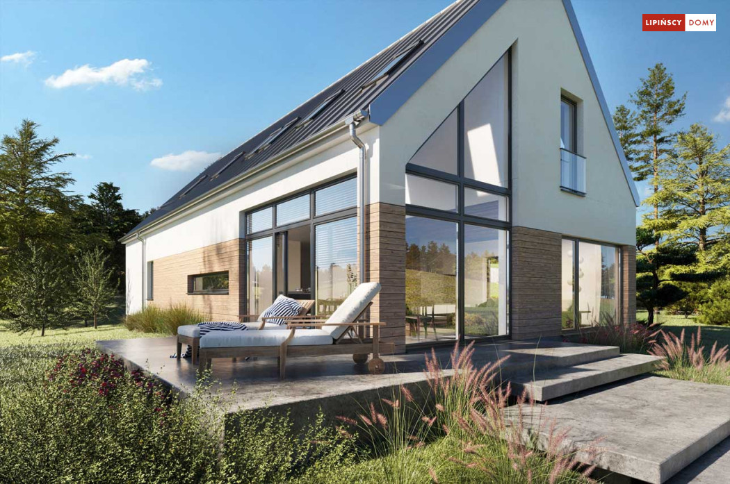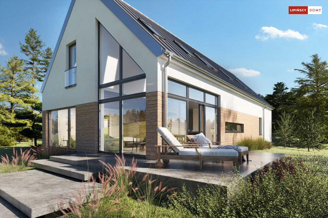 Inwestorom posiadającym wąską działkę, a marzącym o funkcjonalnym domu z poddaszem i dachem dwuspadowym, przedstawiamy projekt Trogir, który pomoże urzeczywistnić te marzenia. Główną przestrzeń parteru zajmuje duży salon z wyjściem na taras, z widną częścią wypoczynkową i wydzielonym miejscem na jadalnię oraz otwarta kuchnia ze spiżarnią. Efektowne, wysokie przeszklenia oraz podniesiony sufit nad jadalnią czynią to miejsce przestronnym i jasnym. Na parterze znajduje się również dodatkowy pokój, który można przeznaczyć na gabinet lub pokój gościnny oraz łazienka. Poddasze to trzy sypialnie, duża łazienka, pralnia i dodatkowe pomieszczenie gospodarcze, które z powodzeniem może pełnić funkcję garderoby. Część gospodarczą domu stanowią jednostanowiskowy garaż i kotłownia – oba pomieszczenia z wygodnym dostępem bezpośrednio z wiatrołapu. W projekcie przewidziano ogrzewanie kotłem na gaz. Możliwa jest zmiana ogrzewania na pompę ciepła.