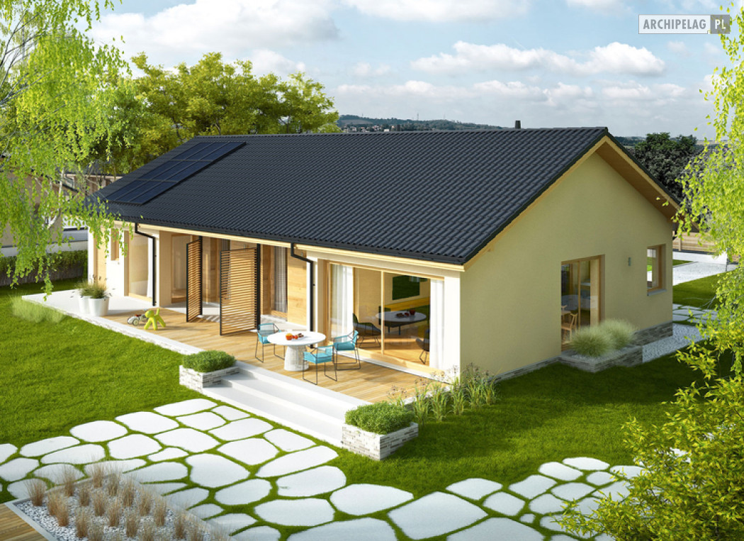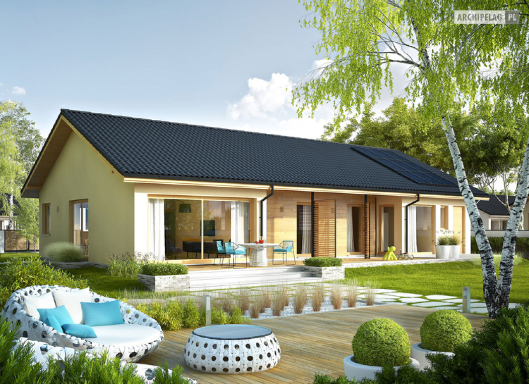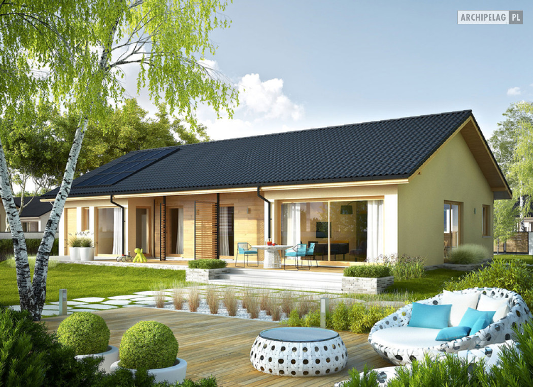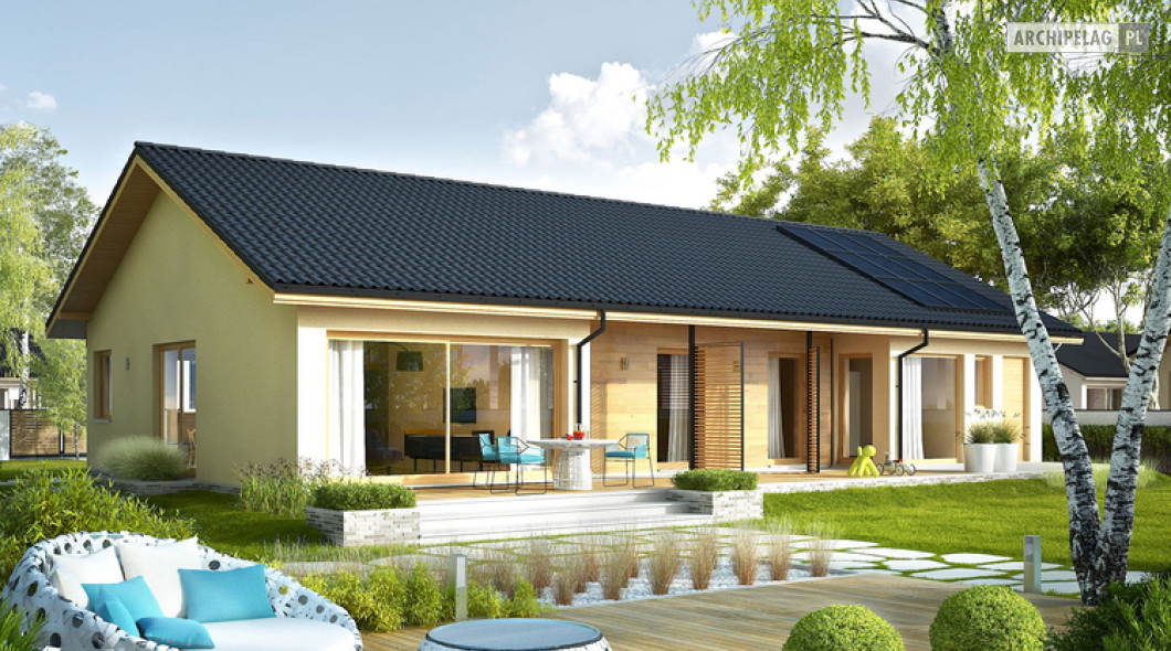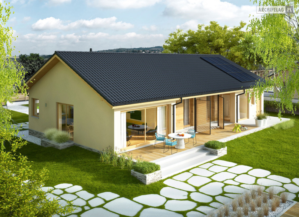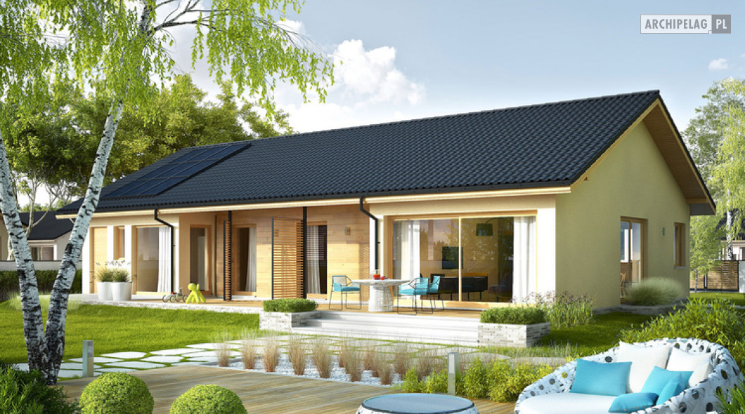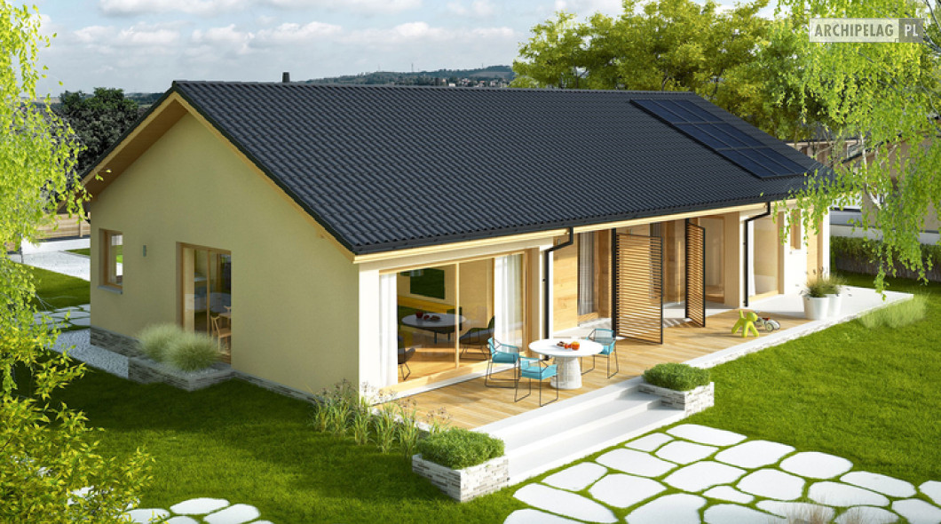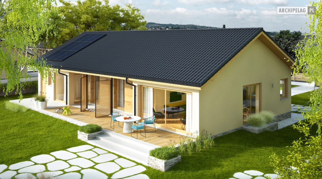 bryła budynku oraz prosty, dwuspadowy dach wpływające pozytywnie zarówno na koszty