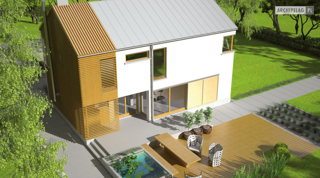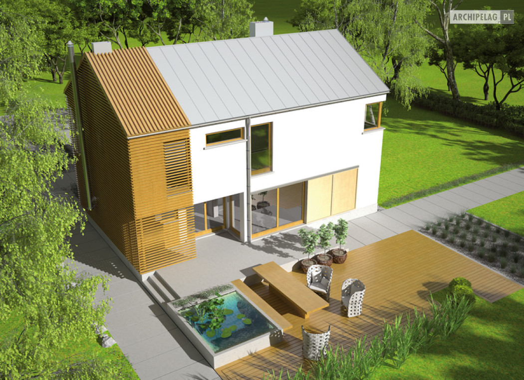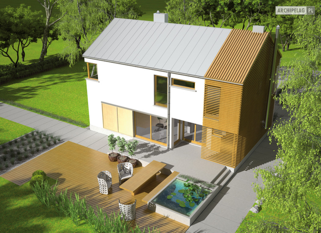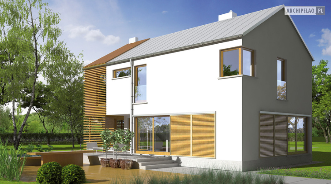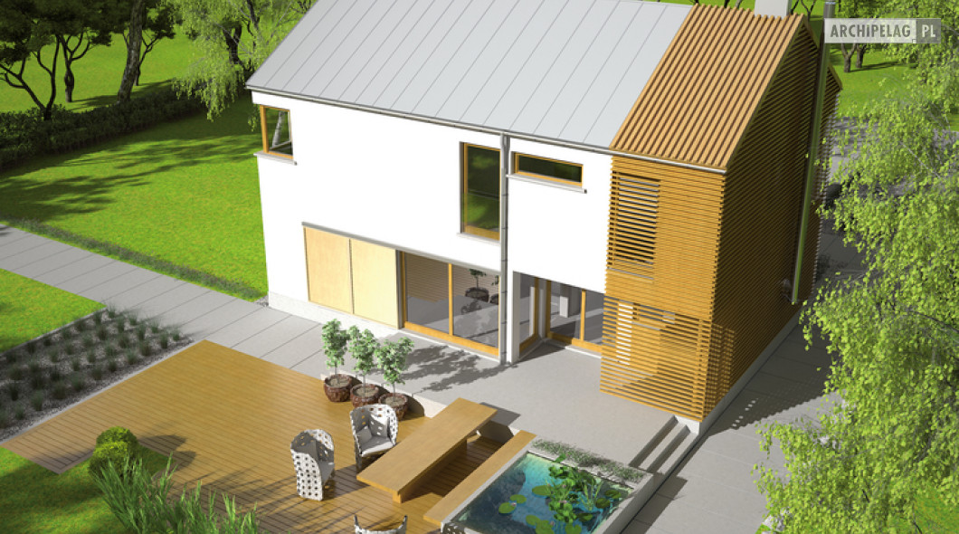 Dach: konstrukcja drewniana, krycie dachu: blacha na rąbek stojący, więźba dachowa dostępna również w prefabrykacji drewnianej w systemie płytki kolczastej Mitek