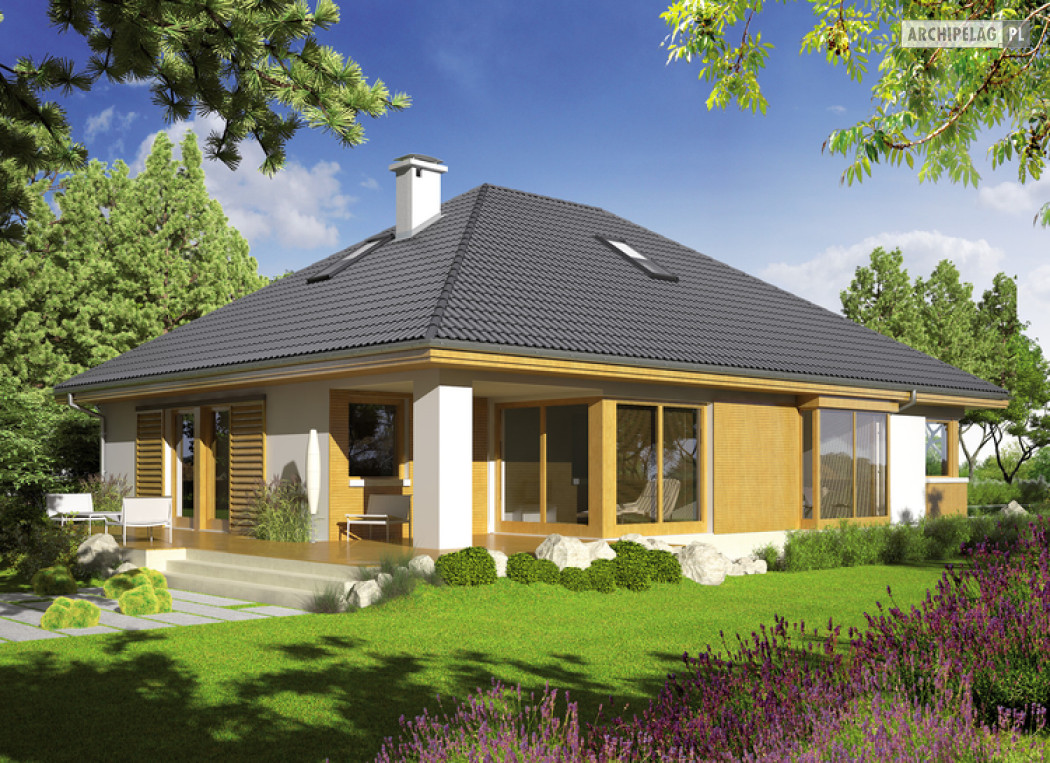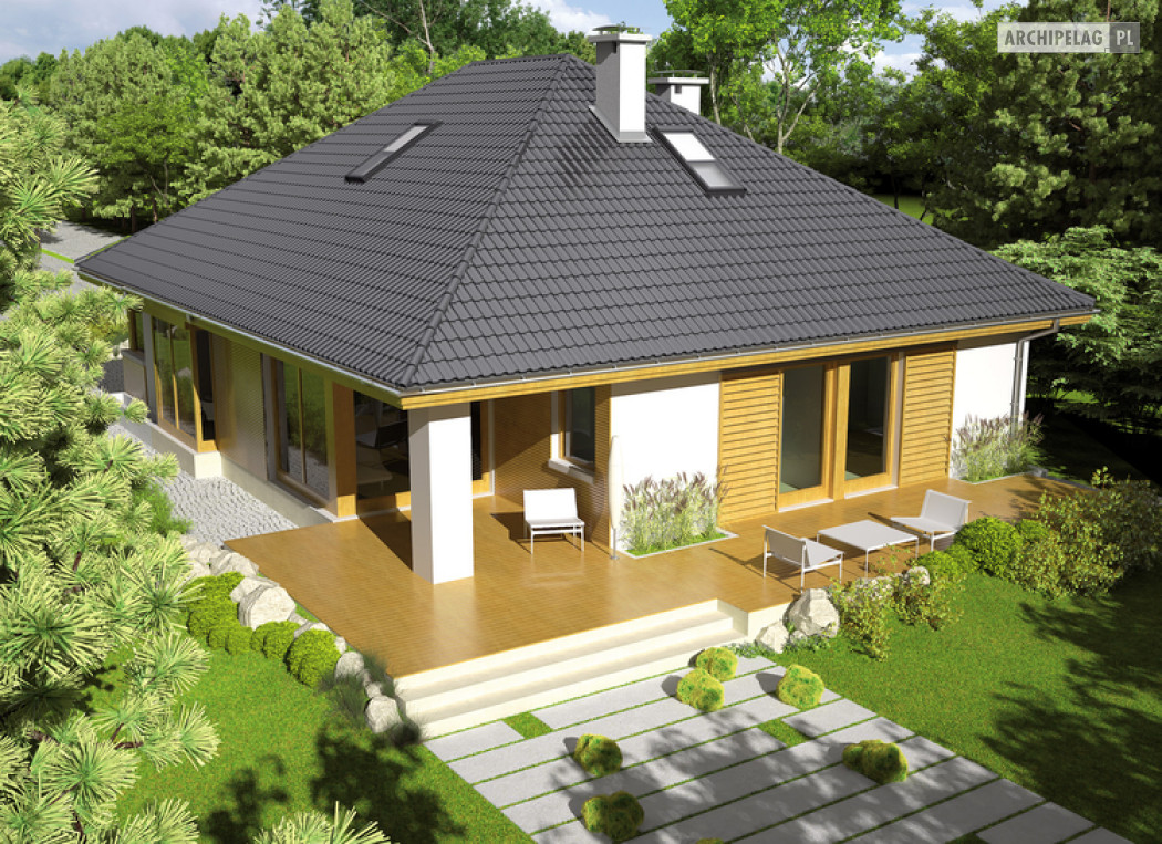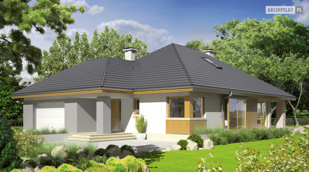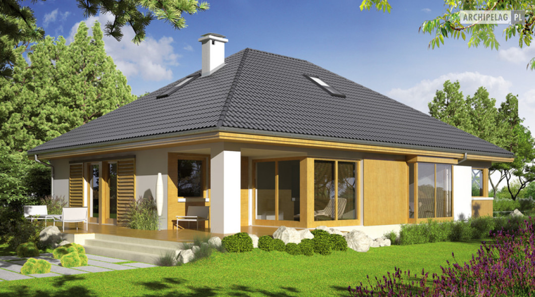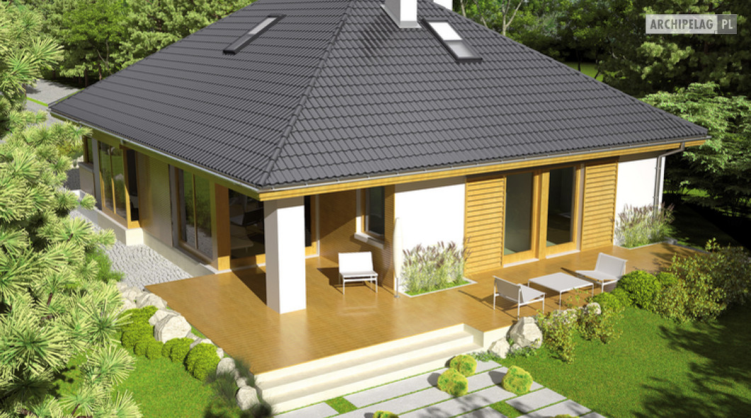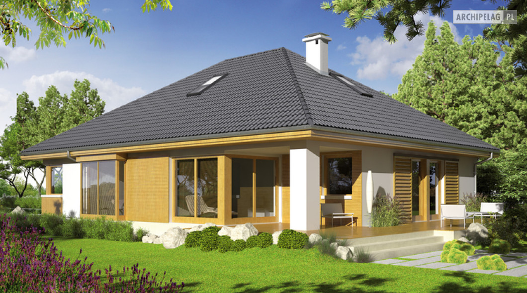 - Glen – podobny układ funkcjonalny, dom parterowy, bez poddasza do adaptacji,