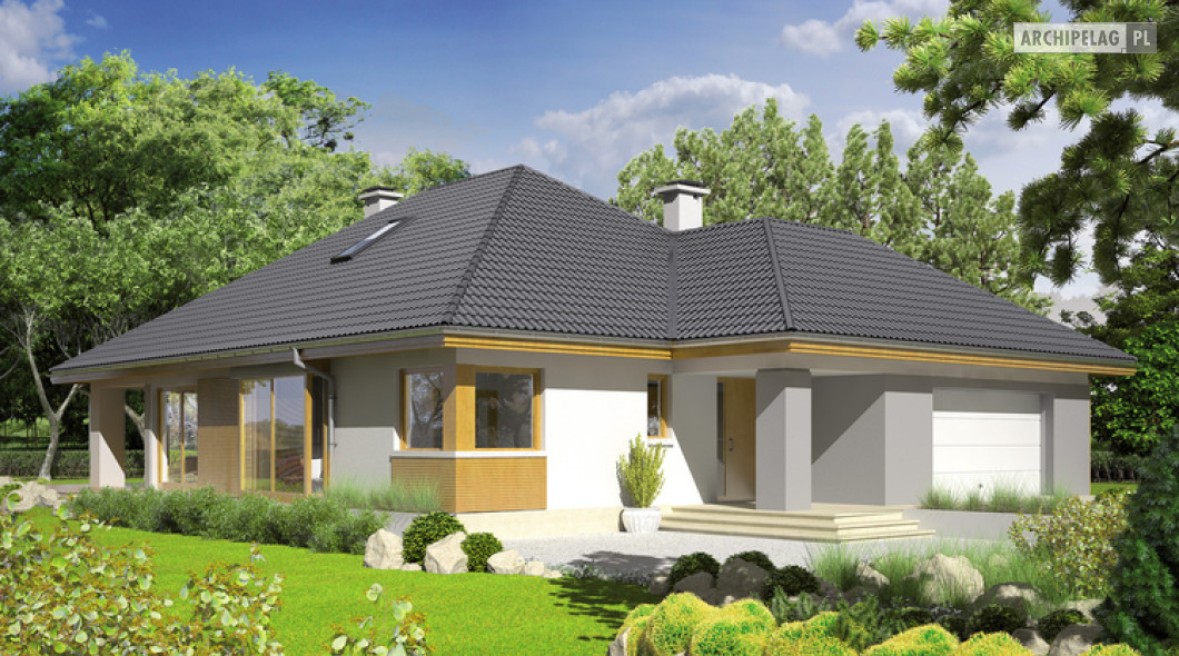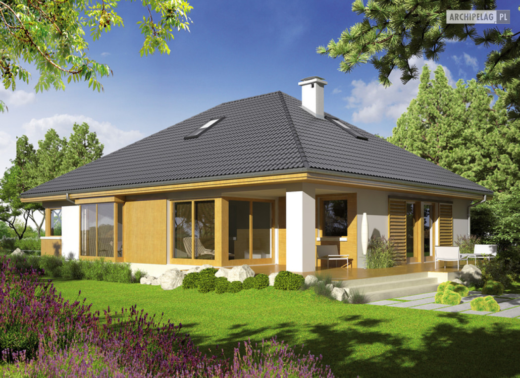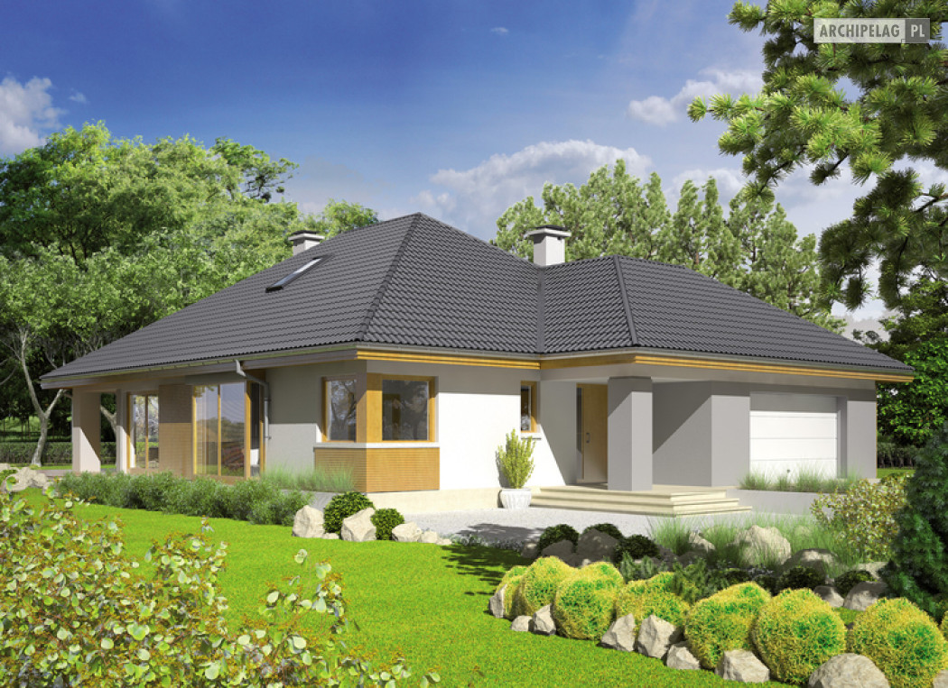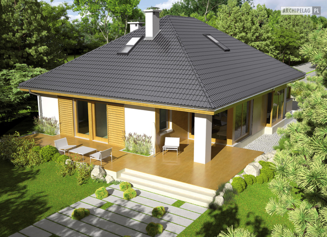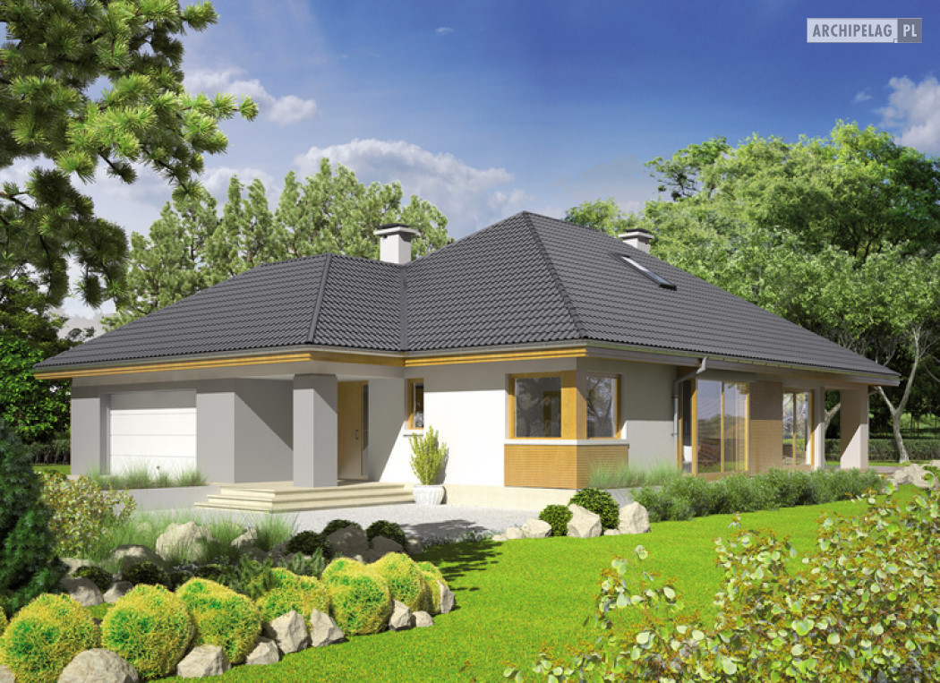 - Glen – podobny układ funkcjonalny, dom parterowy, bez poddasza do adaptacji,