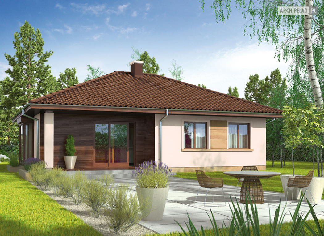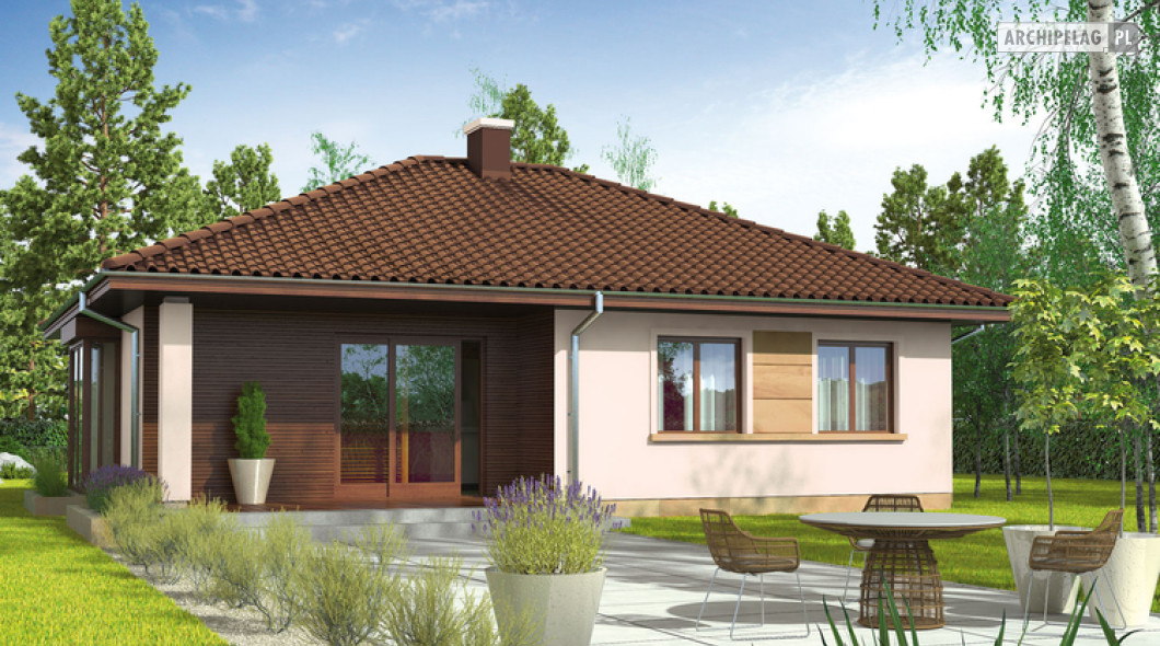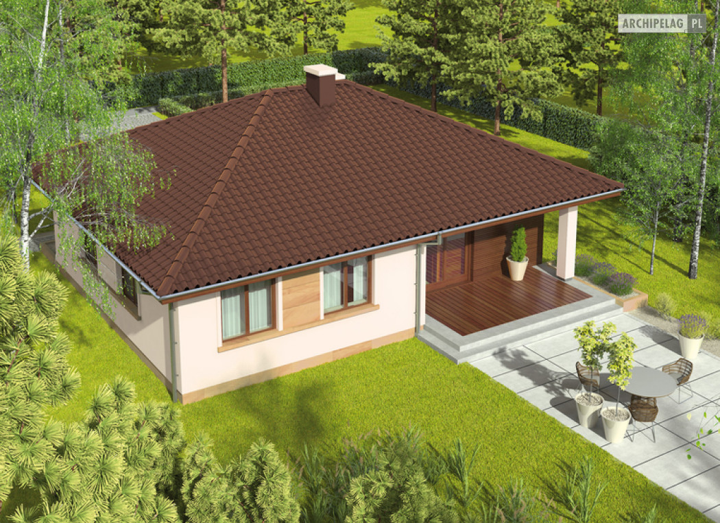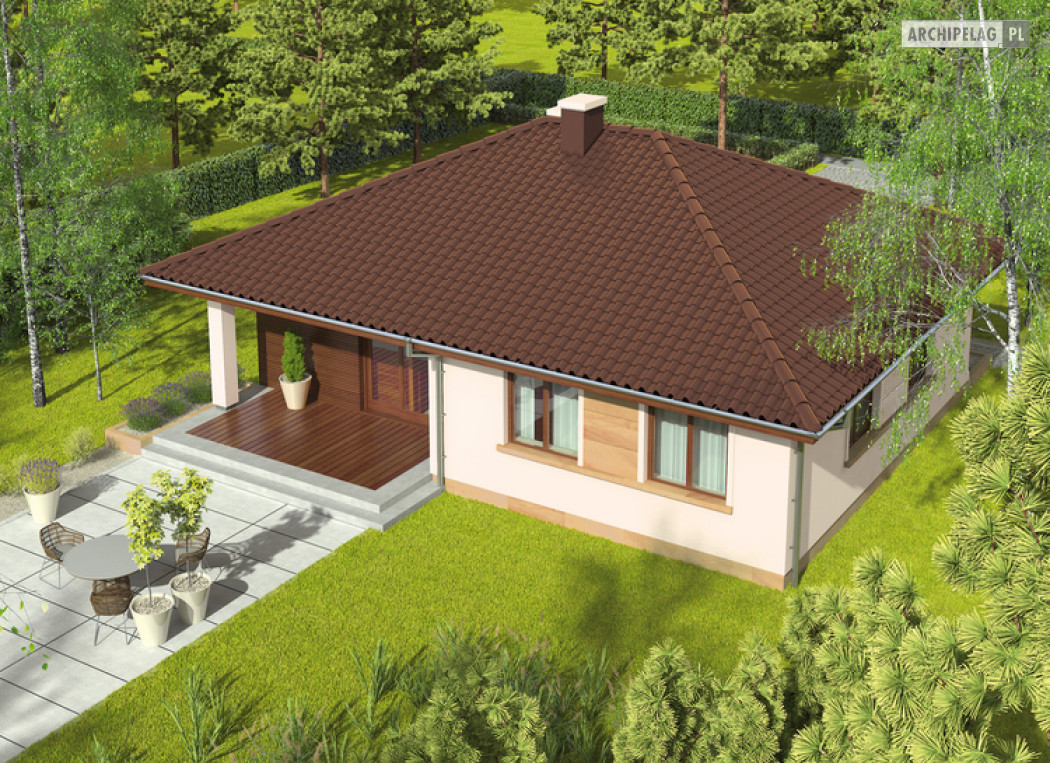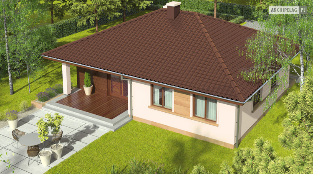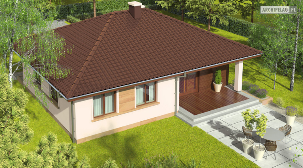 – wersja podstawowa, dom parterowy, 3 sypialnie, dach o kącie nachylenia 25°,