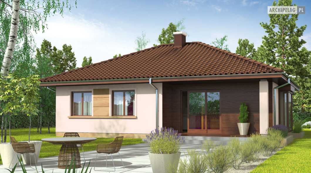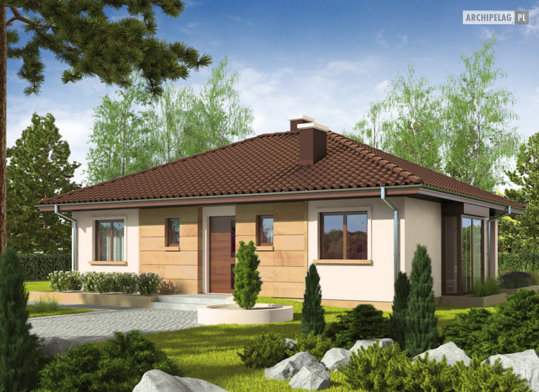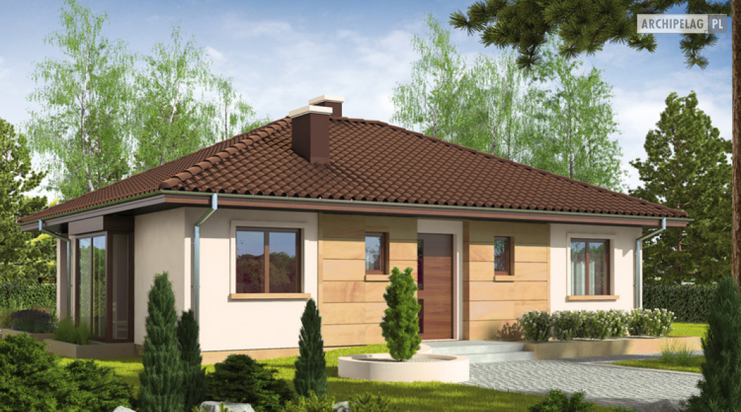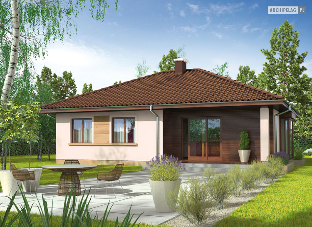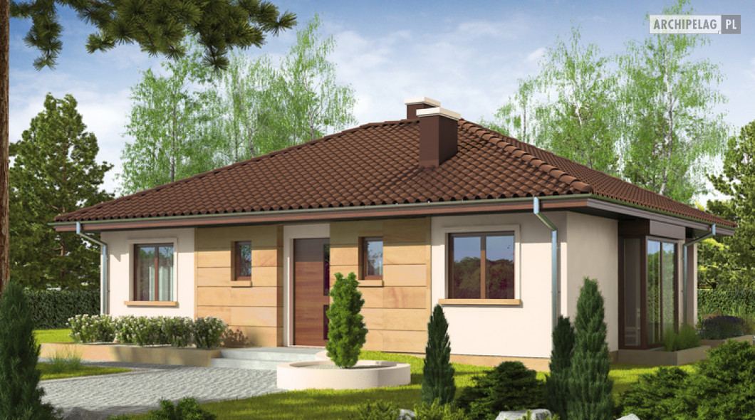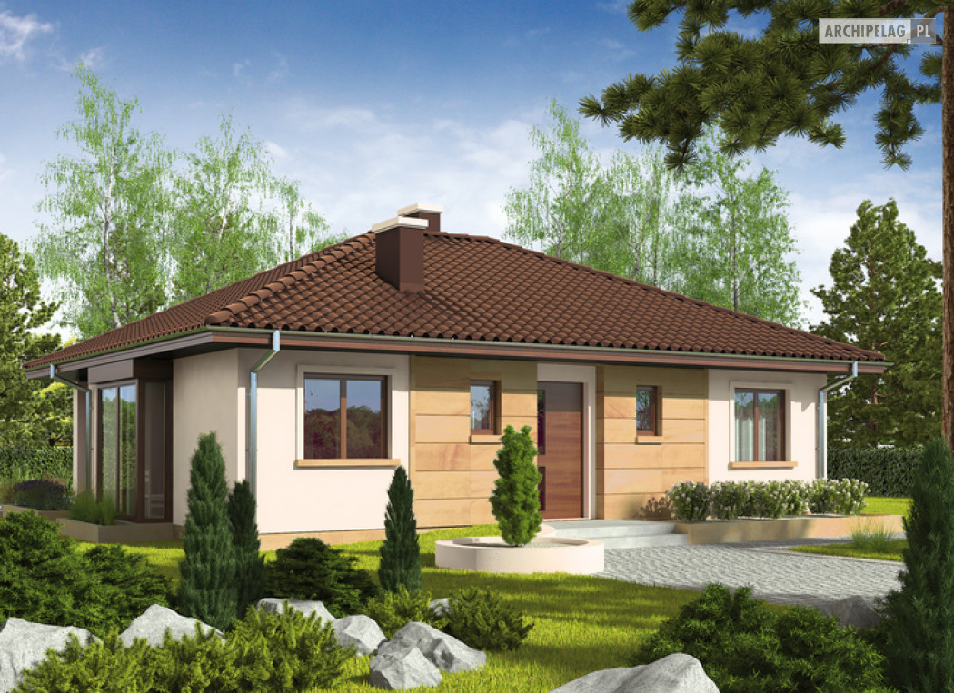 – wersja podstawowa, dom parterowy, 3 sypialnie, dach o kącie nachylenia 25°,