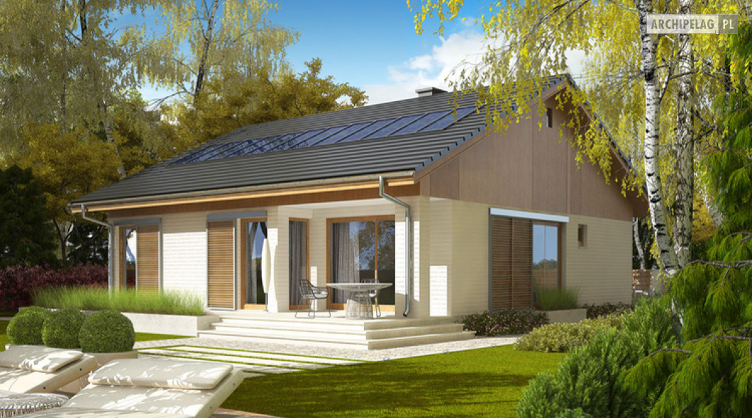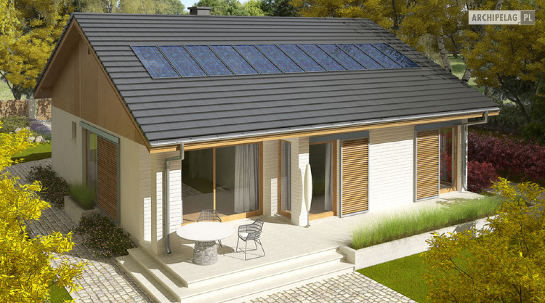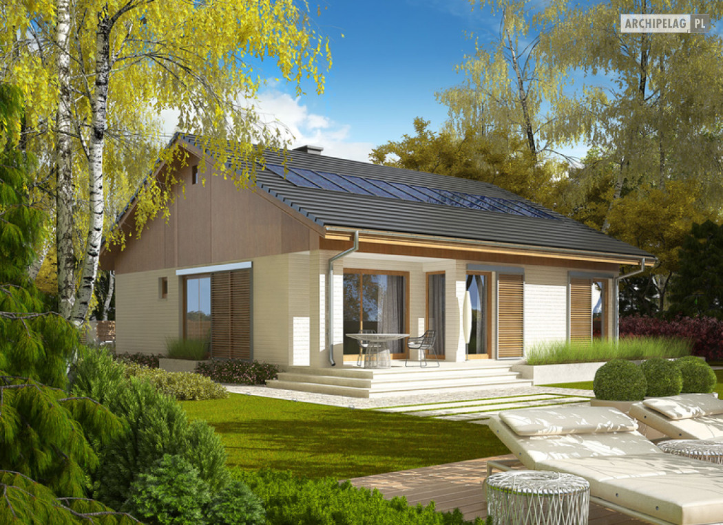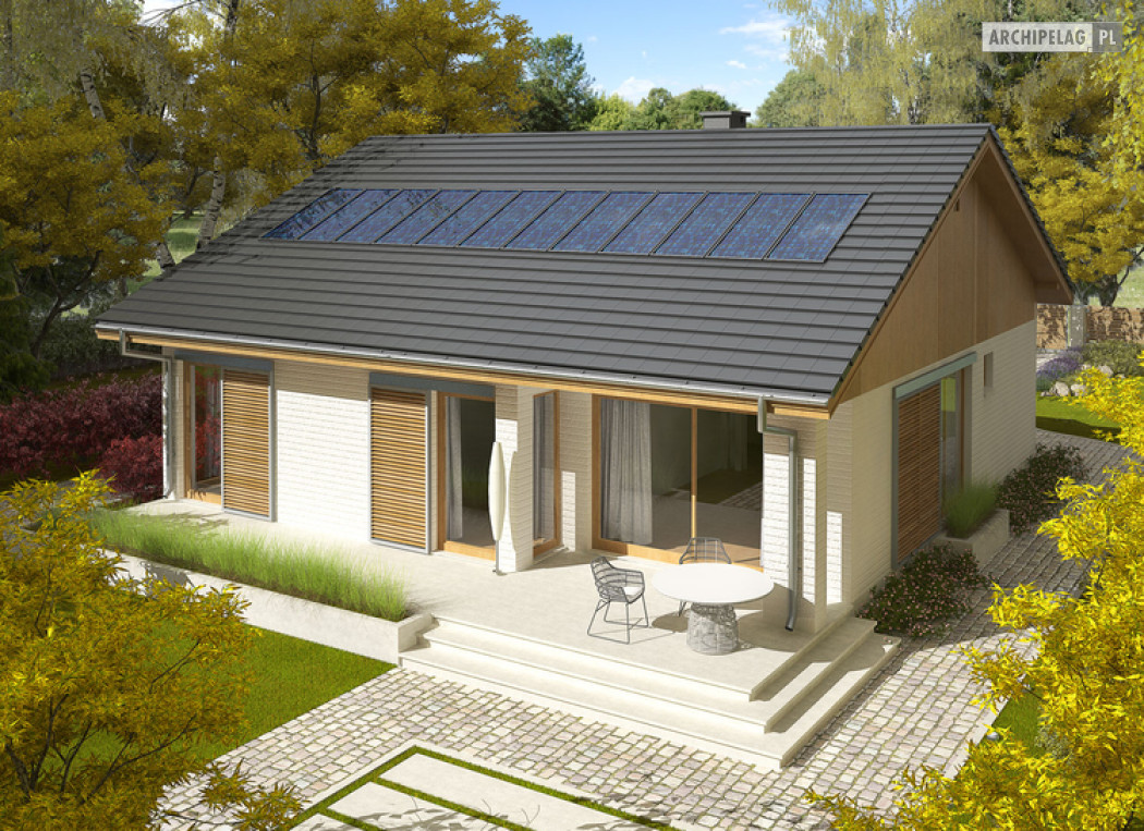 Przedstawione wizualizacje prezentują wersję domu z dachem o kącie nachylenia