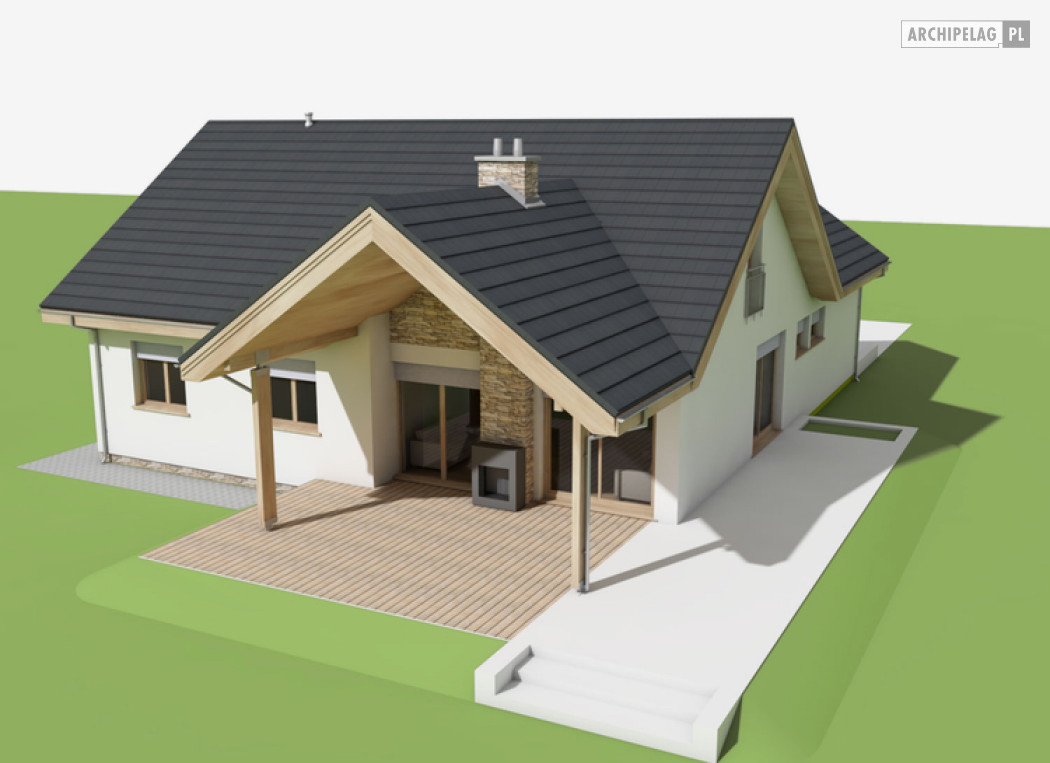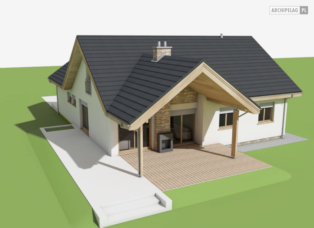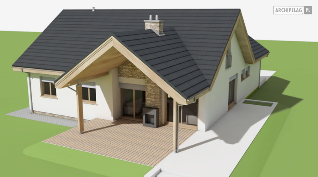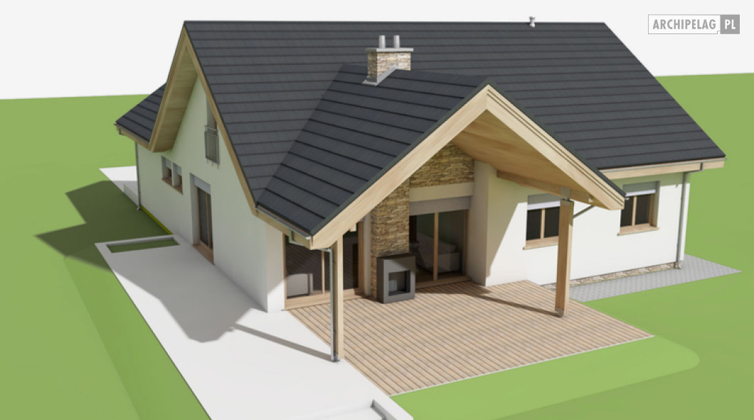 III G2, dom parterowy, 4 sypialnie, dach o kącie nachylenia 25°