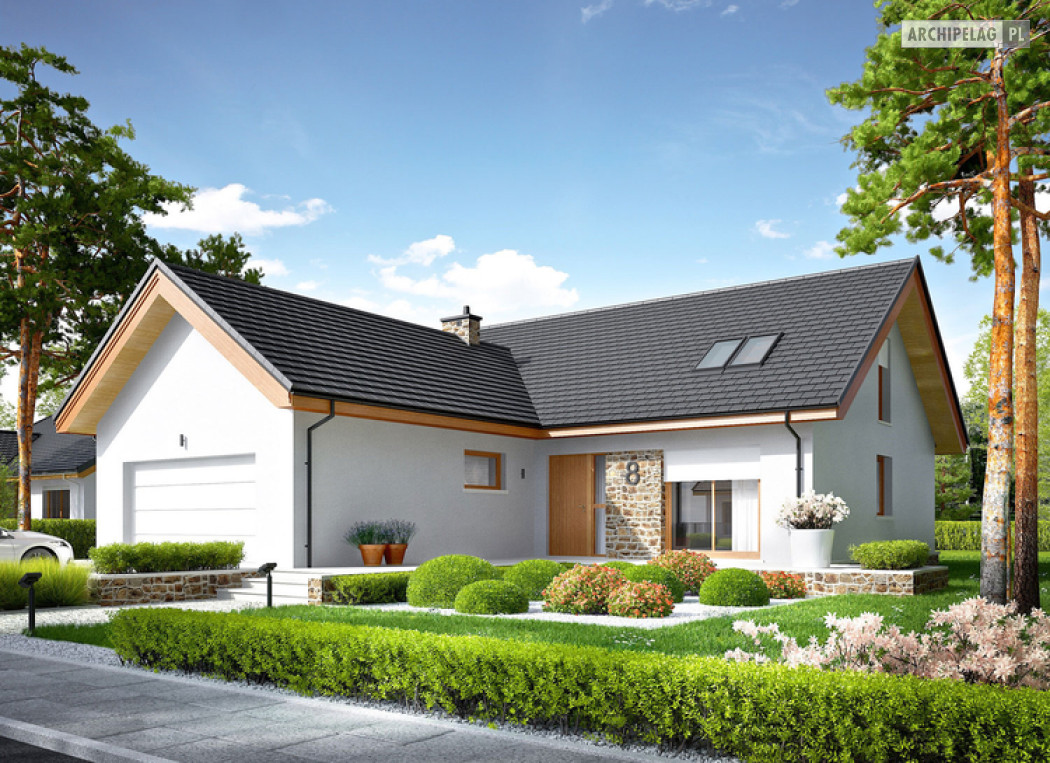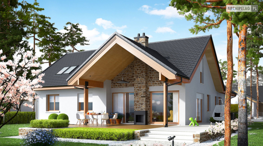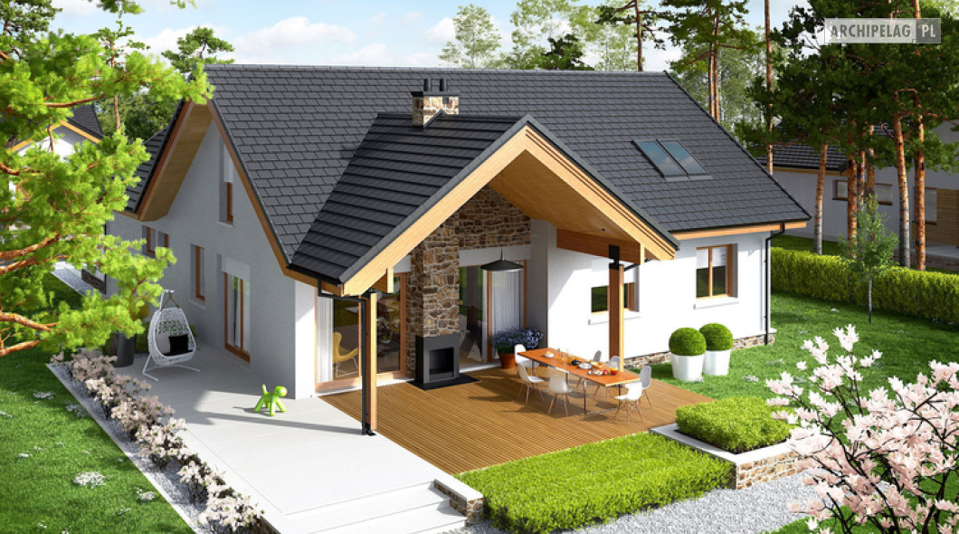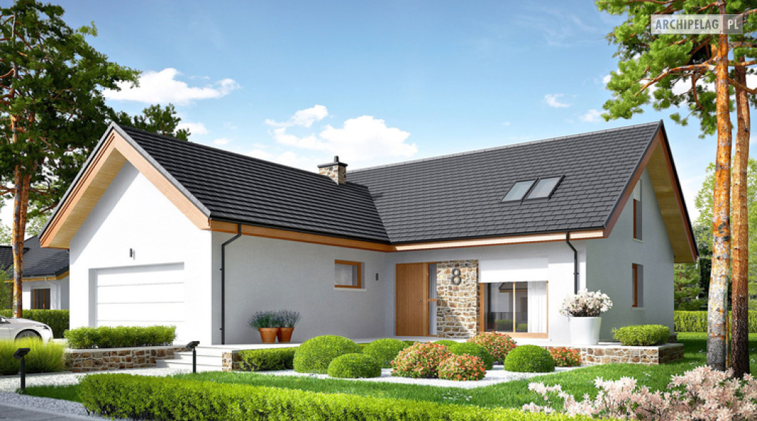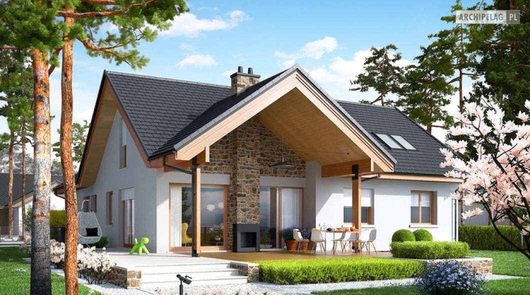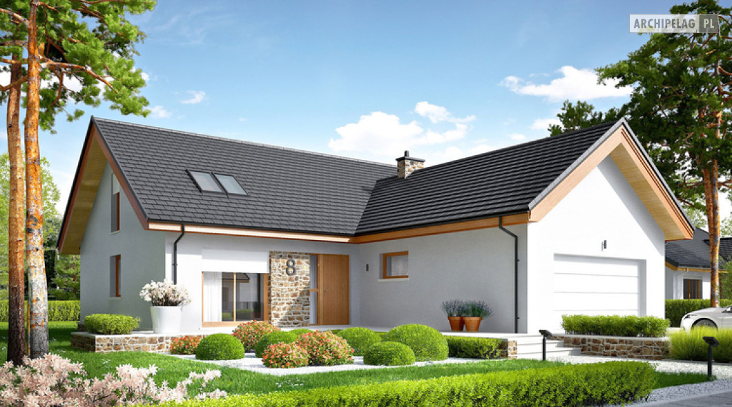 - Simon – dom z poddaszem do adaptacji, 3 sypialnie, dach o kącie