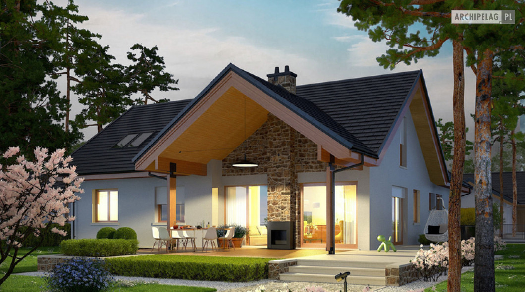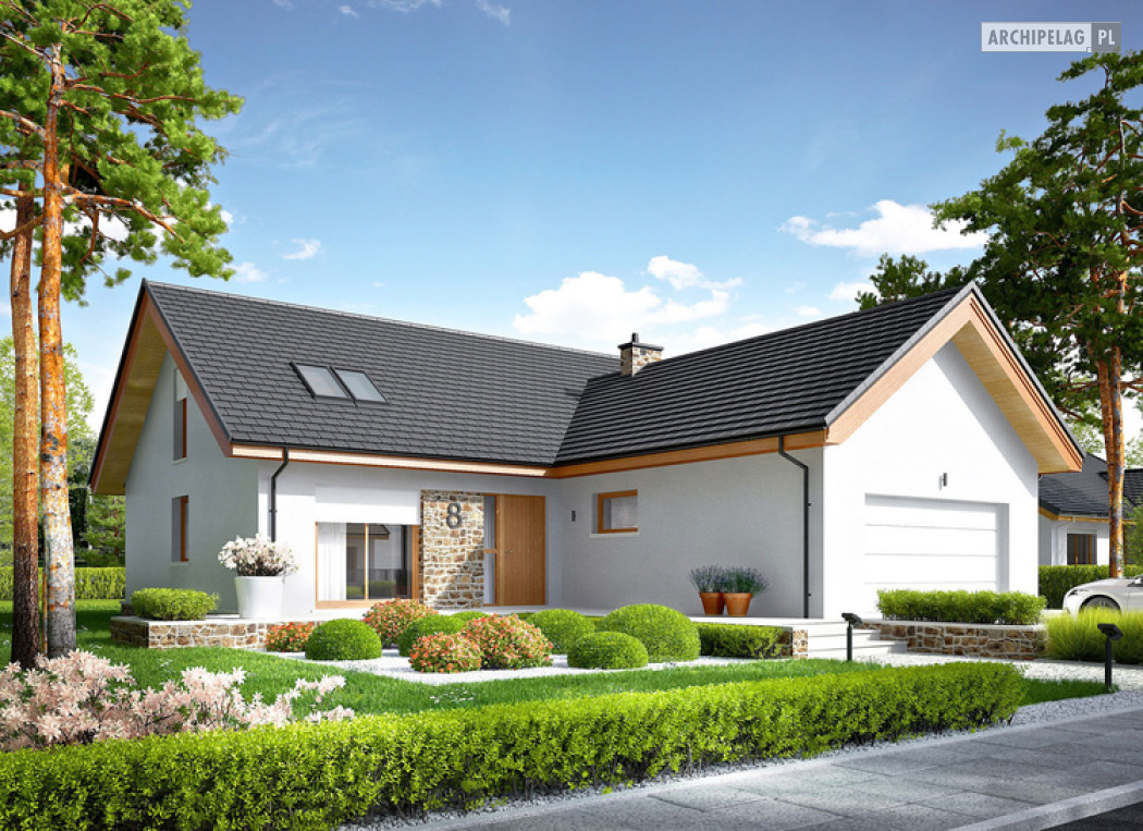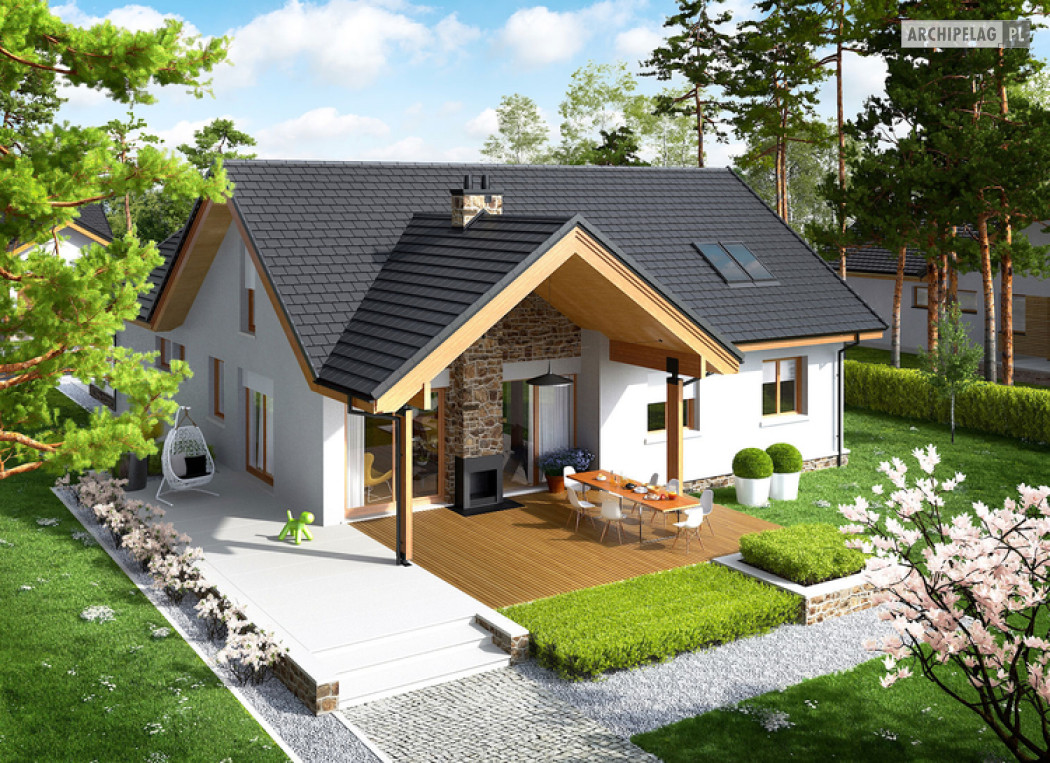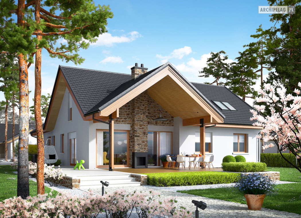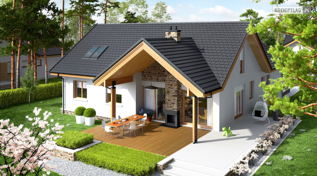 - Simon – dom z poddaszem do adaptacji, 3 sypialnie, dach o kącie