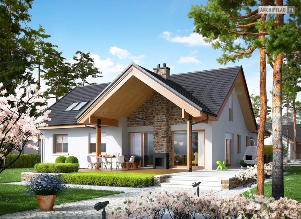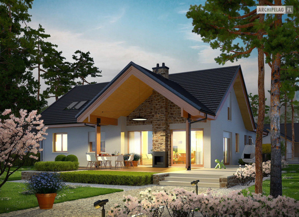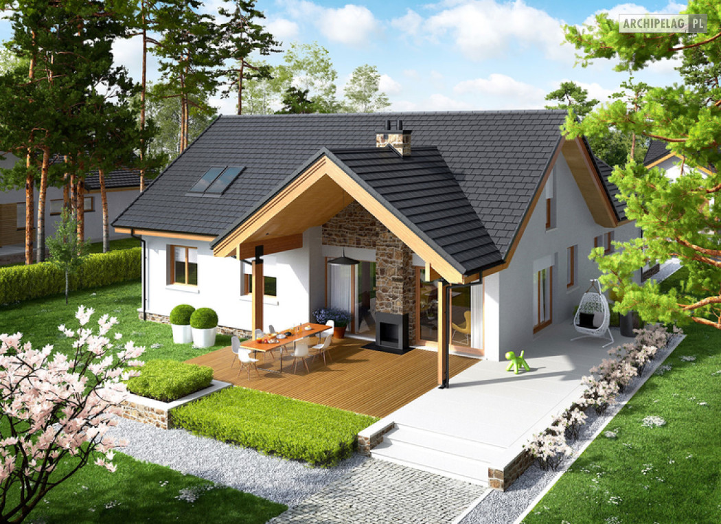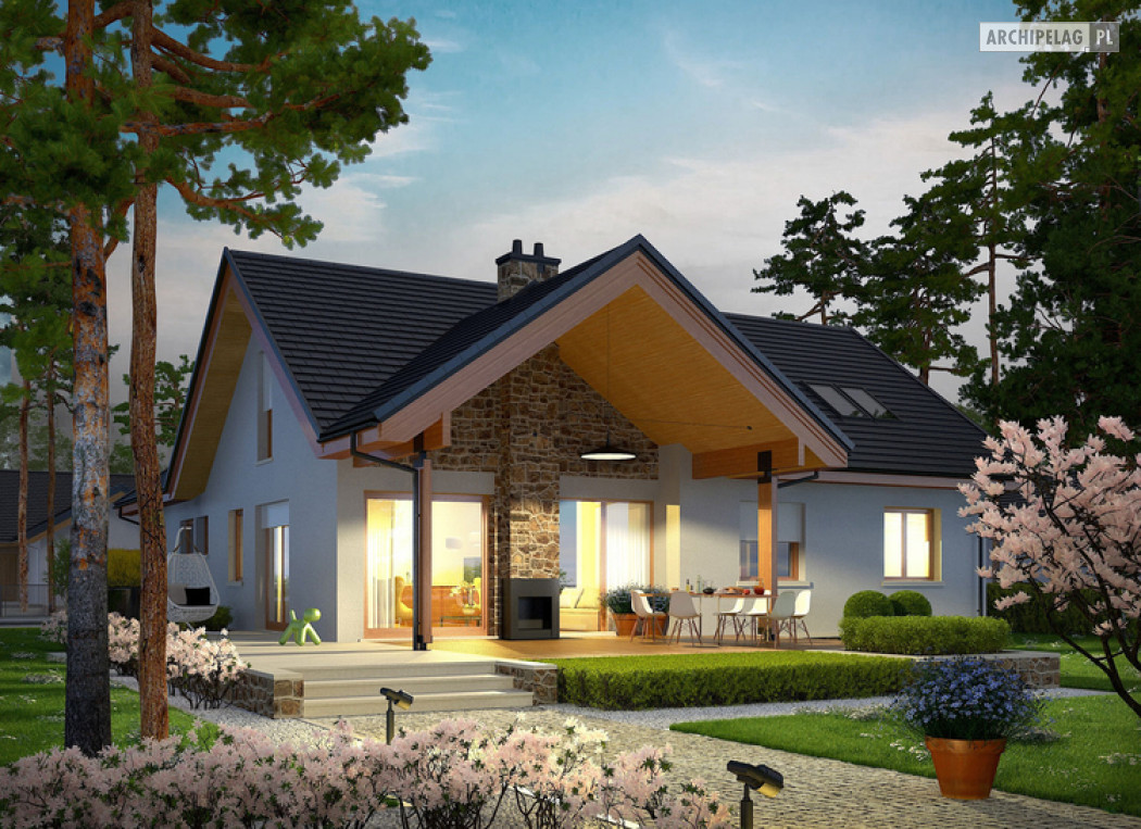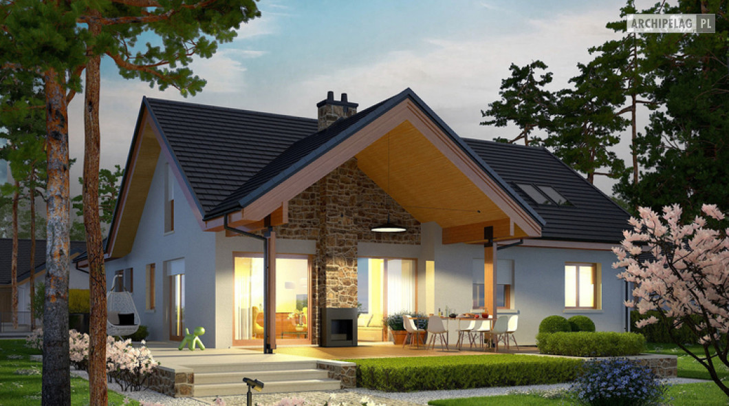 - Simon IV – dom parterowy, 3 sypialnie, dach o kącie nachylenia