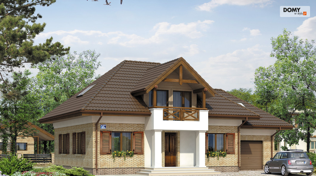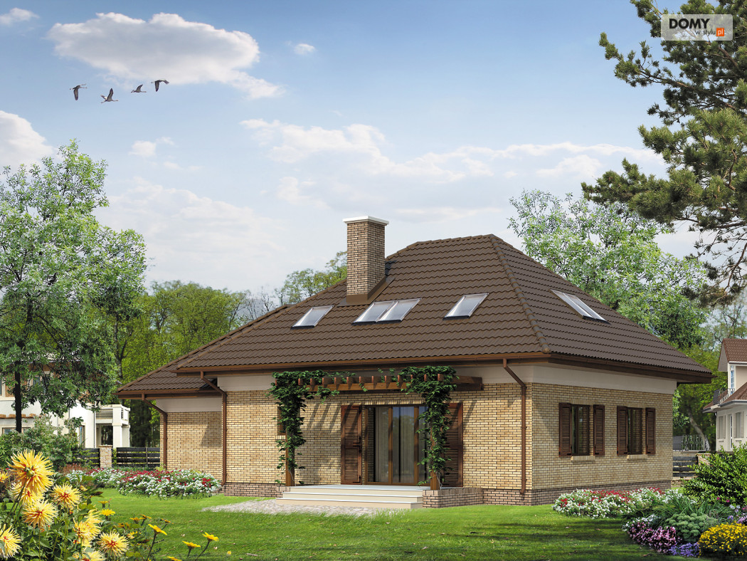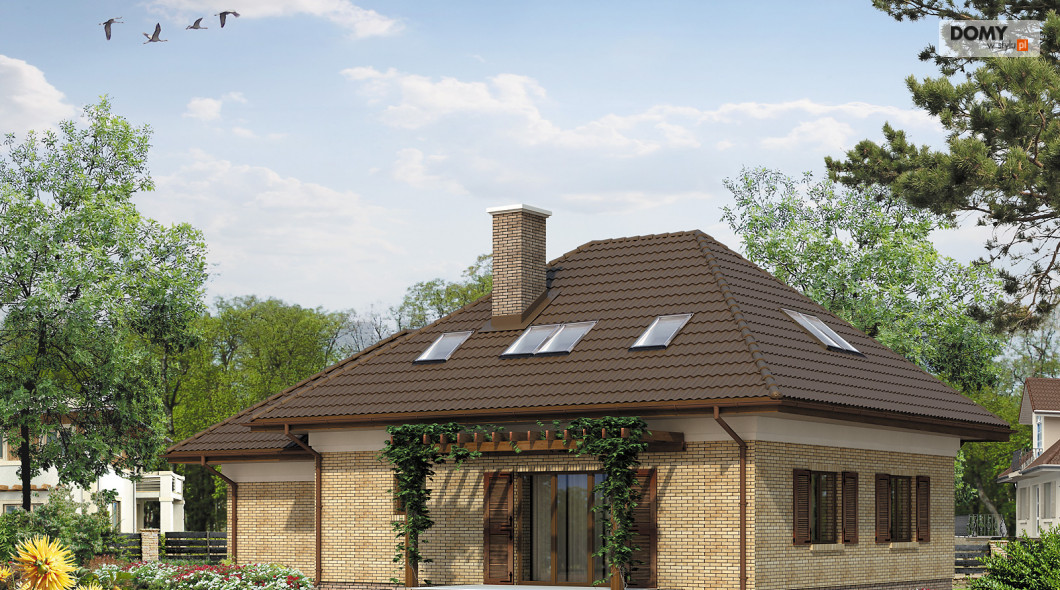 Dom jednorodzinny parterowy z użytkowym poddaszem, niepodpiwniczony. Przeznaczony dla 5 – 6-osobowej rodziny. Na parterze zaprojektowano dodatkowy pokój na gabinet lub dodatkową sypialnię. Dzięki zwartej bryle prosty w budowie.