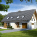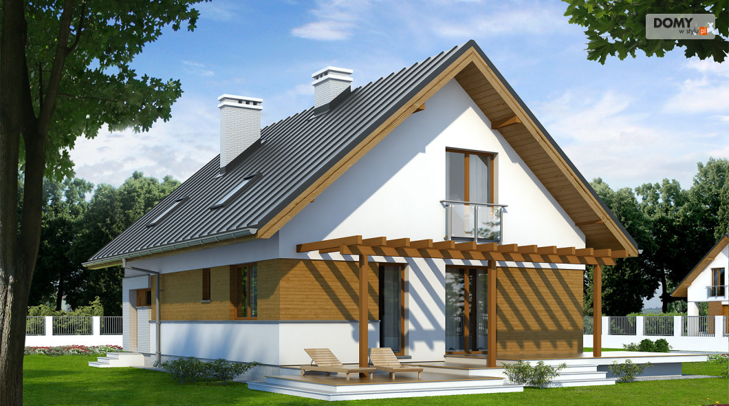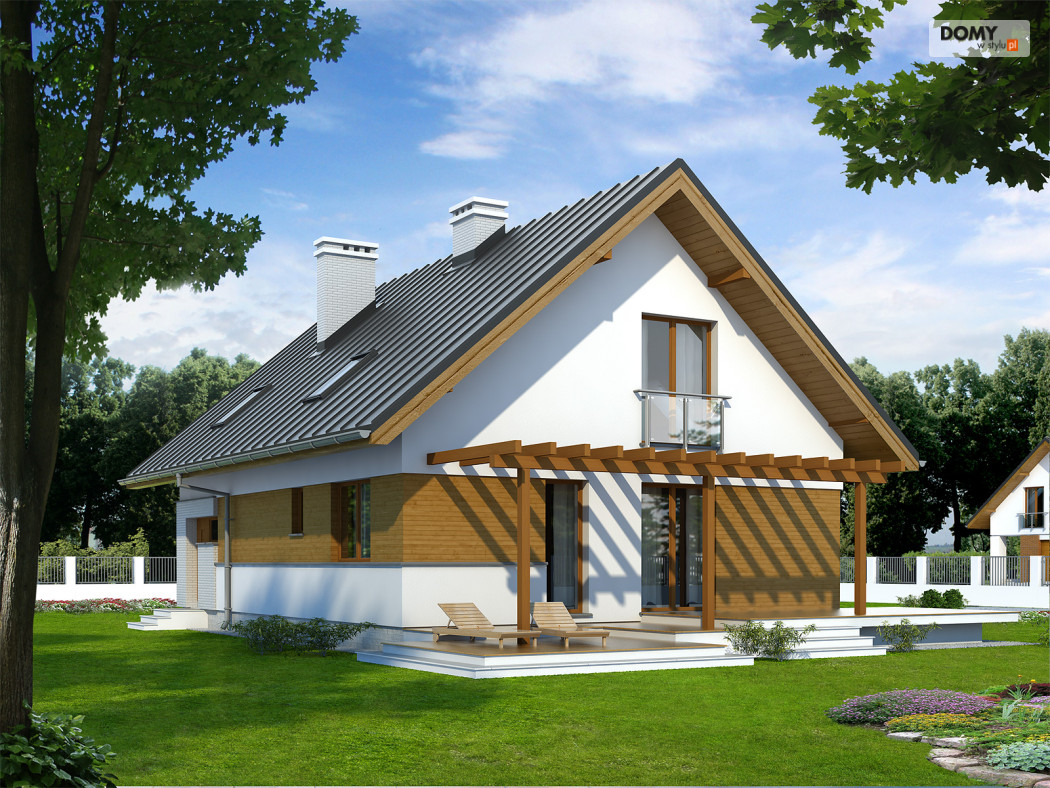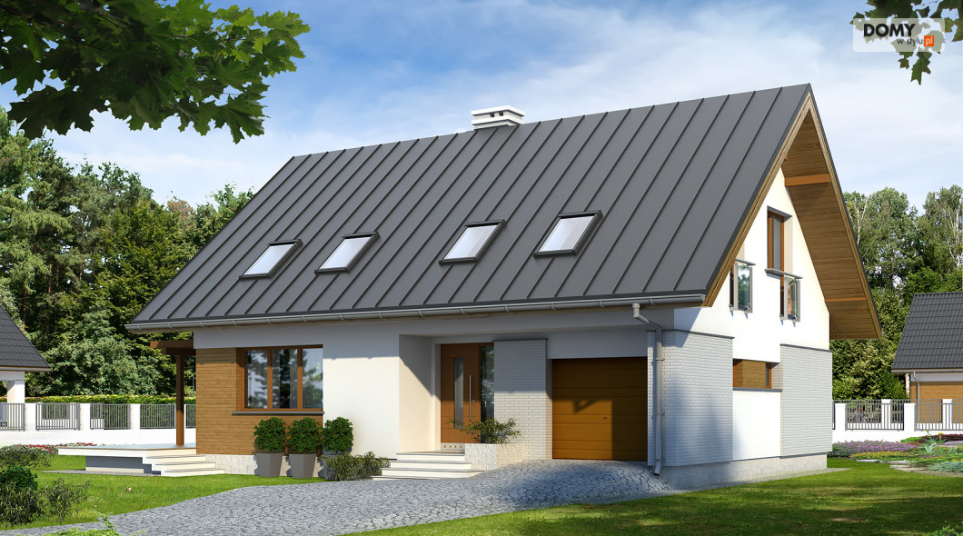 Dom parterowy z poddaszem użytkowym, niepodpiwniczony, przeznaczony dla 3 – 4-osobowej rodziny. Prosta, klasyczna bryła przykryta dwuspadowym dachem w połączeniu z nowoczesnymi elewacjami tworzy przyjemny klimat budynku. Wyraźny podział na część dzienną i nocną. Otwarta część dzienna z widokiem na przestronny taras na parterze są ogromnym atutem tego domu.
