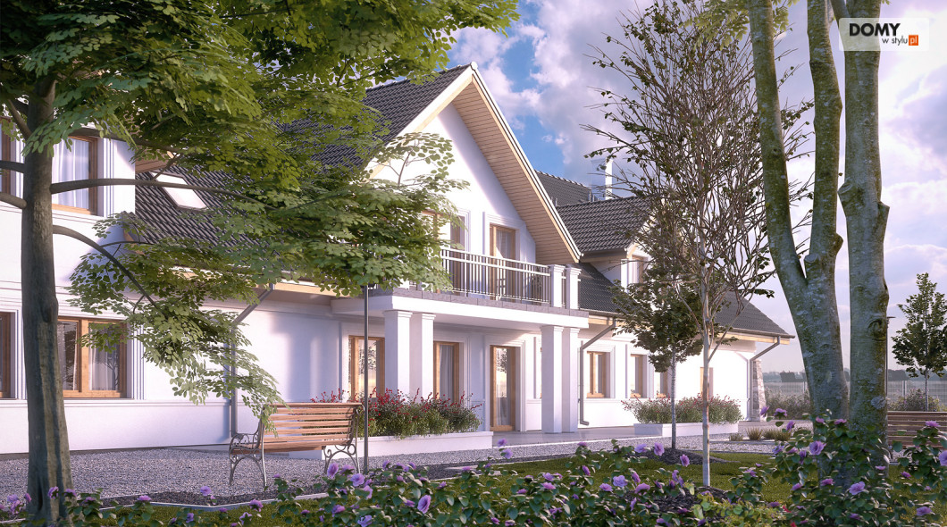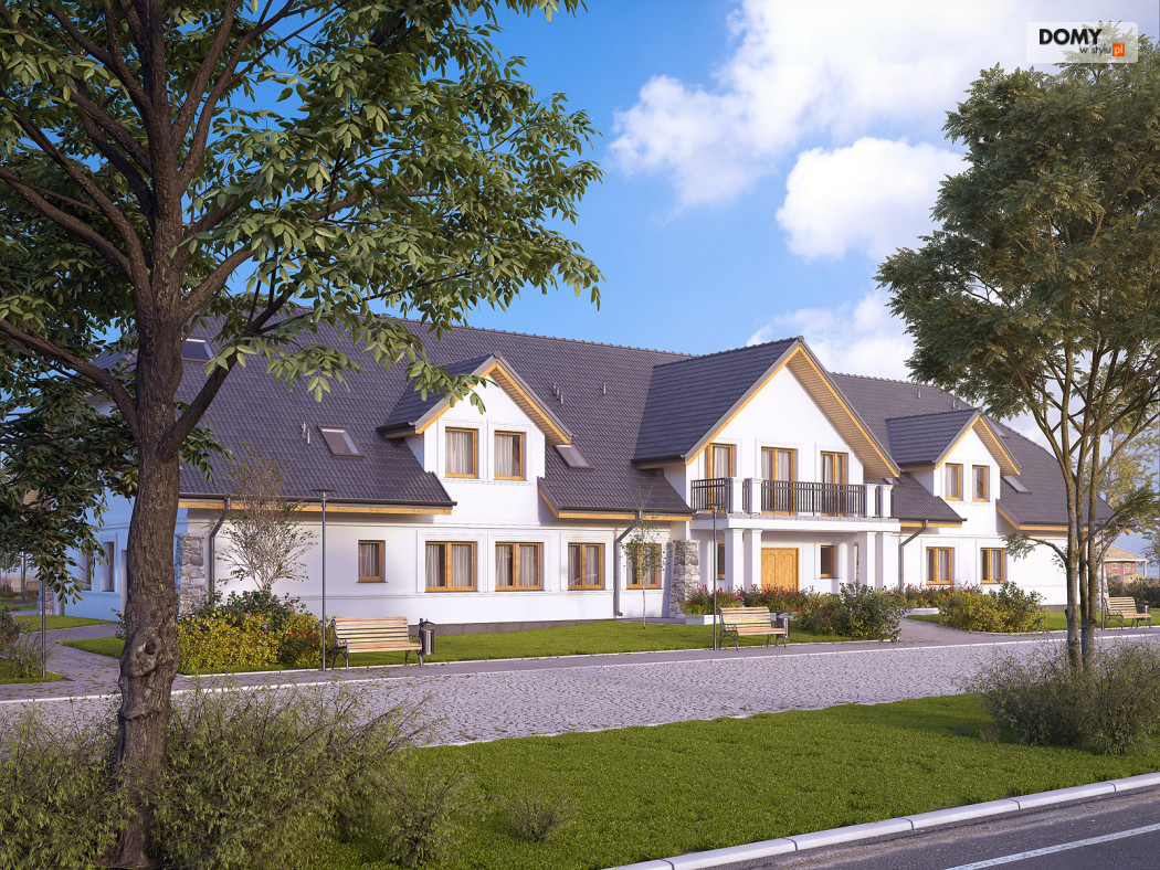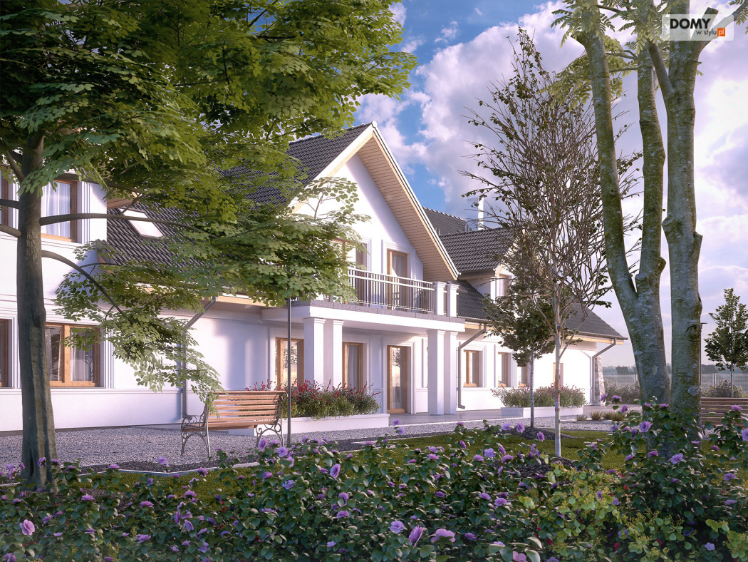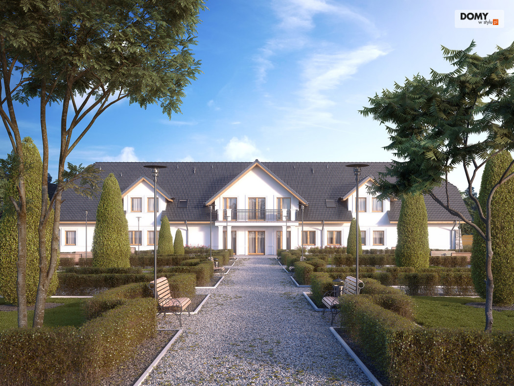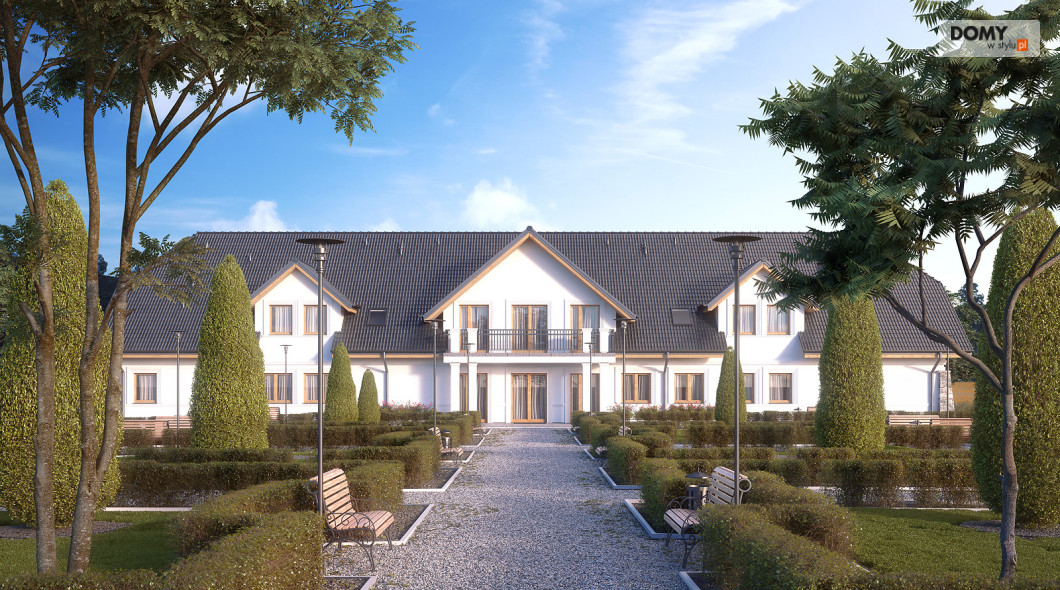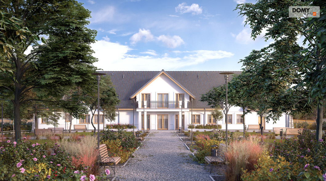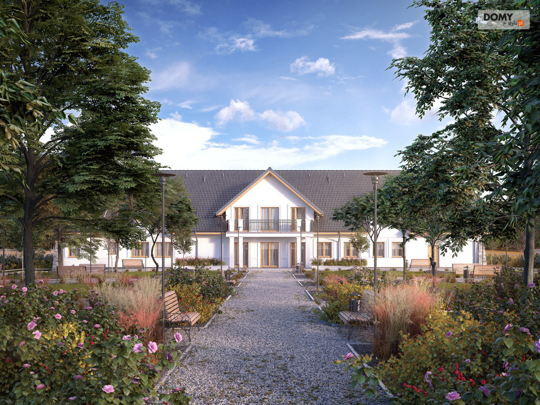Jest to projekt domu spokojnej starości, zaprojektowany na dwóch kondygnacjach, niepodpiwniczony. Budynek został zaprojektowany w stylu tradycyjnym, który nawiązuje do staropolskich dworków. Jasna elewacja została wykończona kamiennymi narożnikami i przykryta dwuspadowym dachem w ciemnym odcieniu szarości. Wejście główne do budynku zostało praktycznie zadaszone wspartym na kolumnach balkonem. W budynku zaprojektowano dwadzieścia pokoi mieszkalnych wraz z łazienkami, które zostały dostosowane do opieki nad osobami niepełnosprawnymi. Na parterze poza wydzieloną częścią mieszkalną znajduje się sala rekreacyjna z jadalnią, funkcjonalne zaplecze kuchenne oraz gabinety lekarskie i do rehabilitacji. W budynku przewidziano windę oraz dwie klatki schodowe po obu krańcach budynku. Na piętrze poza czternastoma pokojami mieszkalnymi przewidziano także również kaplicę z wyjściem na balkon, który stanowi jednocześnie zadaszenie tarasu od strony ogrodu. Budynek dzięki naturalnym materiałom wykończeniom, bez problemu wkomponuje w każdy krajobraz.