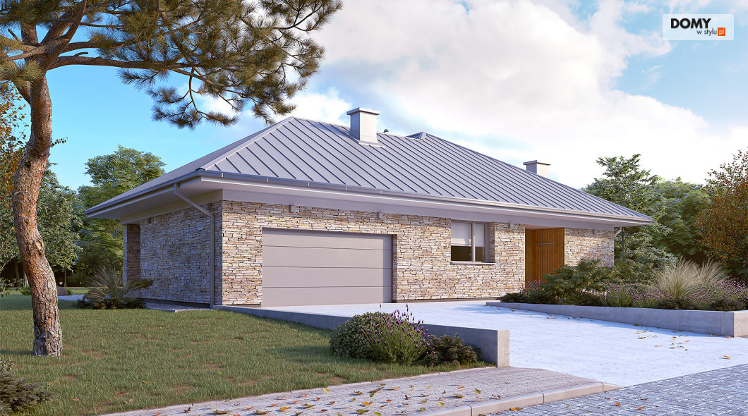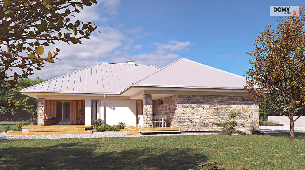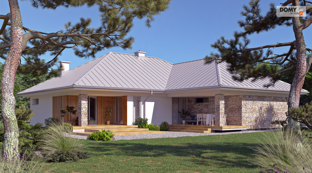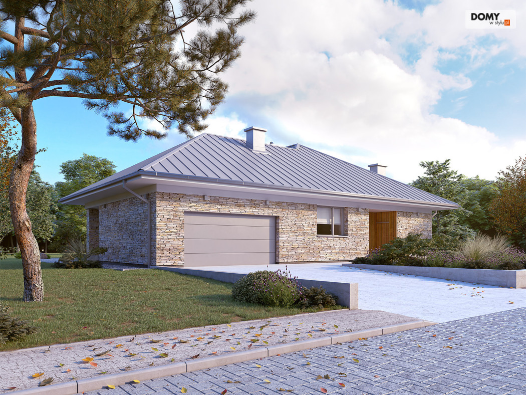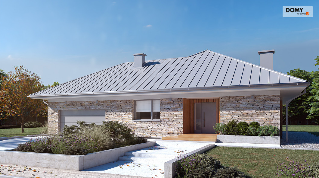Drugi projekt z rodziny Feniks został dopasowany do lokalizacji, w których warunki zabudowy pozwalają na dach o kącie nachylenia 30°. Otwarty układ funkcjonalny zapewnia komfortowe warunki dla 4-osobowej rodziny, przy czym zachowano czytelny podział na strefy - dzienną i prywatną. Główna sypialnia została rozszerzona o garderobę i prywatną łazienkę. Zadaszone tarasy umożliwiają planowanie wypoczynku na świeżym powietrzu niezależnie od warunków atmosferycznych. Duża kotłownia umożliwia zaprojektowanie dowolnego systemu ogrzewania, a w razie potrzeby może służyć również jako dodatkowa przestrzeń gospodarczo-magazynowa. Uzupełnieniem programu funkcjonalnego jest 2-stanowiskowy garaż.