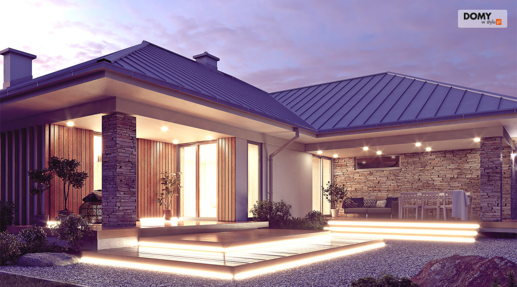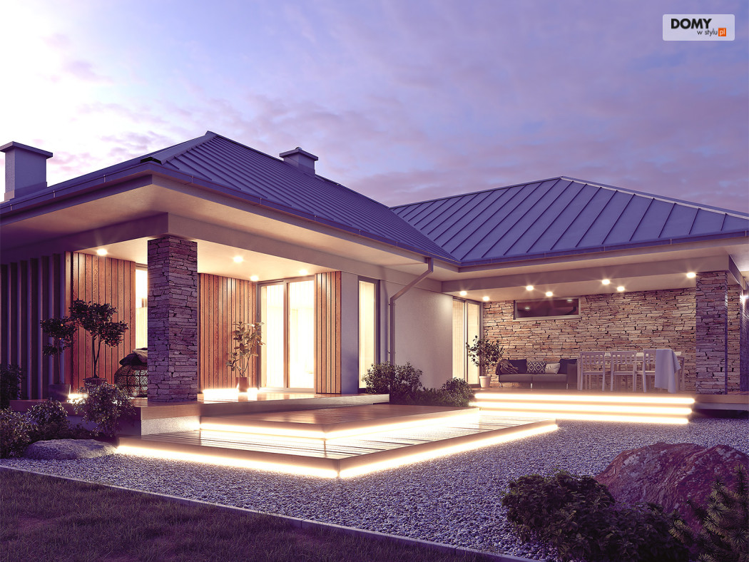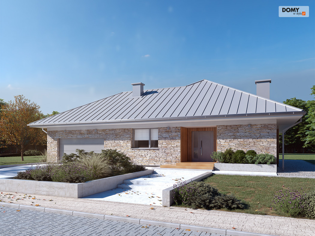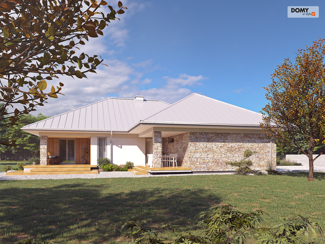 Drugi projekt z rodziny Feniks został dopasowany do lokalizacji, w których warunki zabudowy pozwalają na dach o kącie nachylenia 30°. Otwarty układ funkcjonalny zapewnia komfortowe warunki dla 4-osobowej rodziny, przy czym zachowano czytelny podział na strefy - dzienną i prywatną. Główna sypialnia została rozszerzona o garderobę i prywatną łazienkę. Zadaszone tarasy umożliwiają planowanie wypoczynku na świeżym powietrzu niezależnie od warunków atmosferycznych. Duża kotłownia umożliwia zaprojektowanie dowolnego systemu ogrzewania, a w razie potrzeby może służyć również jako dodatkowa przestrzeń gospodarczo-magazynowa. Uzupełnieniem programu funkcjonalnego jest 2-stanowiskowy garaż.