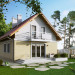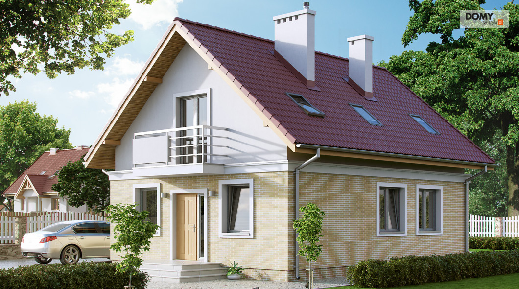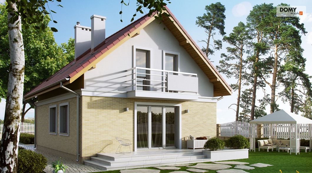 Niewielki dom o prostej bryle, niepodpiwniczony. Budynek posiada trzy sypialnie na poddaszu oraz gabinet na parterze.