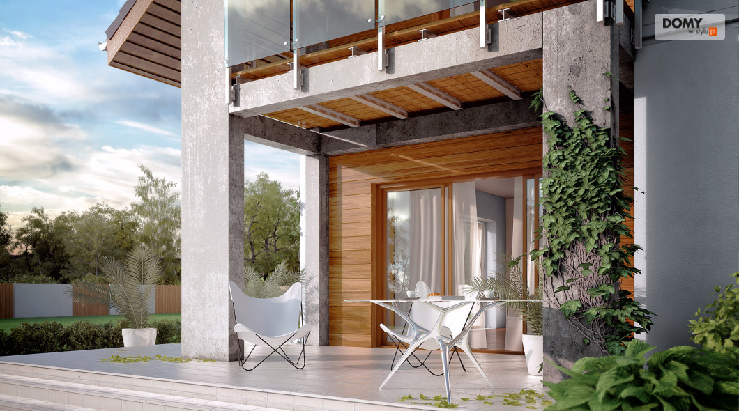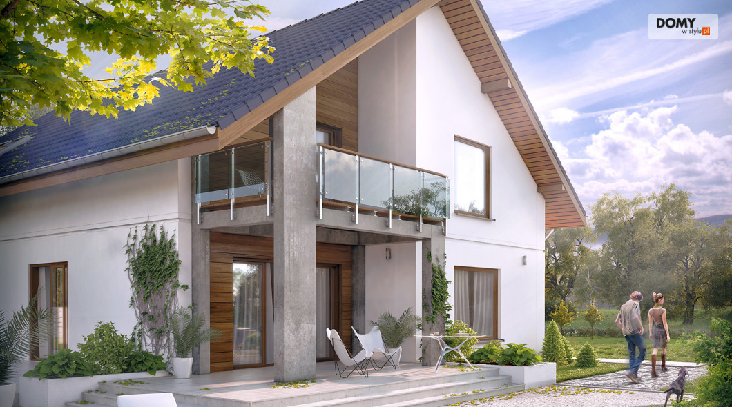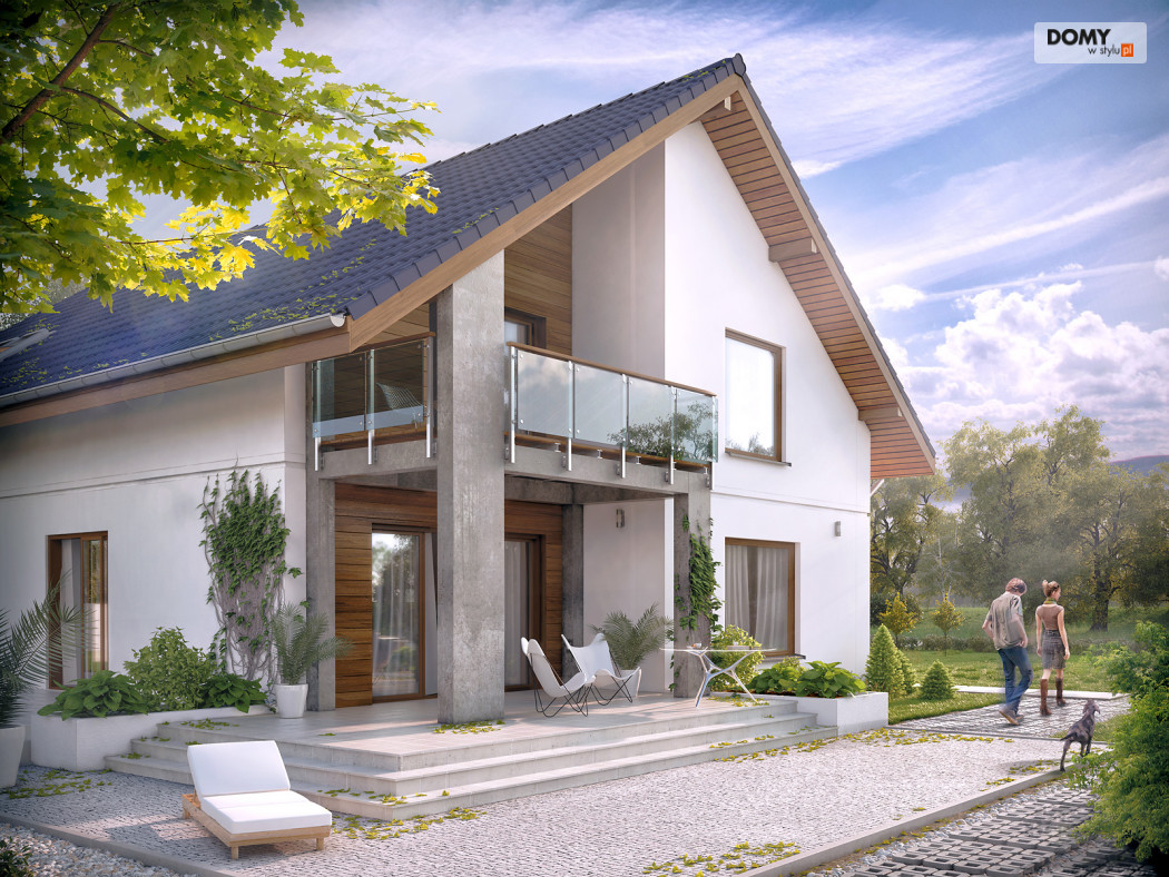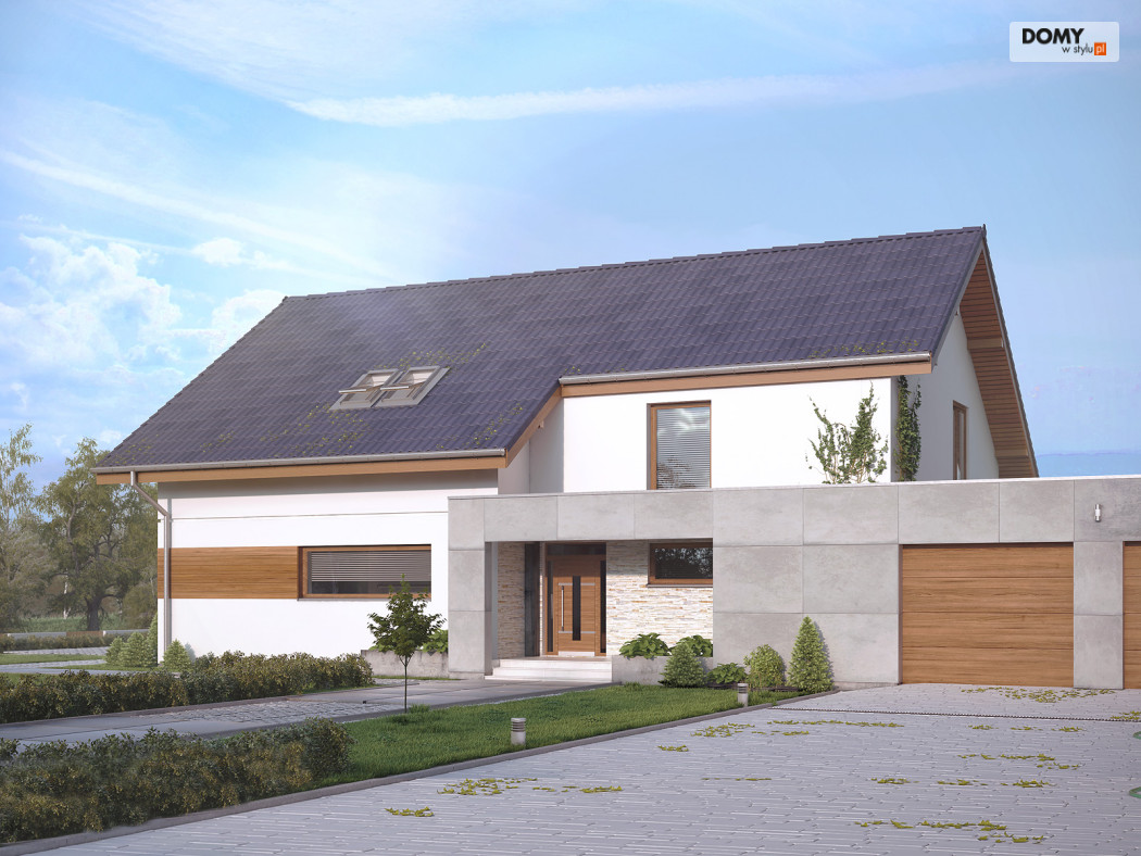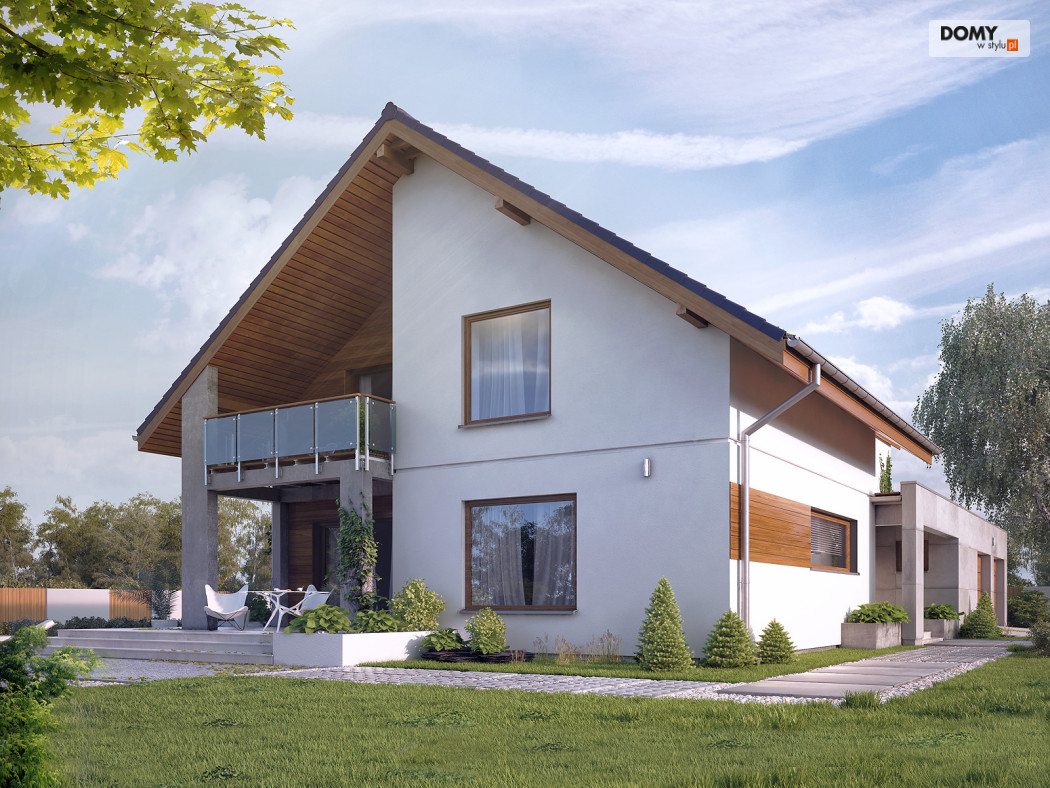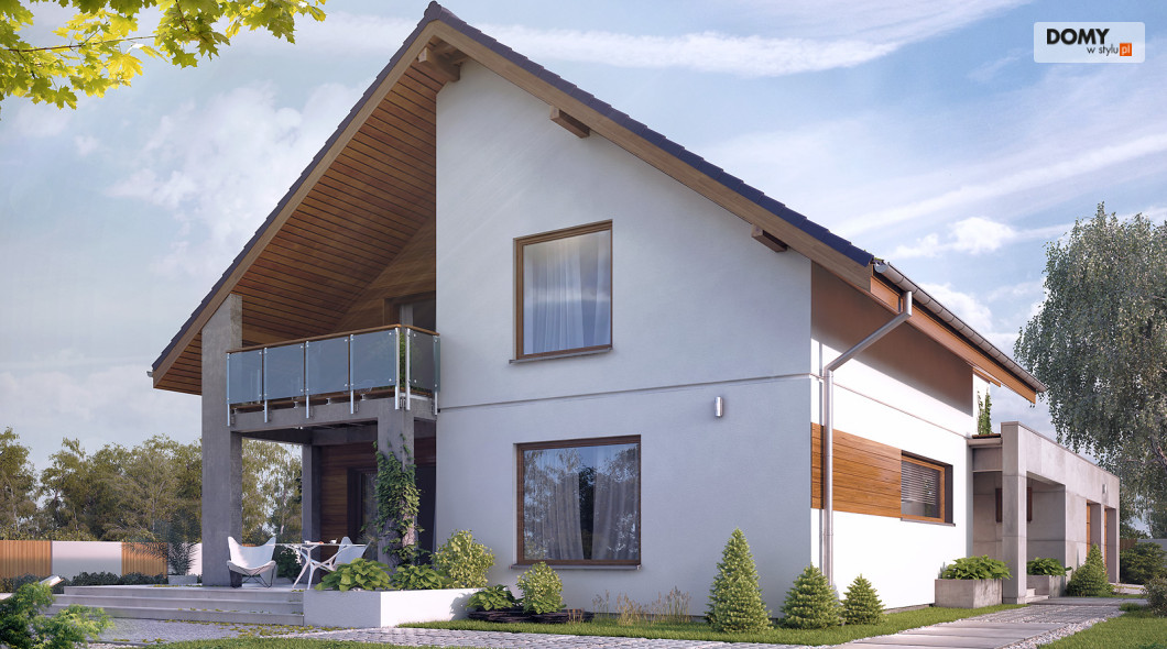 Onyks 4 to nowoczesny dom jednorodzinny z użytkowym poddaszem idealny dla 4-osobowej rodziny. Bryła budynku łączy w sobie cechy zarówno domu nowoczesnego oraz tradycyjnego. Dwuspadowy dach w połączeniu z nowoczesnym wykończeniem elewacji frontowej tworzy intrygujący efekt końcowy. Na parterze oprócz kuchni z jadalnią oraz salonu, znajduje się apartament gospodarzy z własną łazienką oraz garderobą. Na poddaszu dodatkowo zaprojektowano dwie sypialnie, łazienkę oraz kącik rekreacyjny idealny do zagłębienia się w lekturze. Niewątpliwym atutem projektu jest dwustanowiskowy garaż oraz rozległy taras zlokalizowany tuż nad nim.