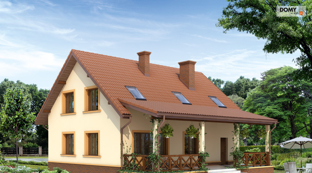 Jednorodzinny dom mieszkalny, parterowy z użytkowym poddaszem. Prosta klasyczna bryła. Przejrzysty układ funkcjonalny, z wyraźnym podziałem na część dzienną i gospodarczą zlokalizowaną na parterze oraz część nocną na poddaszu. Pełny program funkcjonalny dla 4-osobowej rodziny.
