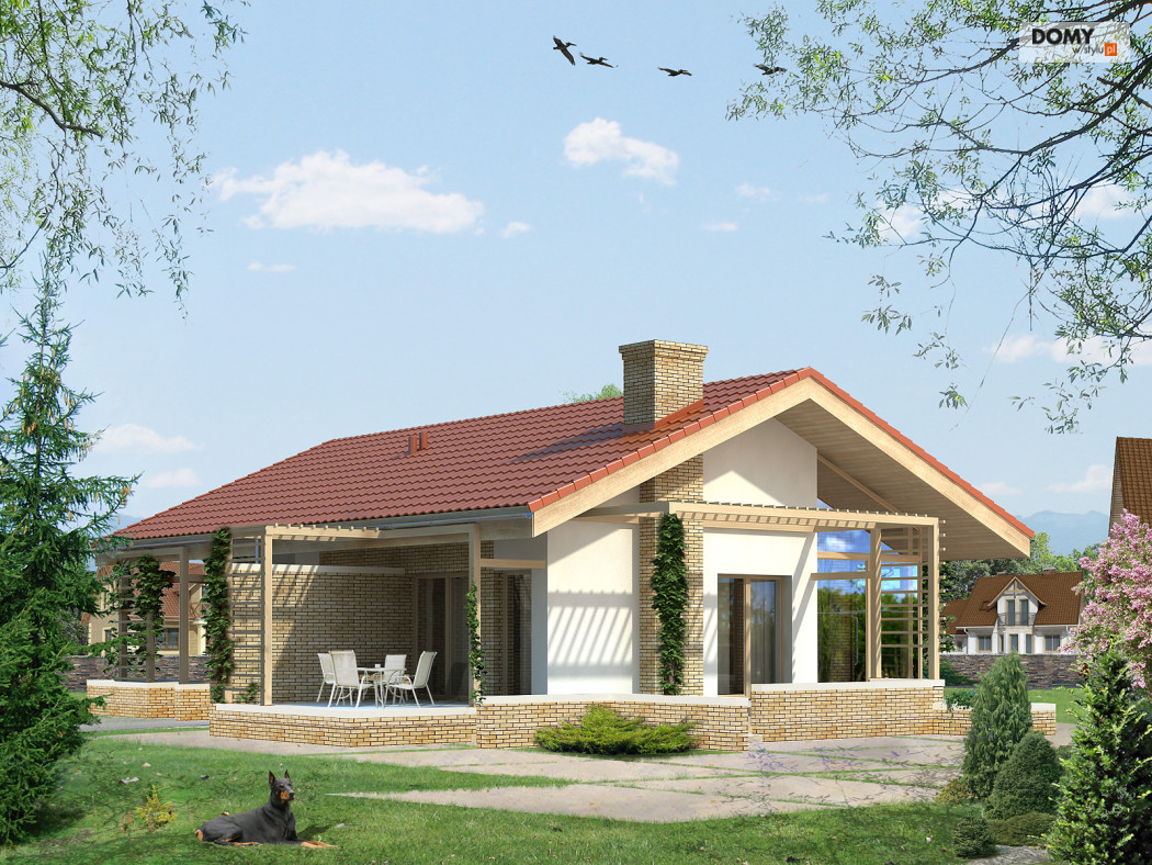 Parterowy dom jednorodzinny o czystym układzie funkcjonalnym z wyraźnym podziałem na część dzienną i nocną. Przeznaczony dla 4-osobowej rodziny. Duża część dzienna wzbogacona doprojektowaną oranżerią, otwarta na otaczającą przestrzeń. Głównym założeniem projektu było połączenie i przenikanie się wnętrza domu z otoczeniem poprzez zaprojektowanie szeregu murków i pergoli. Dom zaprojektowany w technologii Multi-Comfort z zastosowaniem produktów marki Saint-Gobain łączy unikalne właściwości produktów z rozsądną ceną. Standard Multi-Comfort oznacza szereg korzyści, takich jak: niskie koszty ogrzewania, komfort termiczny, akustyczny, dobra jakość powierza, bezpieczeństwo przeciwpożarowe (klasa A1). Wszystko to jest możliwe za sprawą zastosowanych w projekcie sprawdzonych materiałów znanych i cenionych marek: Isover, Weber, Rigips, Glassolutions. Produkty Grupy Saint-Gobain są wytwarzane z naturalnych materiałów i posiadają deklaracje środowiskowe. W procesie eksploatacji budynki zaprojektowane w technologii Multi-Comfort posiadają niewielkie zapotrzebowanie na energię pierwotną. Więcej informacji o domach w standardzie Multi-Comfort: www.multi-comfort.pl