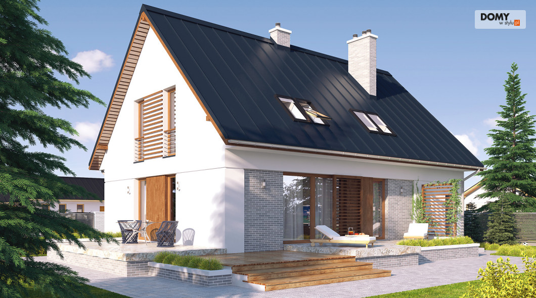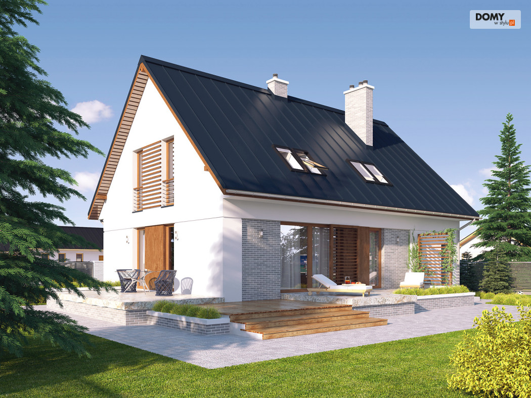 Calineczka 3 to jednorodzinny budynek mieszkalny o optymalnym programie funkcjonalnym dla 4 - 5-osobowej rodziny. W części reprezentacyjnej na parterze zaprojektowano salon z jadalnią oraz kuchnię wzbogaconą o spiżarnię. Oprócz tych pomieszczeń na parterze przewidziano również gabinet, łazienkę, kotłownię oraz garaż. Na poddaszu zaprojektowano cztery sypialnie, w tym jedną z garderobą, oraz łazienkę. O atrakcyjności tego domu świadczy funkcjonalny układ pomieszczeń połączony ze współczesnymi elewacjami i eleganckim detalem.