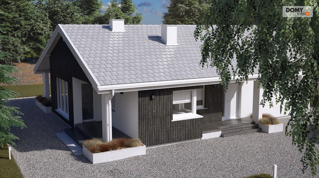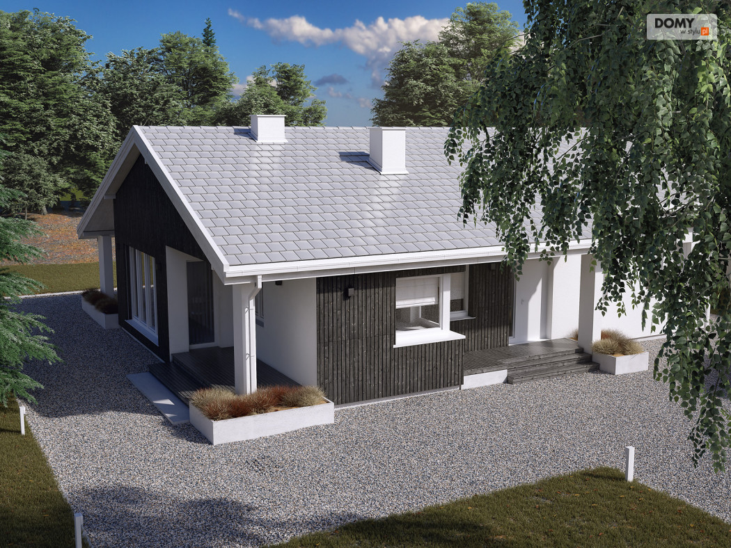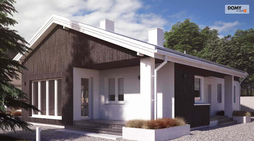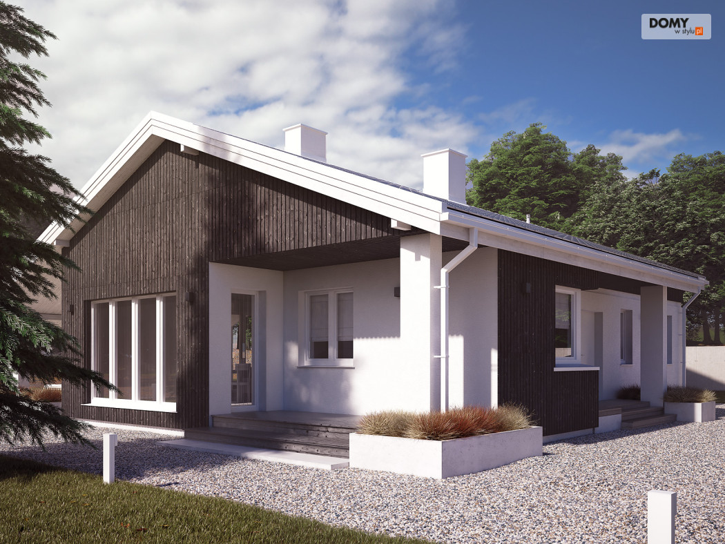 Projekt Malmo jest propozycją parterowego domu mieszkalnego, przeznaczonego dla 3-4 osobowej rodziny.  Program funkcjonalny domu składa się z obszernej sypialni rodziców, dwóch mniejszych pokoi dla dzieci, łazienki, kotłowni, wiatrołapu, kuchni ze spiżarnią oraz salonu z kominkiem i przestrzenią na duży stół jadalny.  Obszerne przeszklenia umożliwiają dodatkowe doświetlenie części dziennej, nadając jej wnętrzu przestronny, współczesny charakter.  Asymetryczna bryła budynku przykryta jest dwuspadowym dachem obejmującym również tarasy dostępne z salonu.  Pokrycie dachu szarą płaską dachówką, oraz rozwiązania materiałowe na elewacji dodają projektowi nowoczesnego wyrazu.