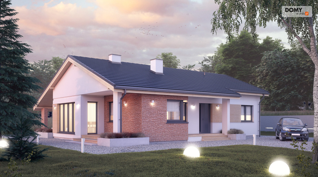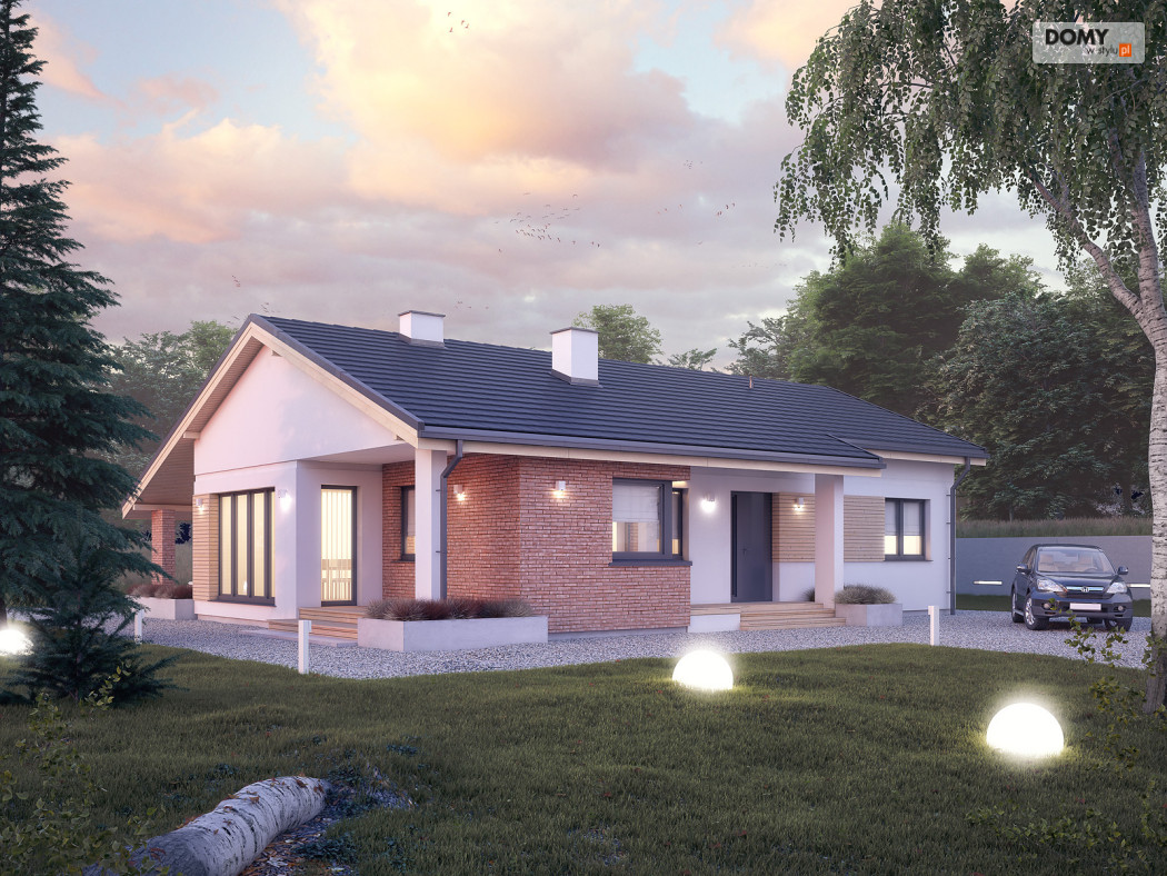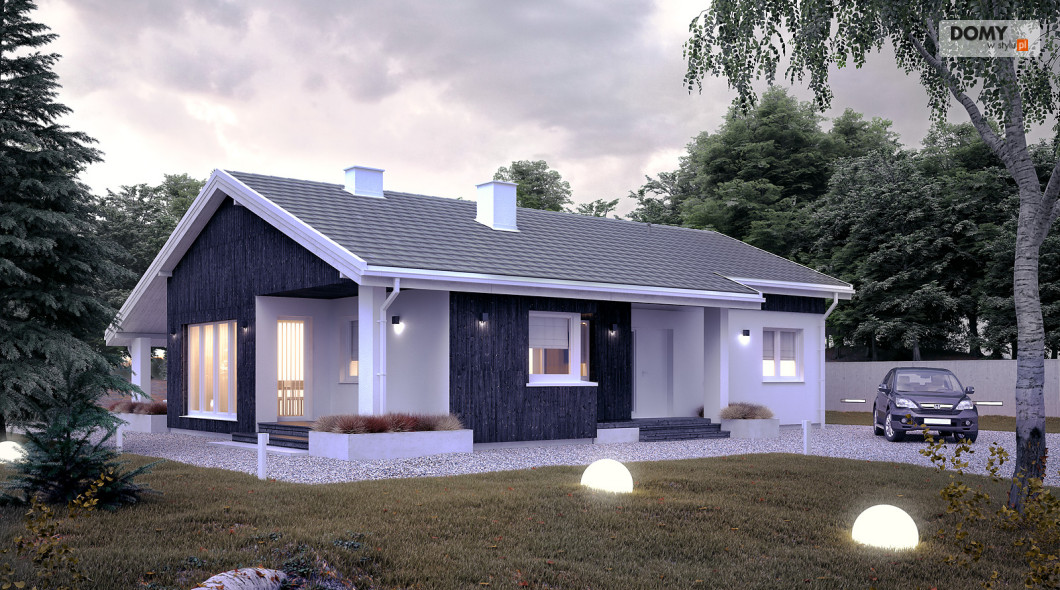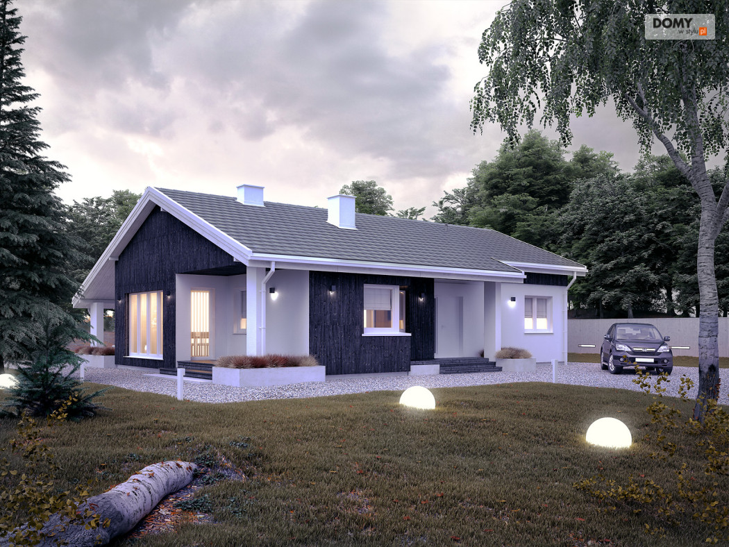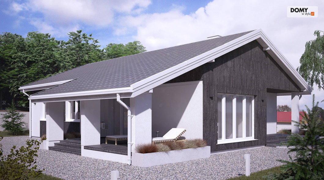 Projekt Malmo jest propozycją parterowego domu mieszkalnego, przeznaczonego dla 3-4 osobowej rodziny.  Program funkcjonalny domu składa się z obszernej sypialni rodziców, dwóch mniejszych pokoi dla dzieci, łazienki, kotłowni, wiatrołapu, kuchni ze spiżarnią oraz salonu z kominkiem i przestrzenią na duży stół jadalny.  Obszerne przeszklenia umożliwiają dodatkowe doświetlenie części dziennej, nadając jej wnętrzu przestronny, współczesny charakter.  Asymetryczna bryła budynku przykryta jest dwuspadowym dachem obejmującym również tarasy dostępne z salonu.  Pokrycie dachu szarą płaską dachówką, oraz rozwiązania materiałowe na elewacji dodają projektowi nowoczesnego wyrazu.