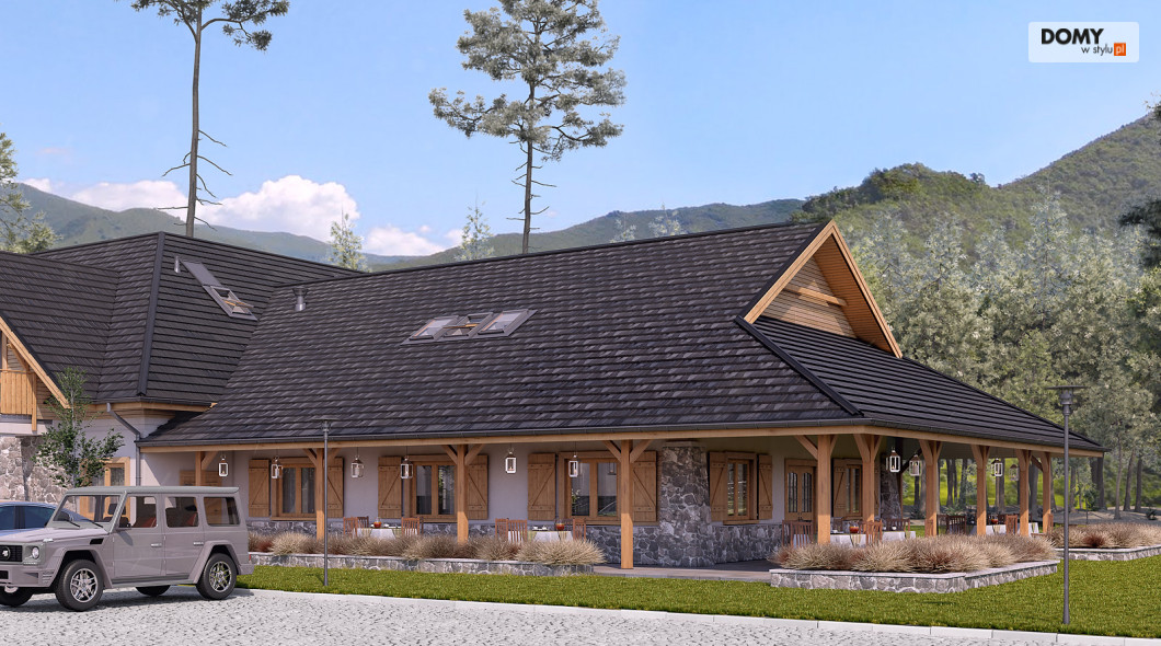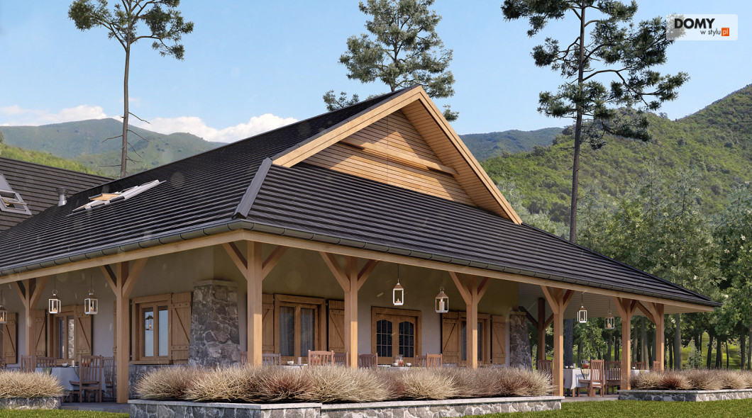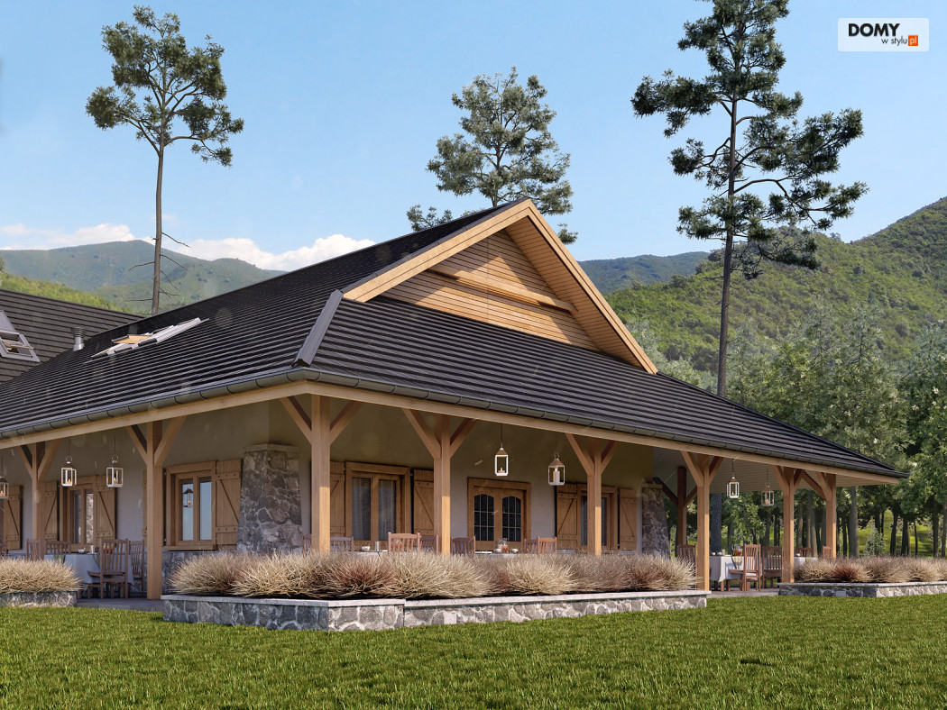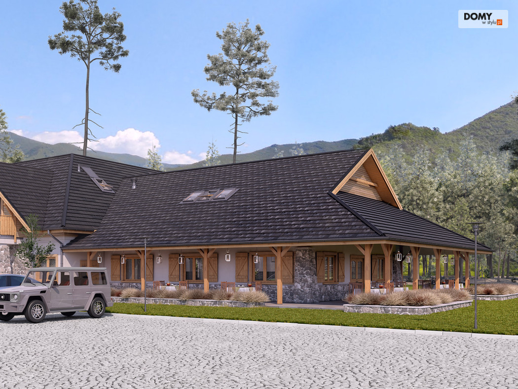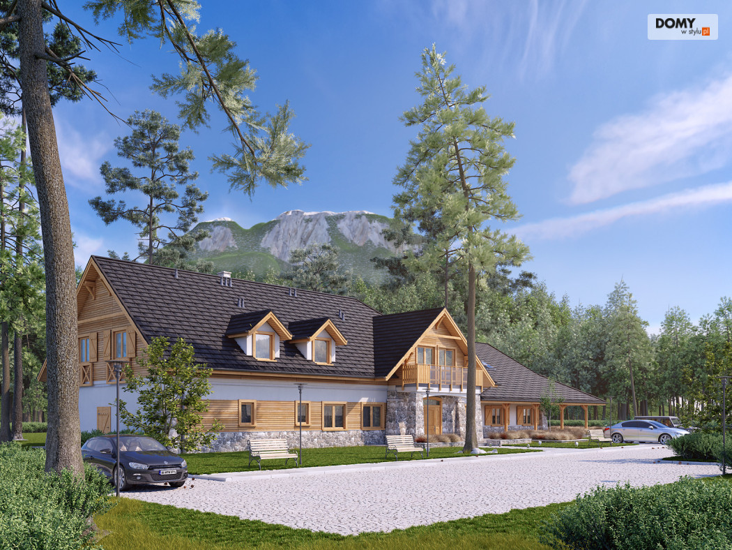 Budynek pensjonatu z dwoma salami bankietowymi przeznaczonymi na ok 120 osób.  Na poddaszu zaprojektowano 12 (2-3 osobowych) pokoi przeznaczonych dla 24-26 osób.  Obiekt może również pełnić funkcję konferencyjną dzięki zaprojektowanej na poddaszu sali konferencyjnej na około 30 osób.  W ramach adaptacji projektu można przeznaczyć przestrzeń sali konferencyjnej na dodatkowe pokoje mieszkalne.  W obiekcie przewidziano pełne zaplecze kuchenne i węzły sanitarne.  W podpiwniczeniu znajduje się cześć techniczna oraz zaplecze socjalne.