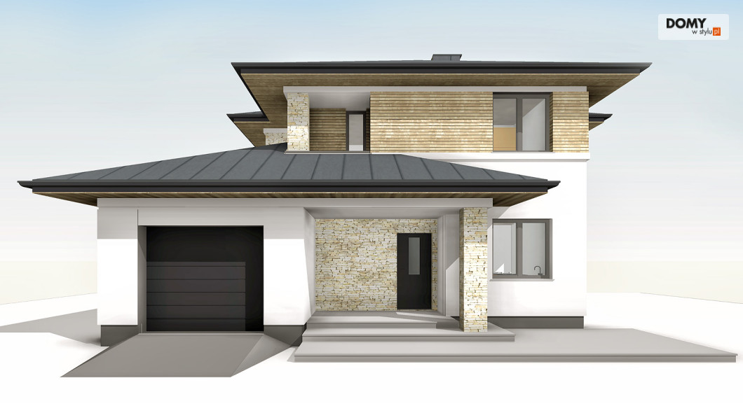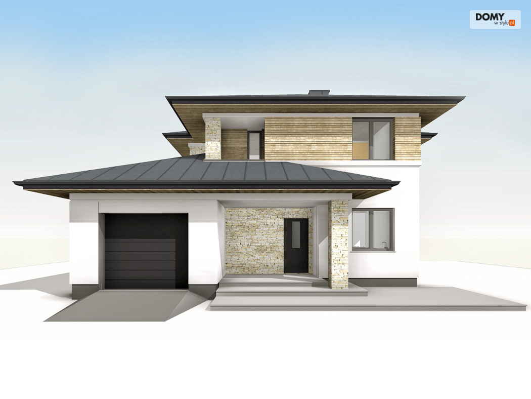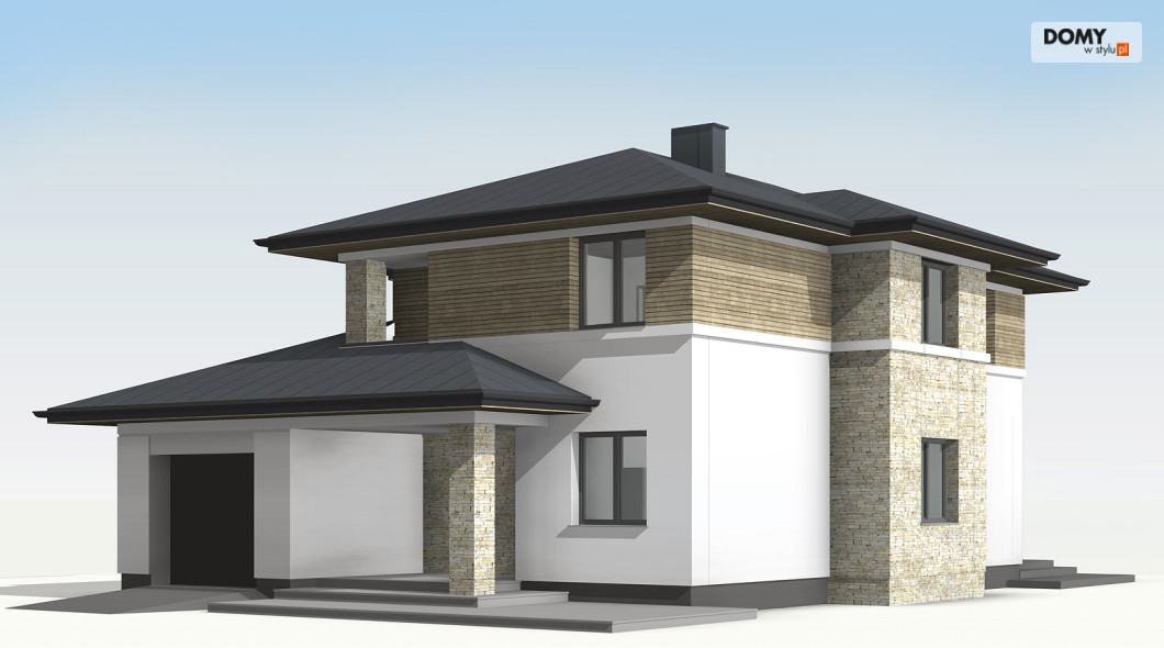 Cyprys 9 to kolejny z popularnej serii projekt domu piętrowego o współczesnej estetyce.  W przestronnym wnętrzu zaprojektowano intuicyjny podział stref użytkowych - część dzienna na parterze oraz przestrzeń prywatna na piętrze.  Parter charakteryzuje się otwartym układem, którego przestrzeń została podzielona na dużą kuchnię, jadalnię i pokój dzienny z dostępem do zadaszonego tarasu.  Na piętrze znajdują się wygodne pokoje dla 4-osobowej rodziny oraz oddzielna garderoba.  Każda z sypialni posiada dostęp do balkonu.