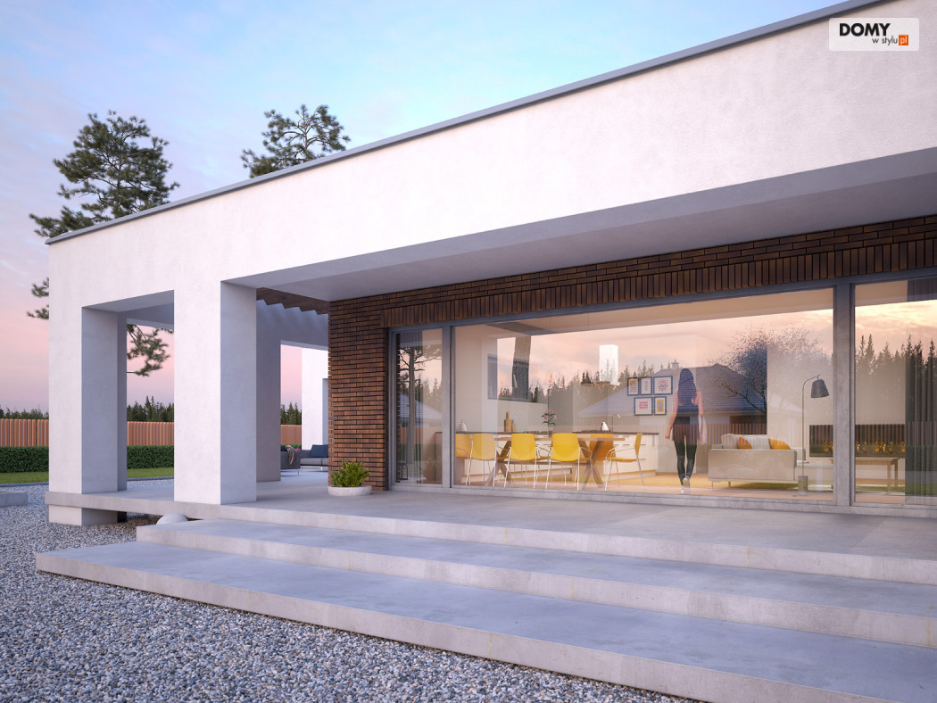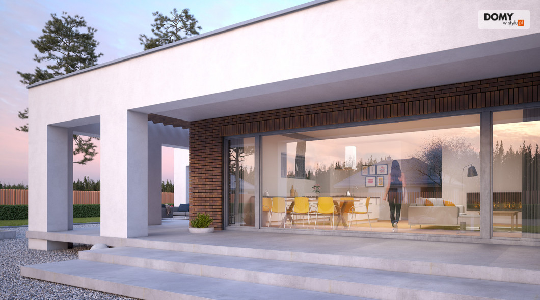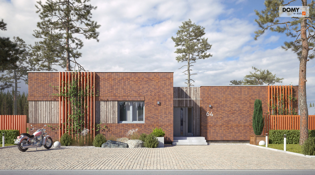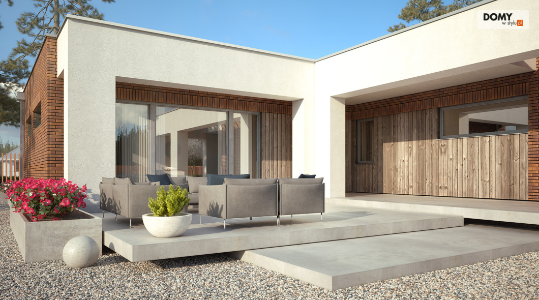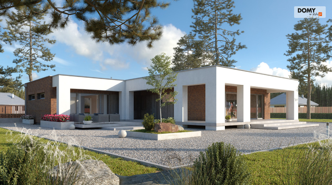 Jadeit 2 to projekt domu parterowego, zaprojektowany z myślą o oryginalnej bryle oraz ciekawych rozwiązaniach elewacyjnych. Projekt podzielono na trzy strefy użytkowe. Strefę dzienną tworzy salon z kuchnią i jadalnią, który jest otwarty na ogród poprzez duże przeszklenie. Strefa nocna to cztery sypialnie, z czego jedna to apartament gospodarzy z przestronną łazienką z widokiem na ogród. Dodatkowo na parterze znajduje się ogólnodostępna łazienka oraz kotłownia.