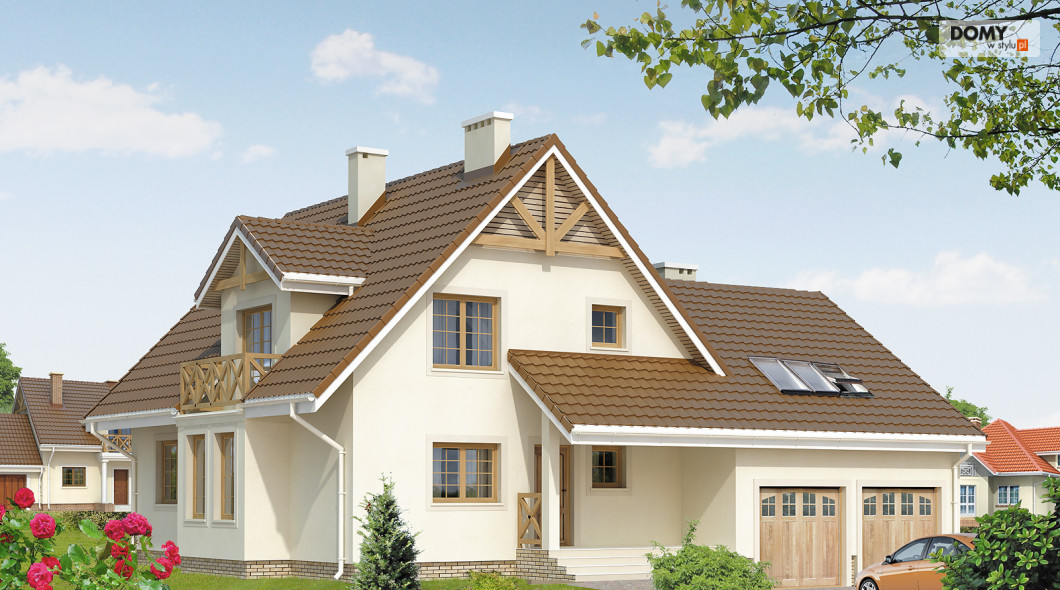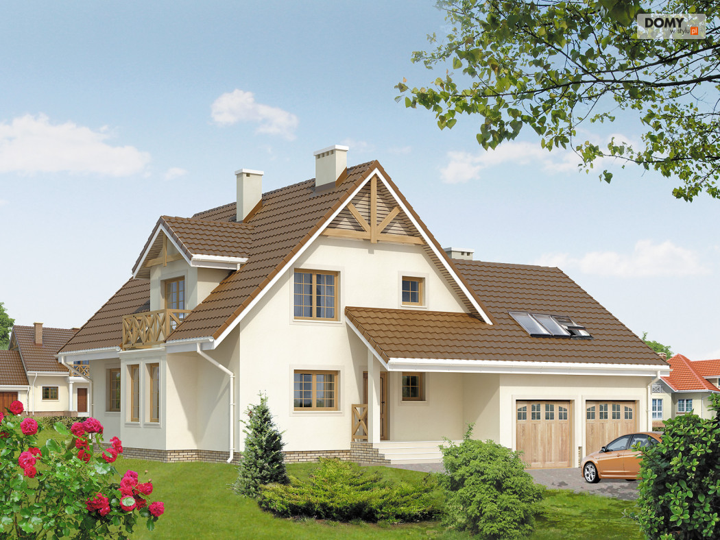 Dom jednorodzinny z użytkowym poddaszem, niepodpiwniczony, z dwustanowiskowym garażem. Czytelny układ funkcjonalny. Dodatkowy pokój na parterze i przestronny strych nad garażem. Łatwy w budowie, ekonomiczny w eksploatacji.