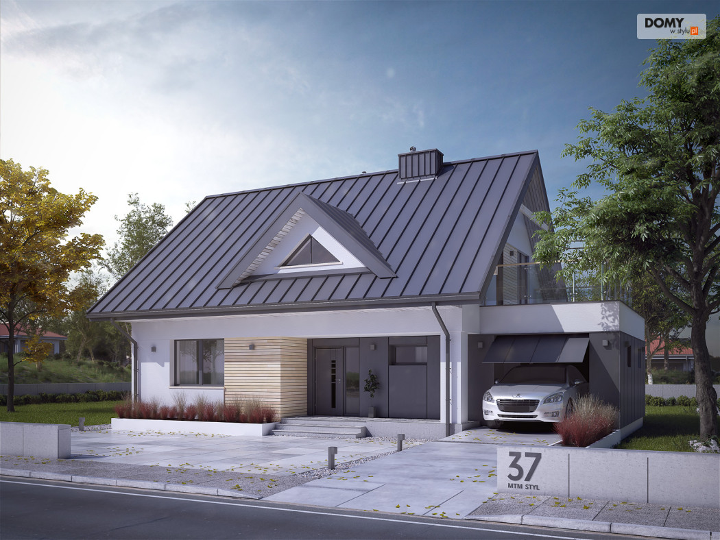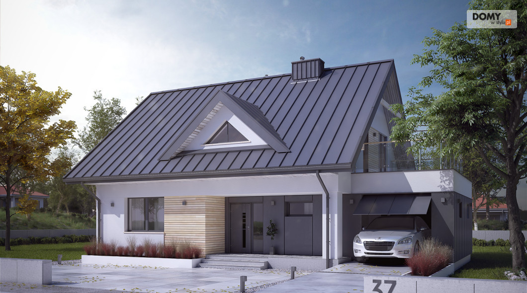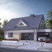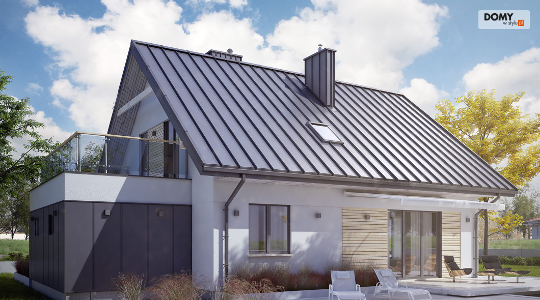 Niewielki, ale wygodny dom dla 4 – 5-osobowej rodziny. Zlokalizowana na parterze część dzienna mieści w sobie przestronny pokój dzienny z jadalnią, kuchnię, spiżarnię i gabinet. Znajduje się tam też duża kotłownia oraz wc. Na poddaszu są trzy sypialnie, łazienka i garderoba. Dom ten posiada garaż nad którym znajduje się taras dostępny z sypialni i łazienki. Prosta bryła z dwuspadowym dachem czyni dom łatwym w realizacji i tanim w użytkowaniu.