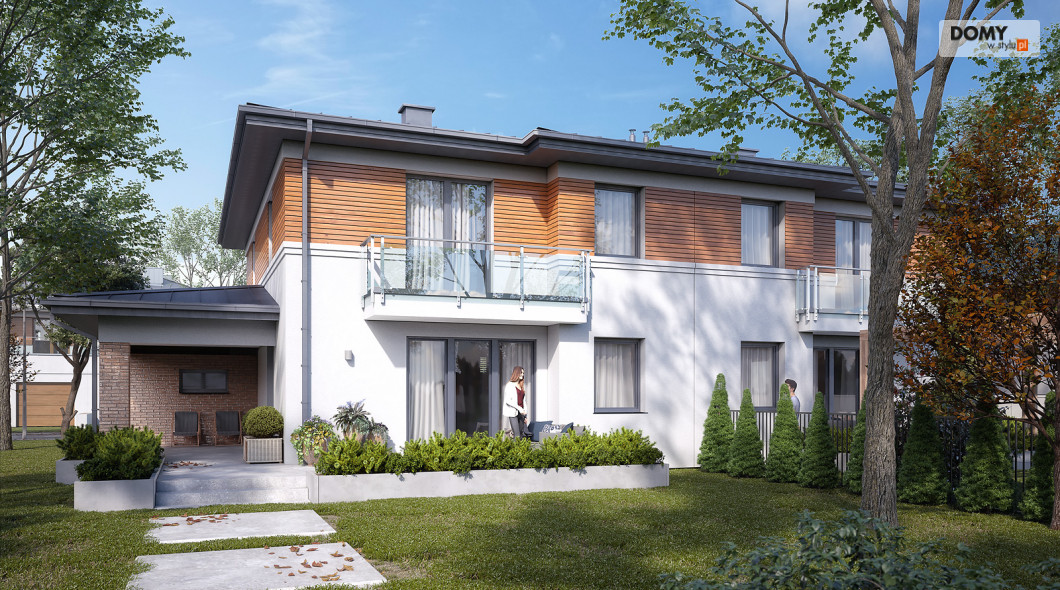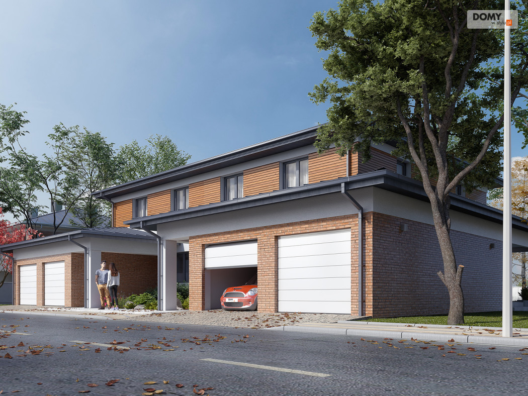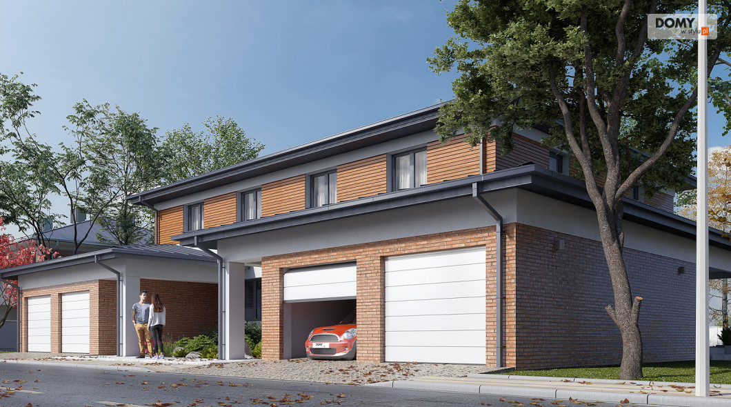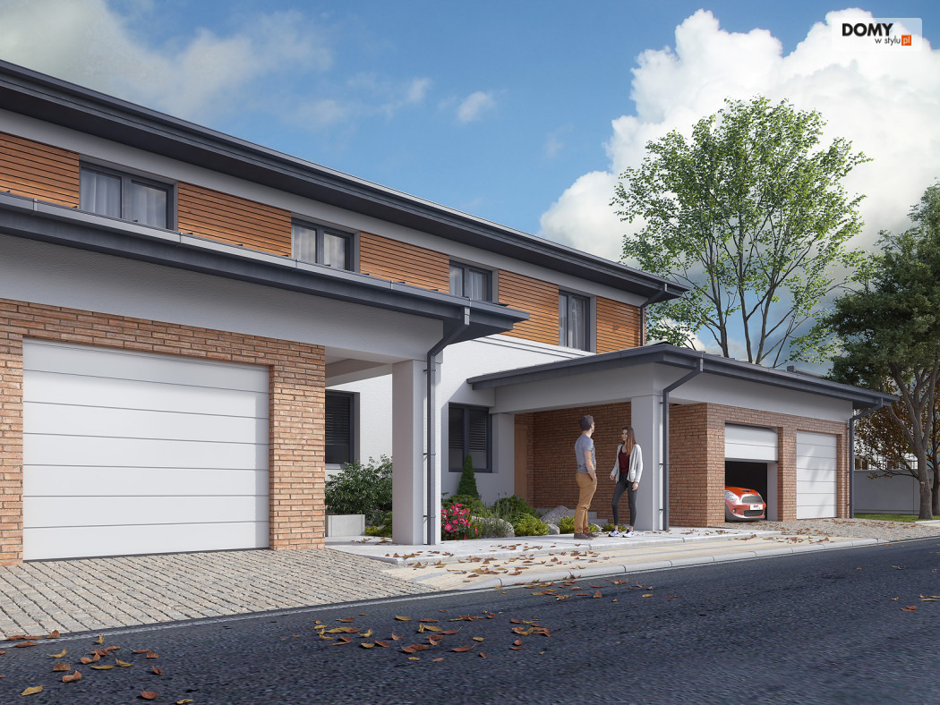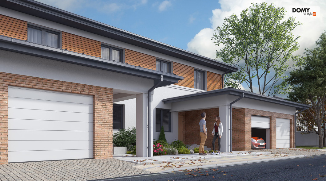 Limonkowy to piętrowy projekt domu w zabudowie bliźniaczej, charakteryzujący się bogatym układem funkcjonalnym. Na parterze zaprojektowano kuchnię z przylegającą do niej spiżarnią, przestronny salon z jadalnią oraz WC. Atutem projektu jest zadaszony taras zlokalizowany za garażem. Dwustanowiskowy garaż od frontu budynku zapewnia naturalną barierę, pomiędzy zlokalizowanym na tyłach domu tarasem, a frontową częścią domu. W garażu znajduje się wydzielone pomieszczenie gospodarcze z przemieszczeniem na kotłownię. Na piętrze zaprojektowano trzy przestronne pokoje oraz rodzinną łazienkę. Główna sypialnia gospodarzy została wyposażona dodatkowo w prywatną garderobę oraz łazienkę.