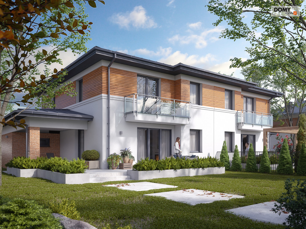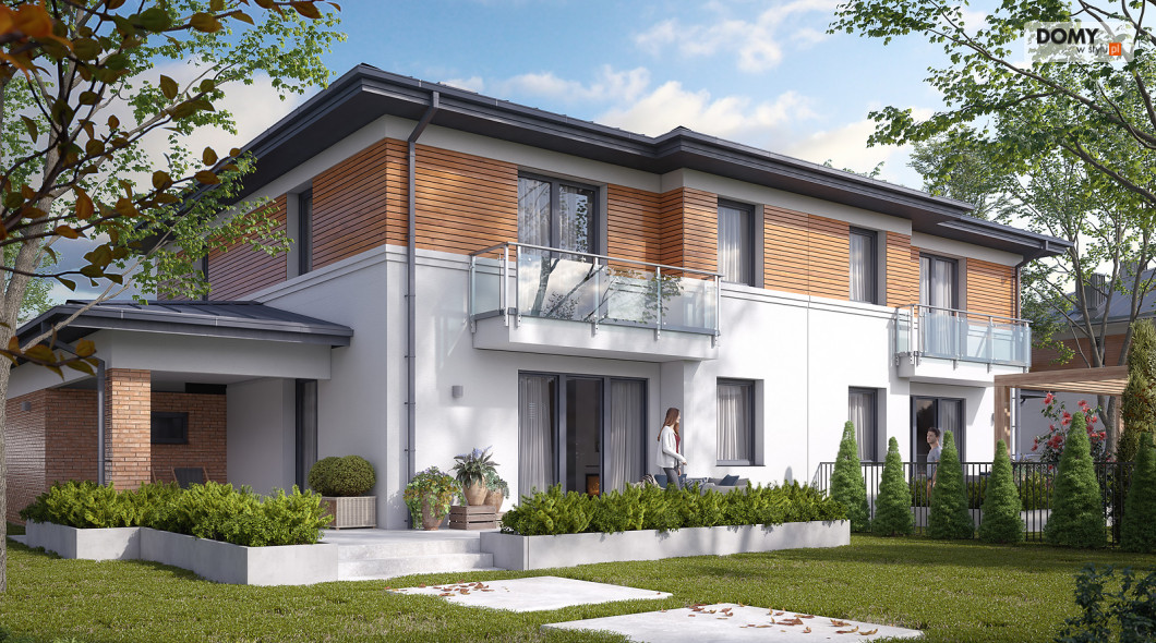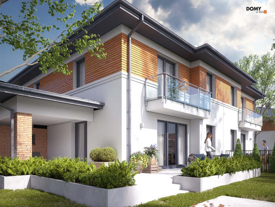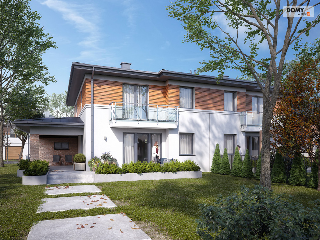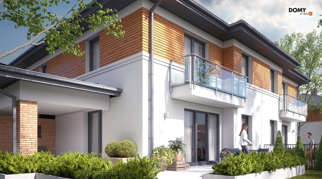 Limonkowy to piętrowy projekt domu w zabudowie bliźniaczej, charakteryzujący się bogatym układem funkcjonalnym. Na parterze zaprojektowano kuchnię z przylegającą do niej spiżarnią, przestronny salon z jadalnią oraz WC. Atutem projektu jest zadaszony taras zlokalizowany za garażem. Dwustanowiskowy garaż od frontu budynku zapewnia naturalną barierę, pomiędzy zlokalizowanym na tyłach domu tarasem, a frontową częścią domu. W garażu znajduje się wydzielone pomieszczenie gospodarcze z przemieszczeniem na kotłownię. Na piętrze zaprojektowano trzy przestronne pokoje oraz rodzinną łazienkę. Główna sypialnia gospodarzy została wyposażona dodatkowo w prywatną garderobę oraz łazienkę.