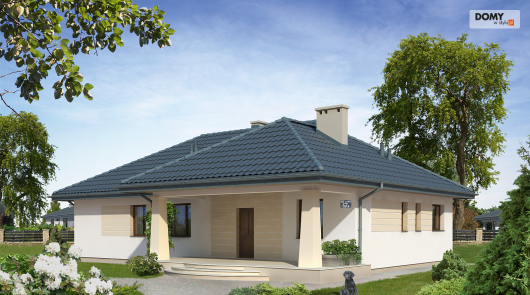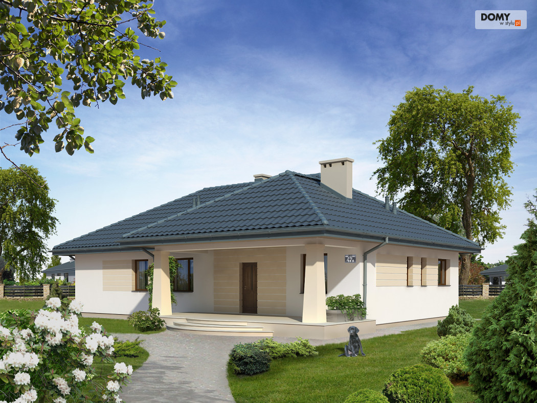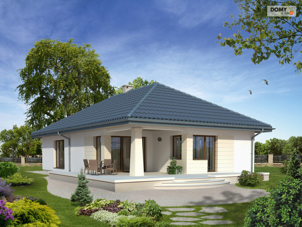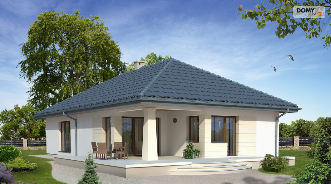 Parterowy budynek mieszkalny przeznaczony dla 3 osób. Na parterze, prócz części dziennej i sypialni, została zaprojektowana spiżarnia, spora kotłownia oraz wc z pralnią. Domek ma duże tarasy z zadaszeniem, umożliwiające korzystanie z nich nawet w kiepską pogodę.