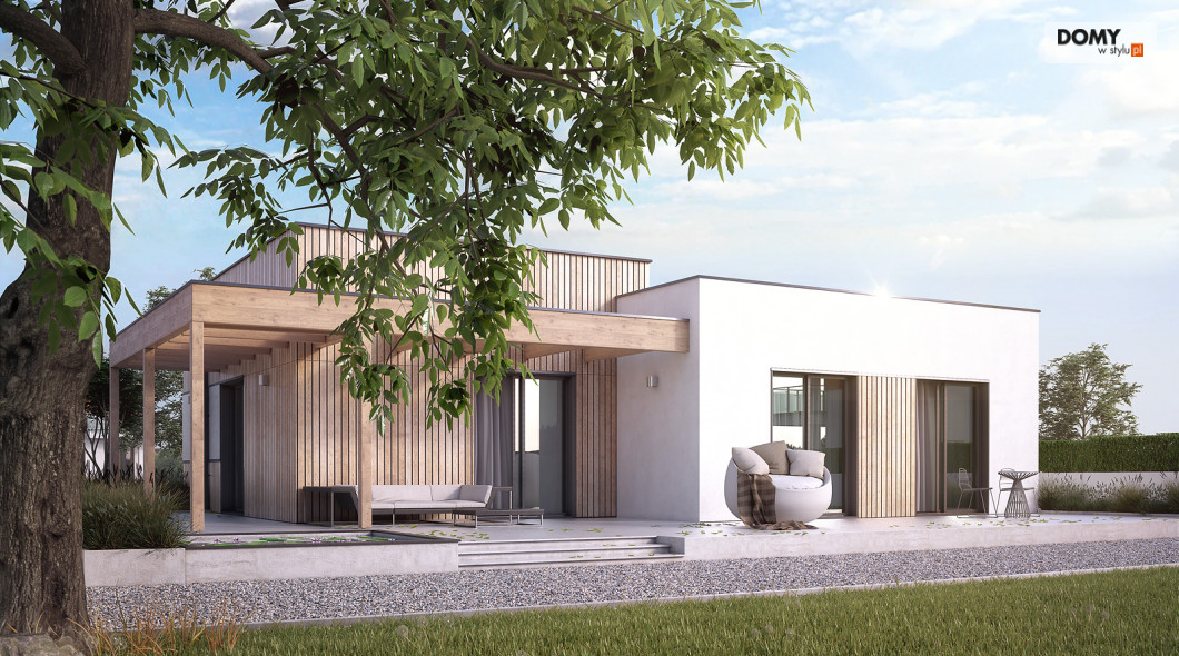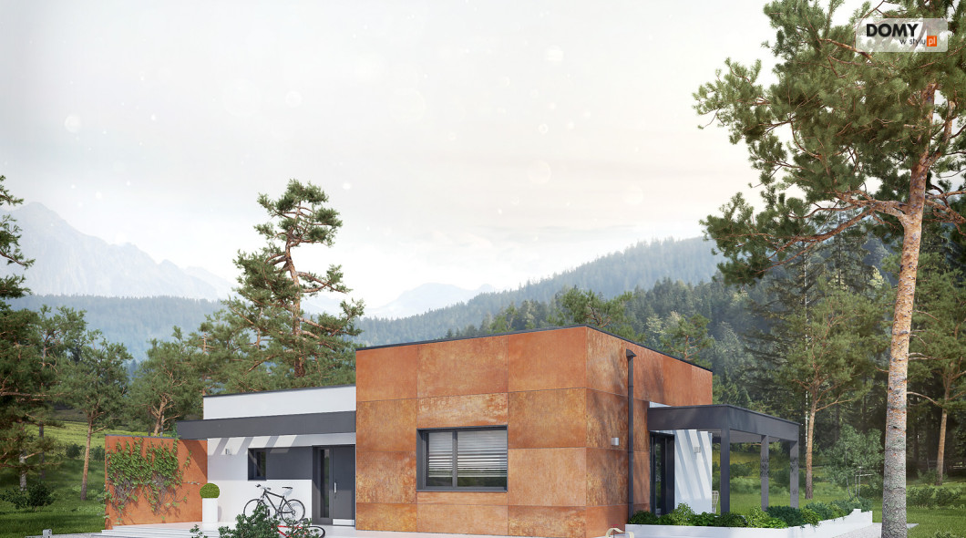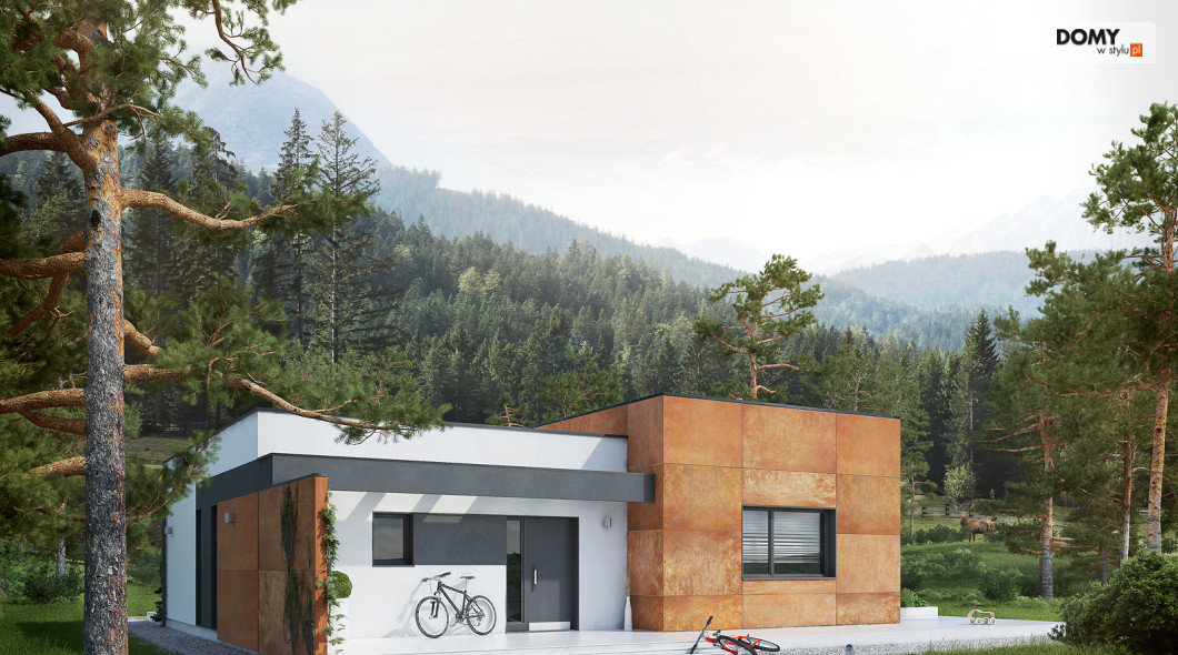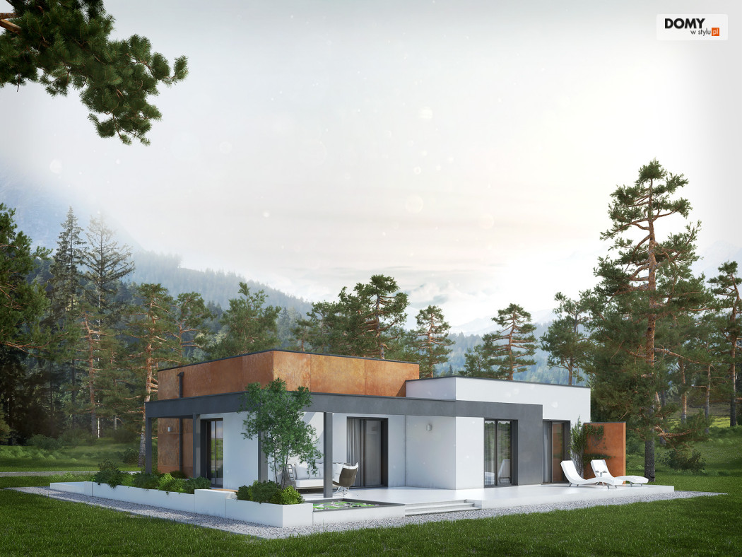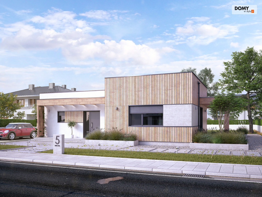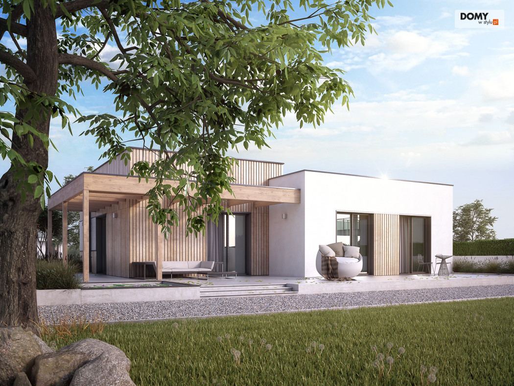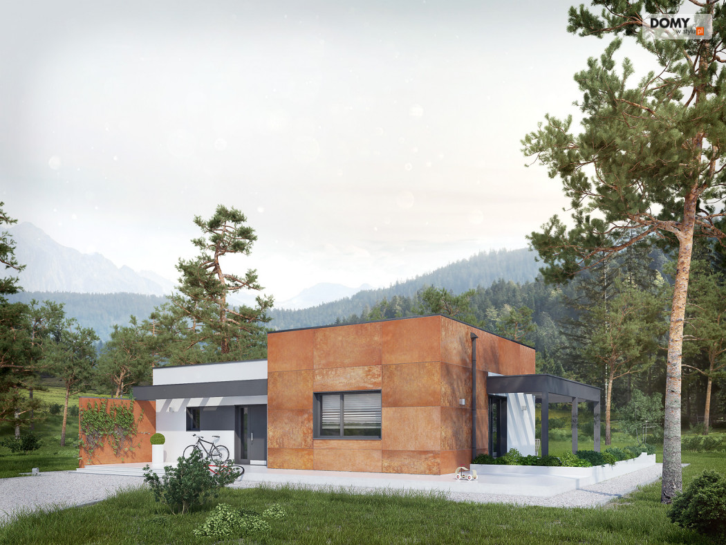 Niewielki, jednorodzinny dom parterowy odpowiadający potrzebom 3-osobowej rodziny. Optymalny układ pomieszczeń został podzielony na strefę dzienną oraz nocną. W strefie dziennej znajduje się przestronny salon z jadalnią, kuchnia ze spiżarnią oraz reprezentacyjny hol. W części nocnej znajdują się dwie sypialnie oraz łazienki.